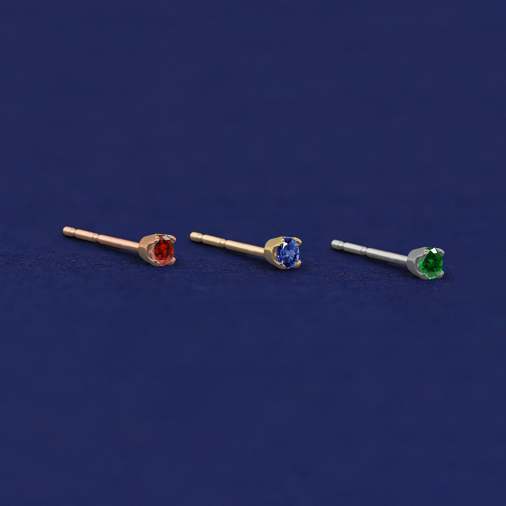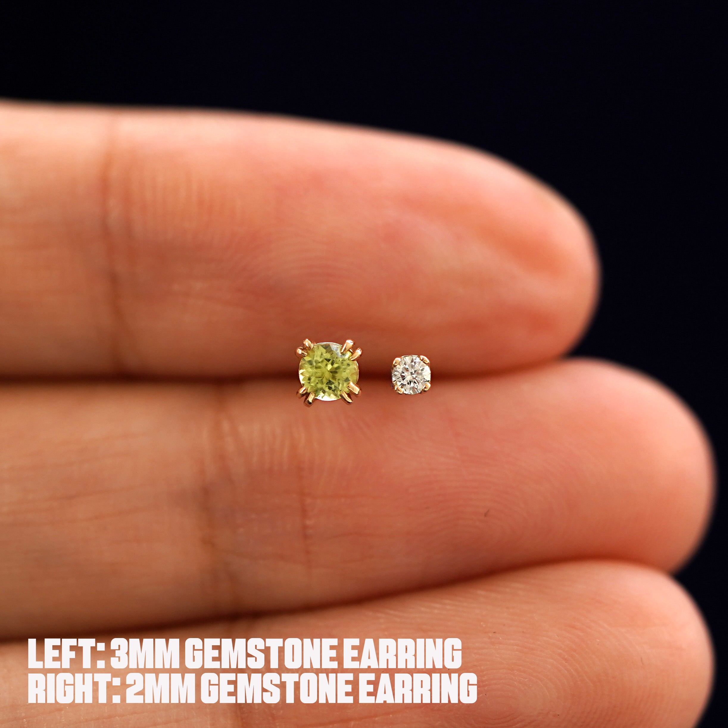 Dainty gemstone studs that are just the right amount of sparkle for anyone who loves minimalist jewelry. These beautiful 14k gold stud earrings feature sparkling gemstones that are set in 100% recycled solid gold. Sustainable jewelry with substantial flair.