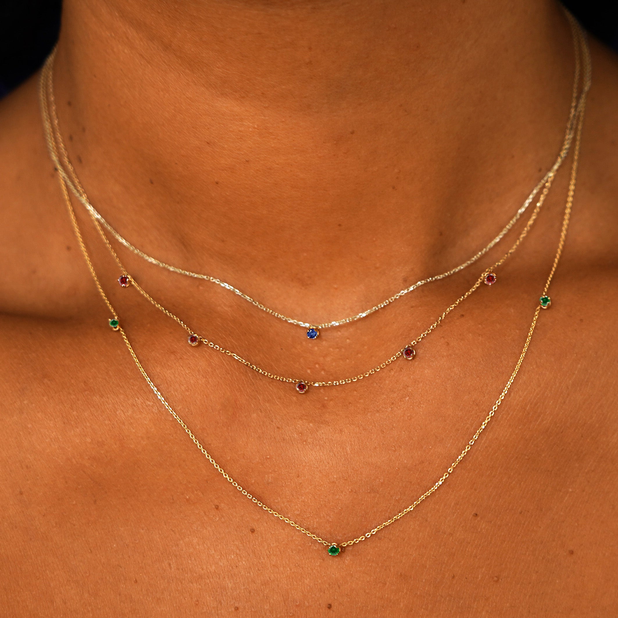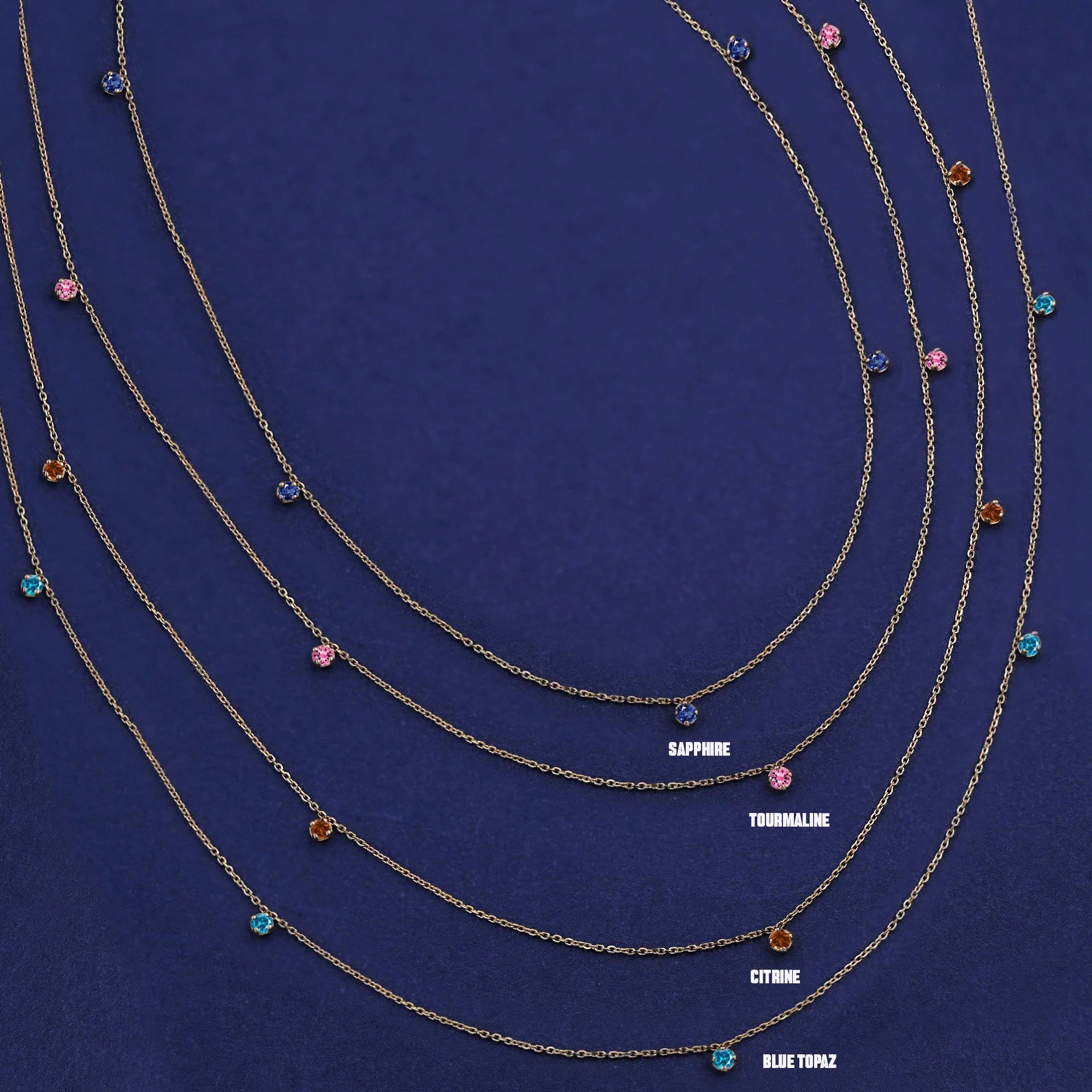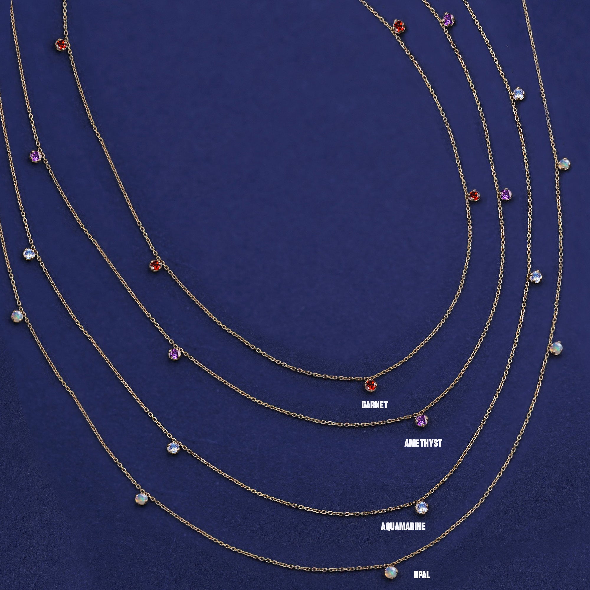 Gorgeously glamorous, this station necklace is made with sparkling gemstones on our elegant 14k gold Cable Chain. Whether you're working, lounging, or out living your best life, our dainty but durable birthstone necklace is the perfect solid gold accessory. Secures with a lobster lock and easy-to-grip Automic Gold AU plate.