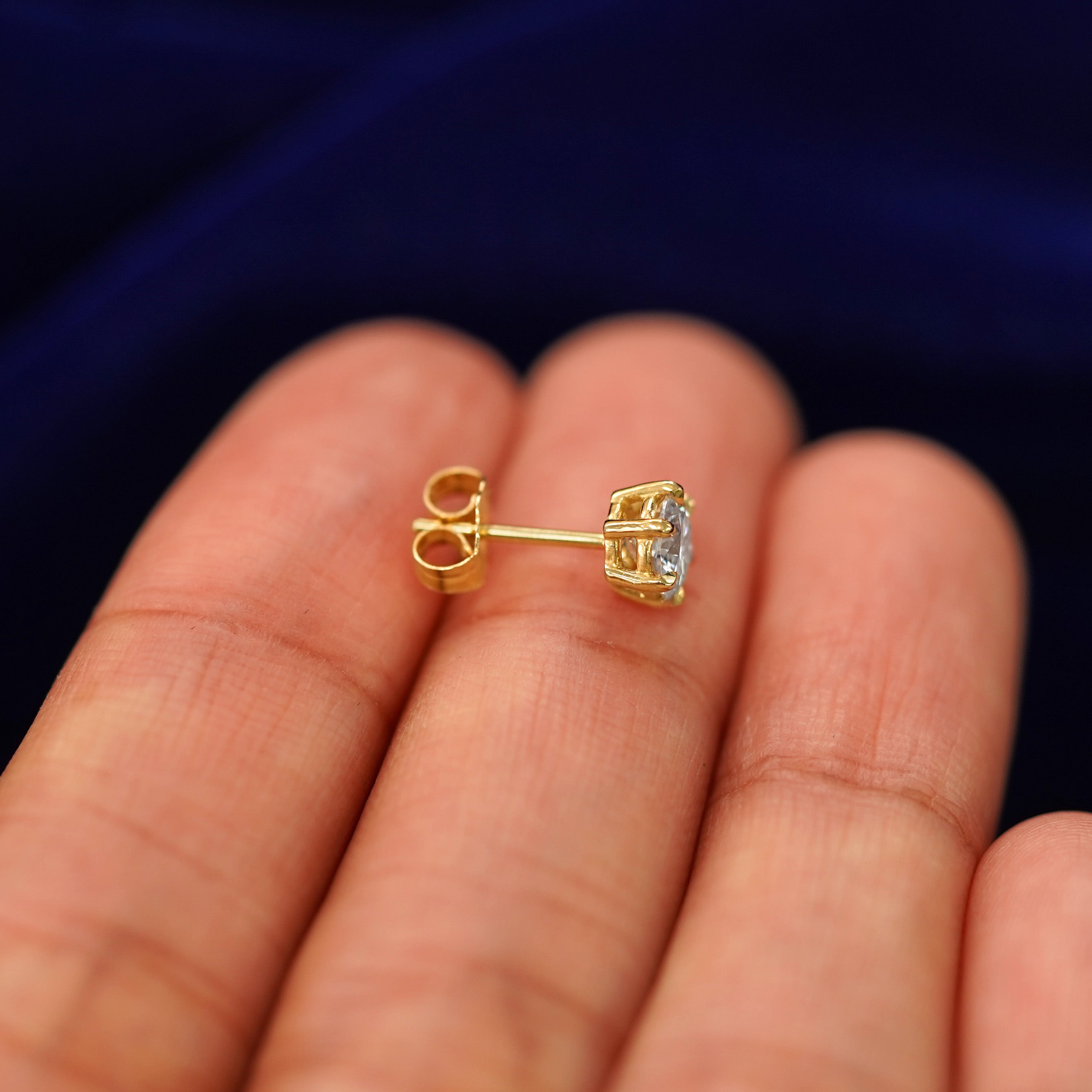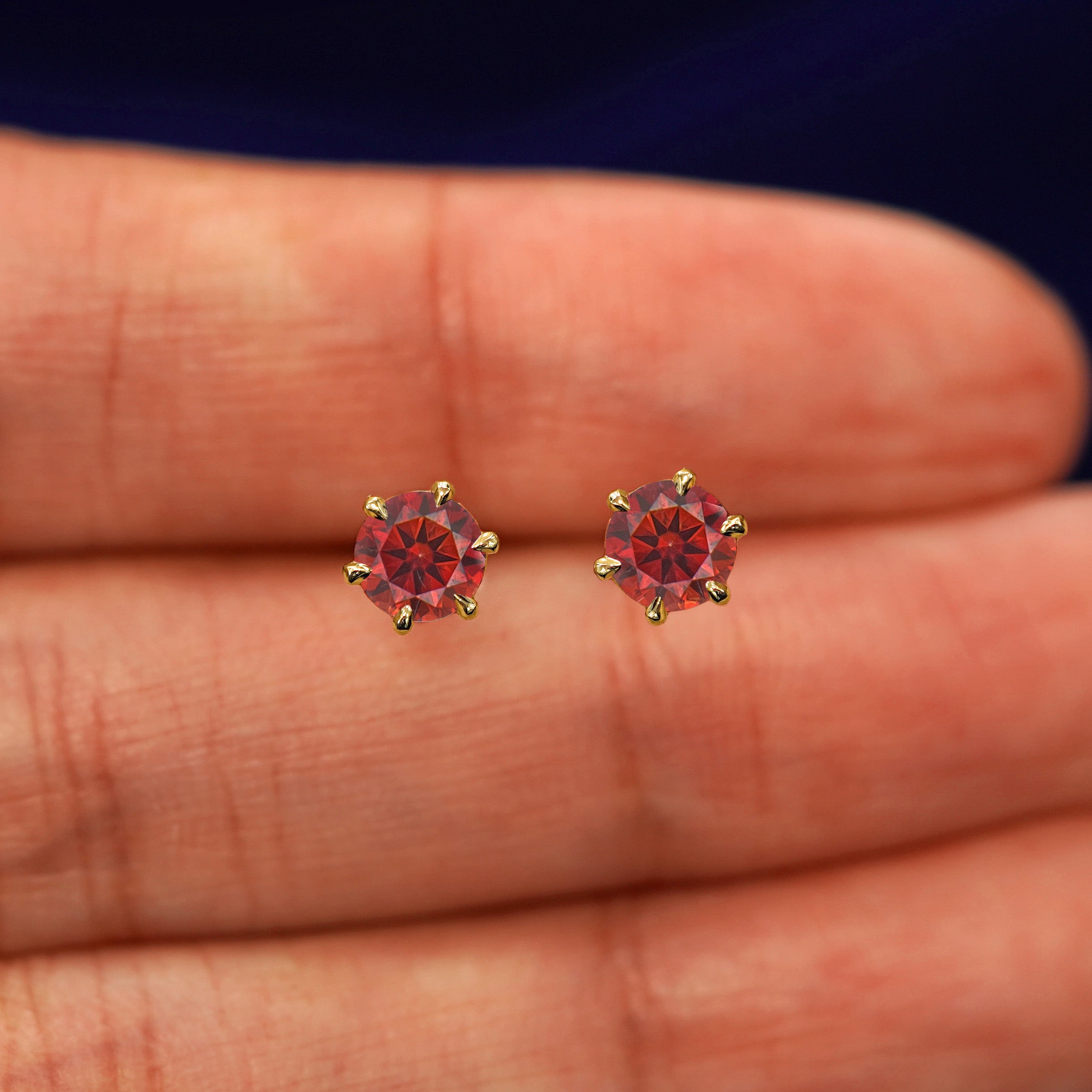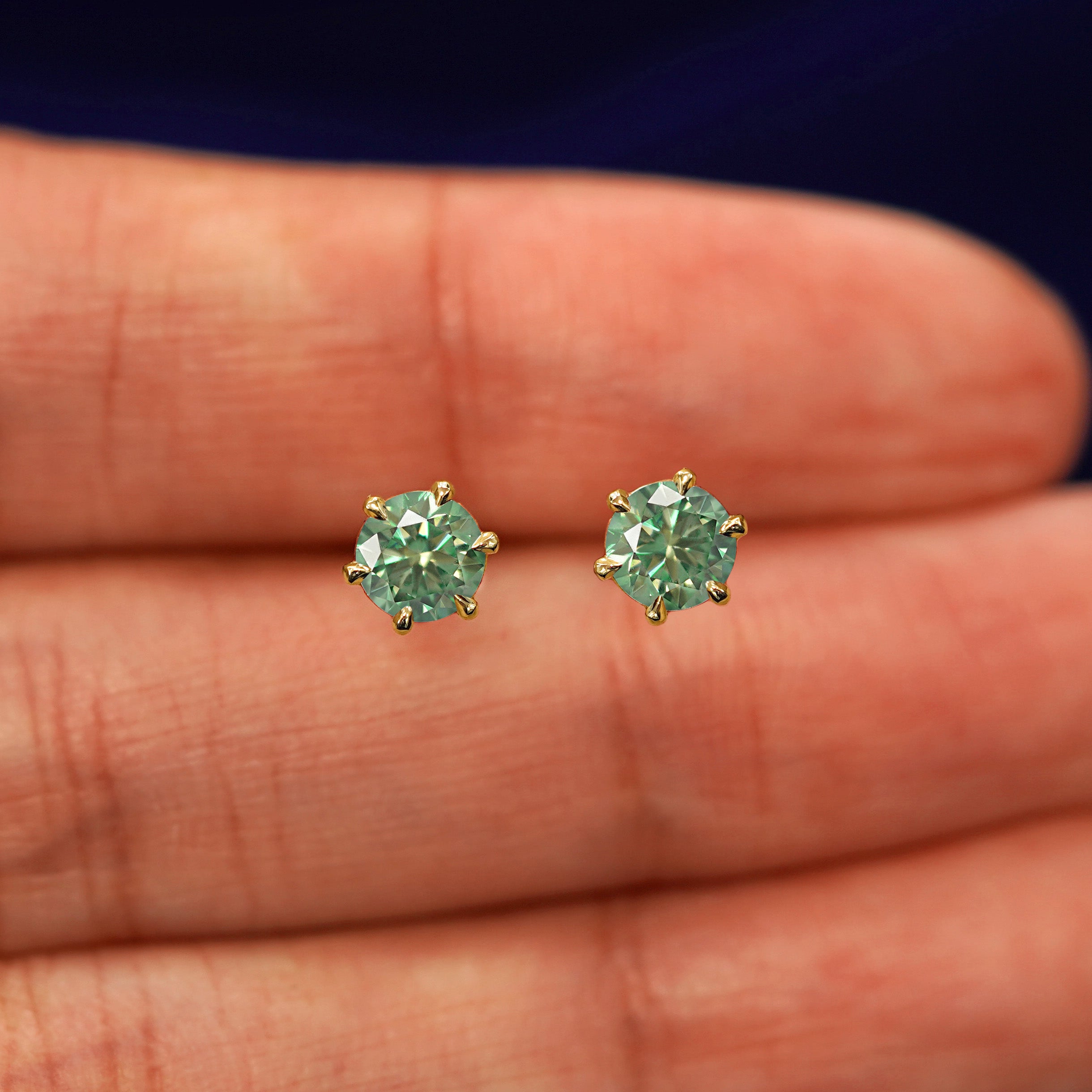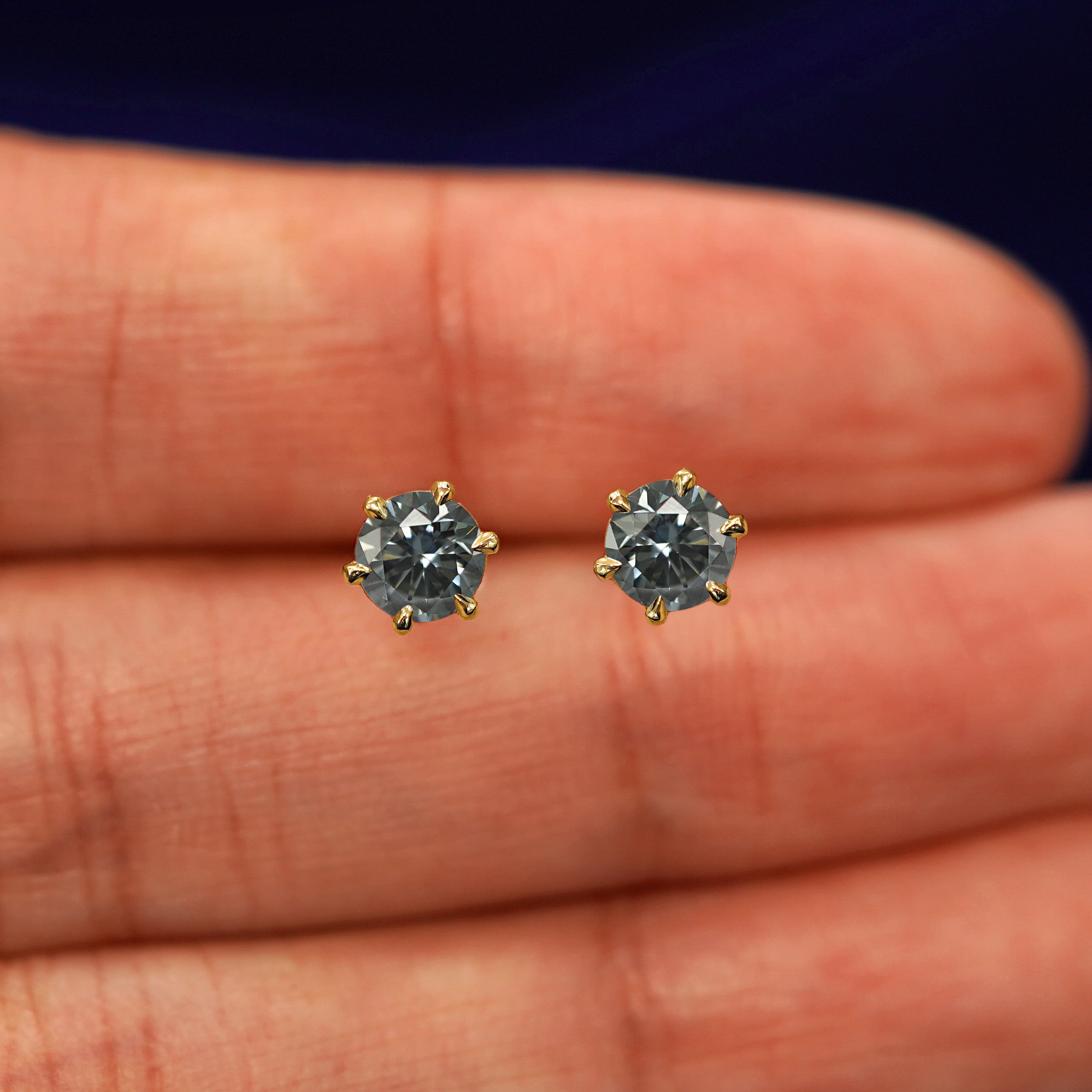 Strong, sparkling, and simply stunning, this moissanite stud earring is the perfect addition to any wardrobe. Second only to Diamond in hardness, moissanite is a durable and substantial stone made to be worn all day, every day. The large round 5mm gemstone sits in a 6-prong setting on a solid 14k gold earring for strength and style.