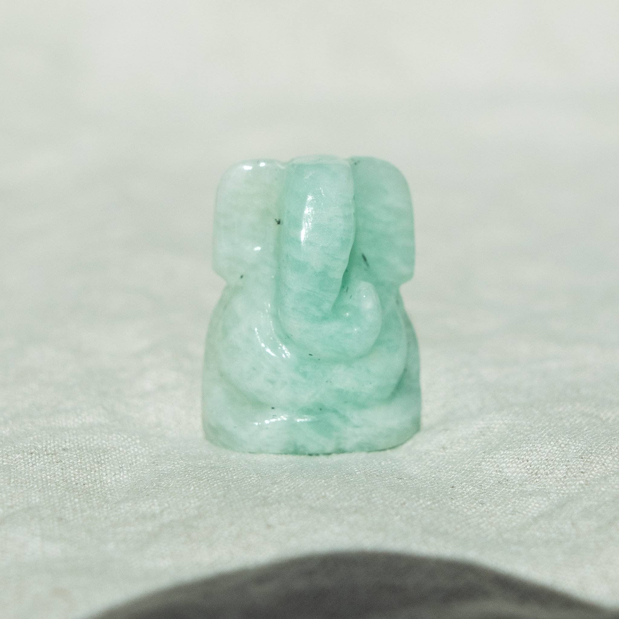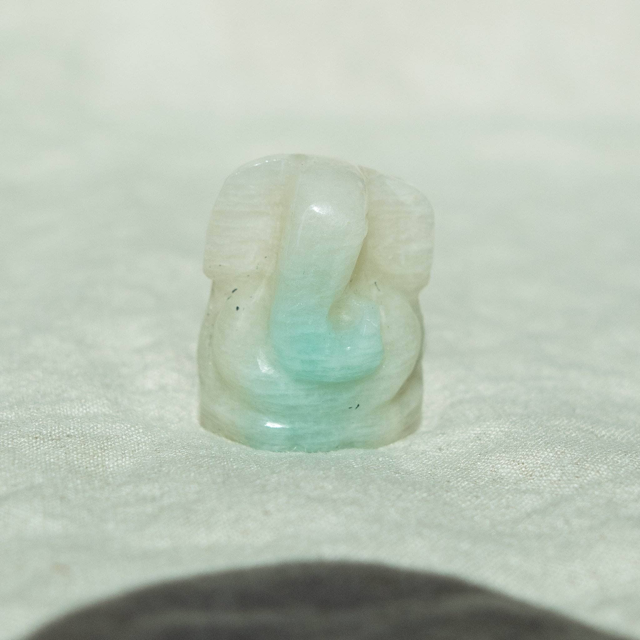 Amazonite echoes some of these lessons and put us in good stead for embracing the art of Ganesha. The blue and green stone may be gentle and calm but its no pushover. Amazonite helps us to instil healthy boundaries, to speak our truth pure and bright, and to unravel the layers of self-doubt that can squeeze our heart to submission. When we turn to the Amazonite Ganesh we find new beauty and freedom.