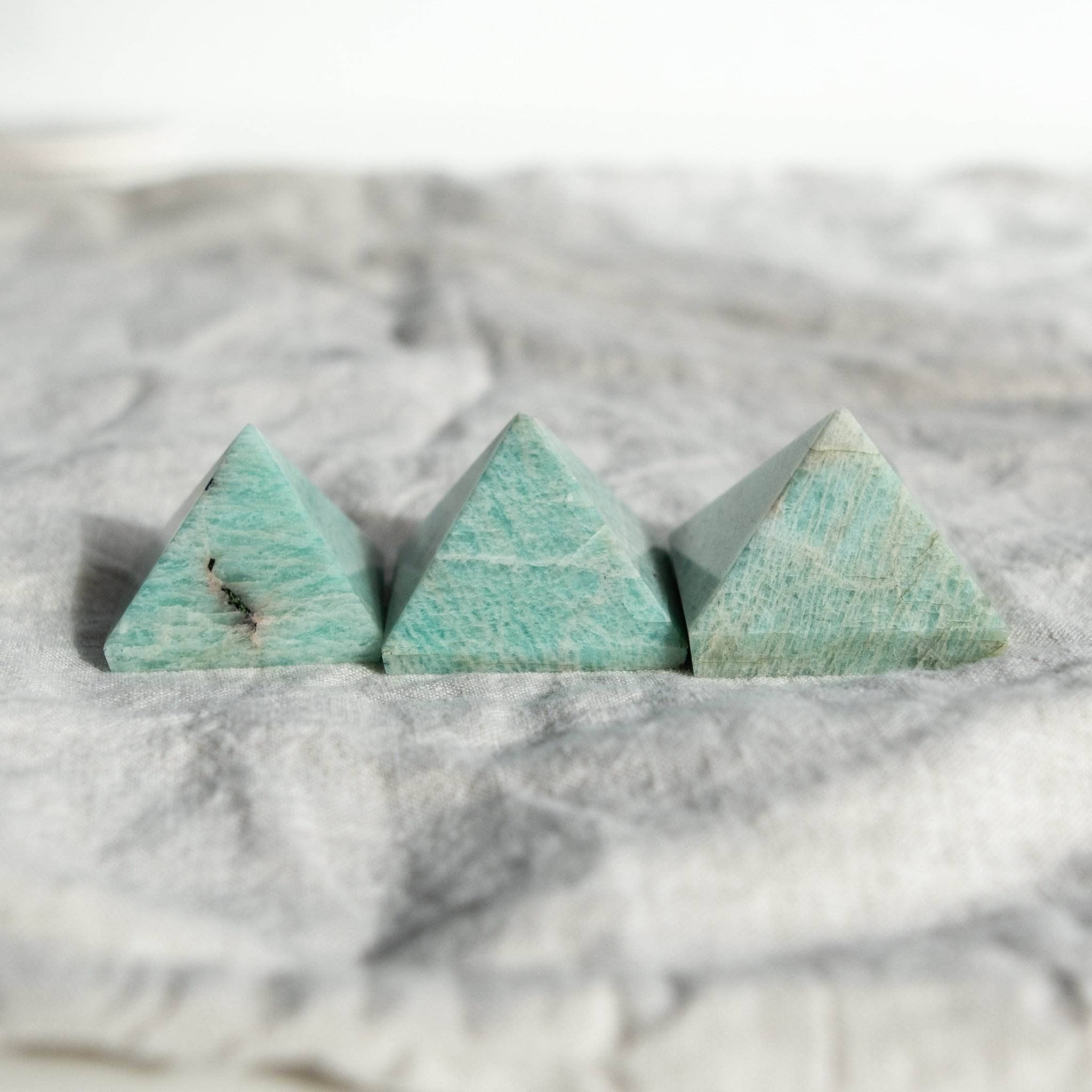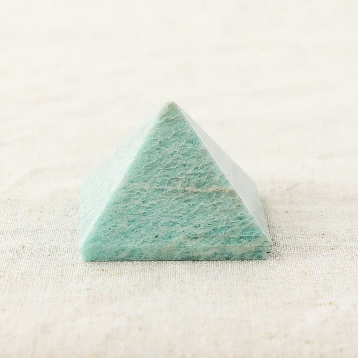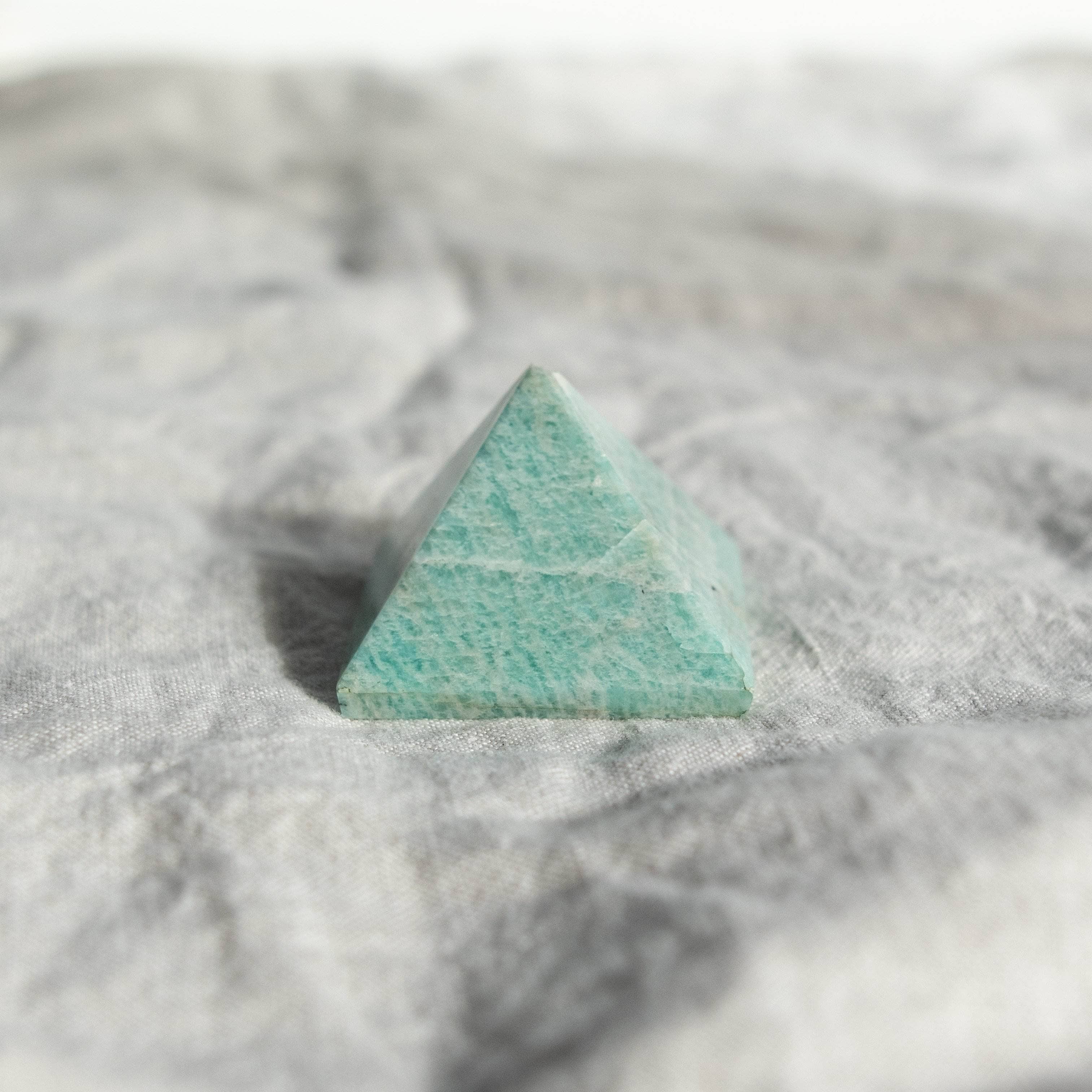 The Amazonite Pyramid blends the beautiful crystal healing properties of Amazonite with the sacred geometry of the pyramid shape. Revered by the Ancient Egyptians and celebrated across stashed away corners of South America, the perfectly poised pyramid is all about creating an energy connection between heaven and earth. With a base that stands solid with glorious grounding, four sides and an apex that connects to the cosmos, you can count on the pyramid bringing divine intuition and deep healing to the body, mind, and soul.