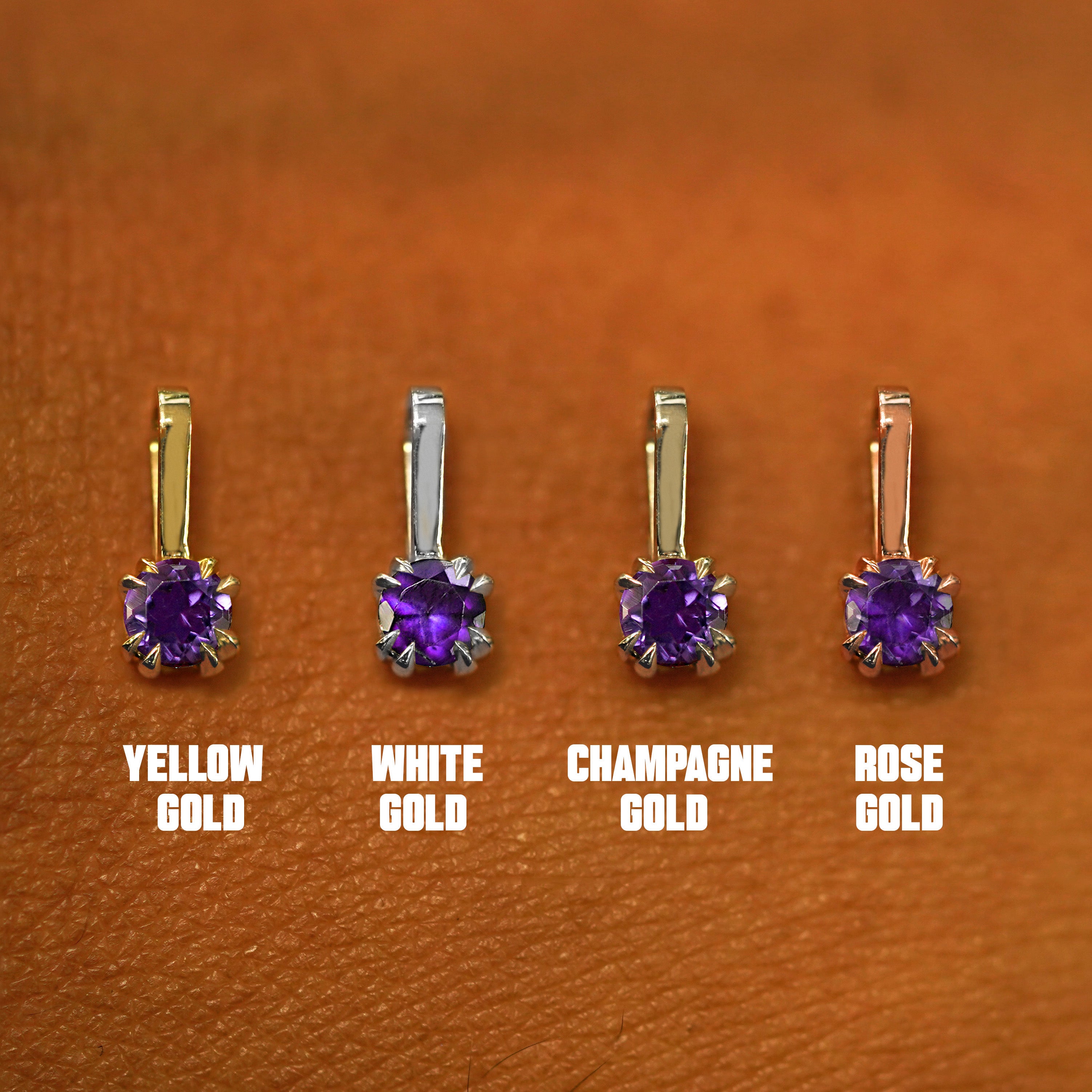 Purple is the color of royalty, and this Amethyst Charm is perfect for anyone who knows they deserve a throne. The rich purple hue of this dainty piece of February birthstone jewelry will turn heads when you are out and about. Our gemstone charms make a great little addition to your chain, bracelet, or hoop earrings.