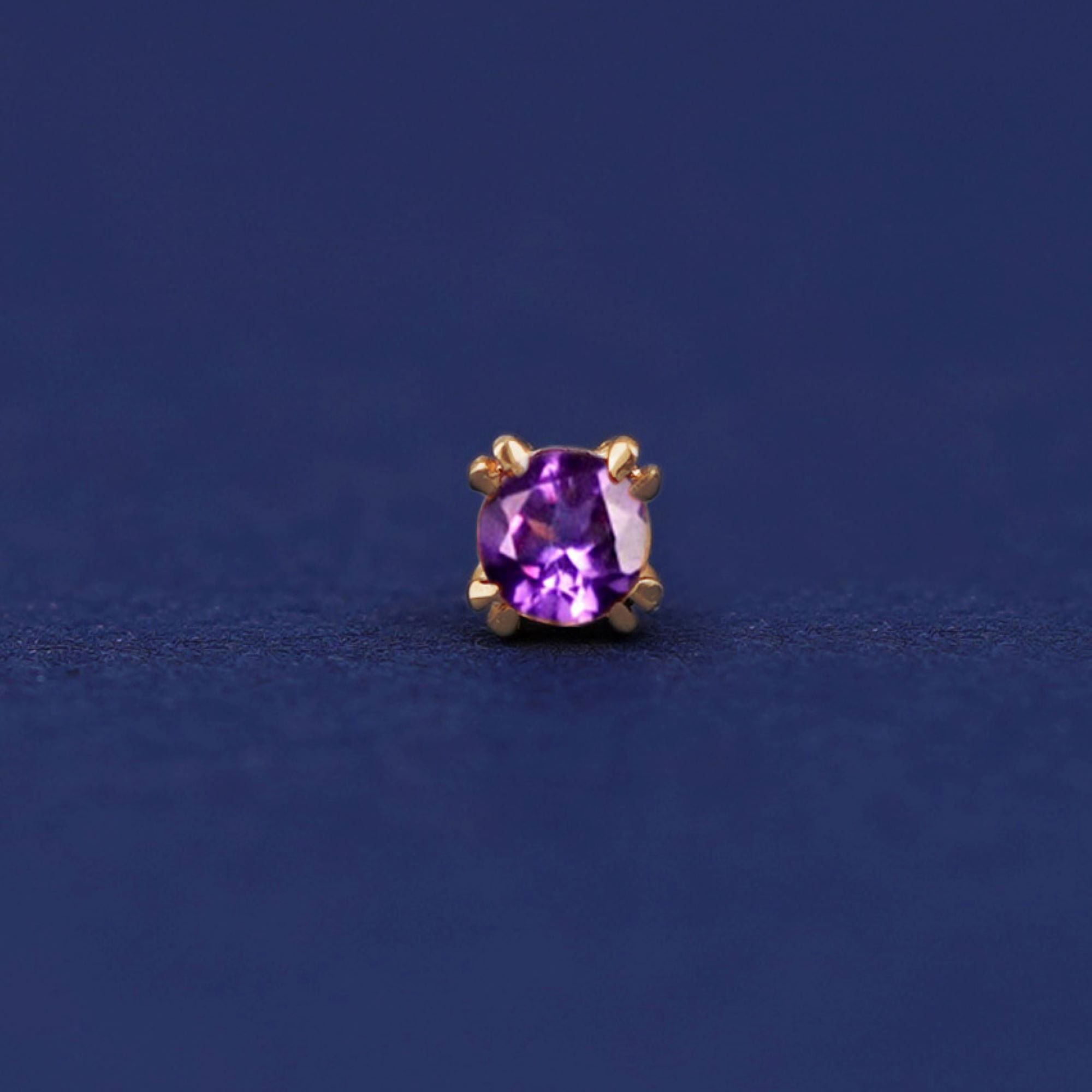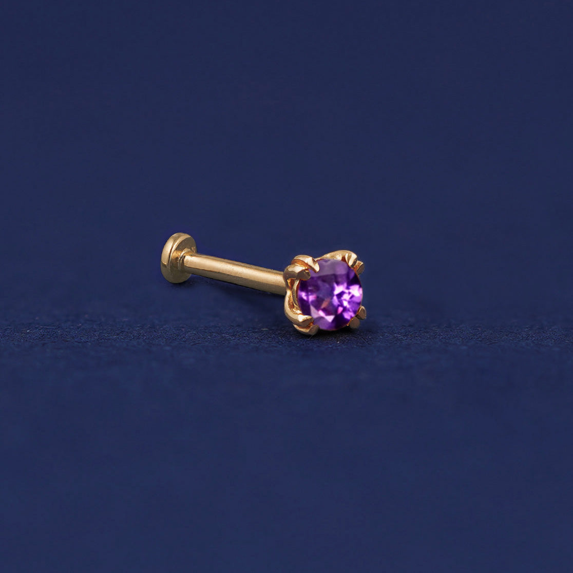 Purple is the color of royalty and you’ll feel like a monarch with this threadless amethyst stud. Made from solid 14k gold, you can wear this dainty February birthstone earring everywhere, even while you sleep. Our flat backs are crafted only in 14k yellow gold to avoid sensitivity.