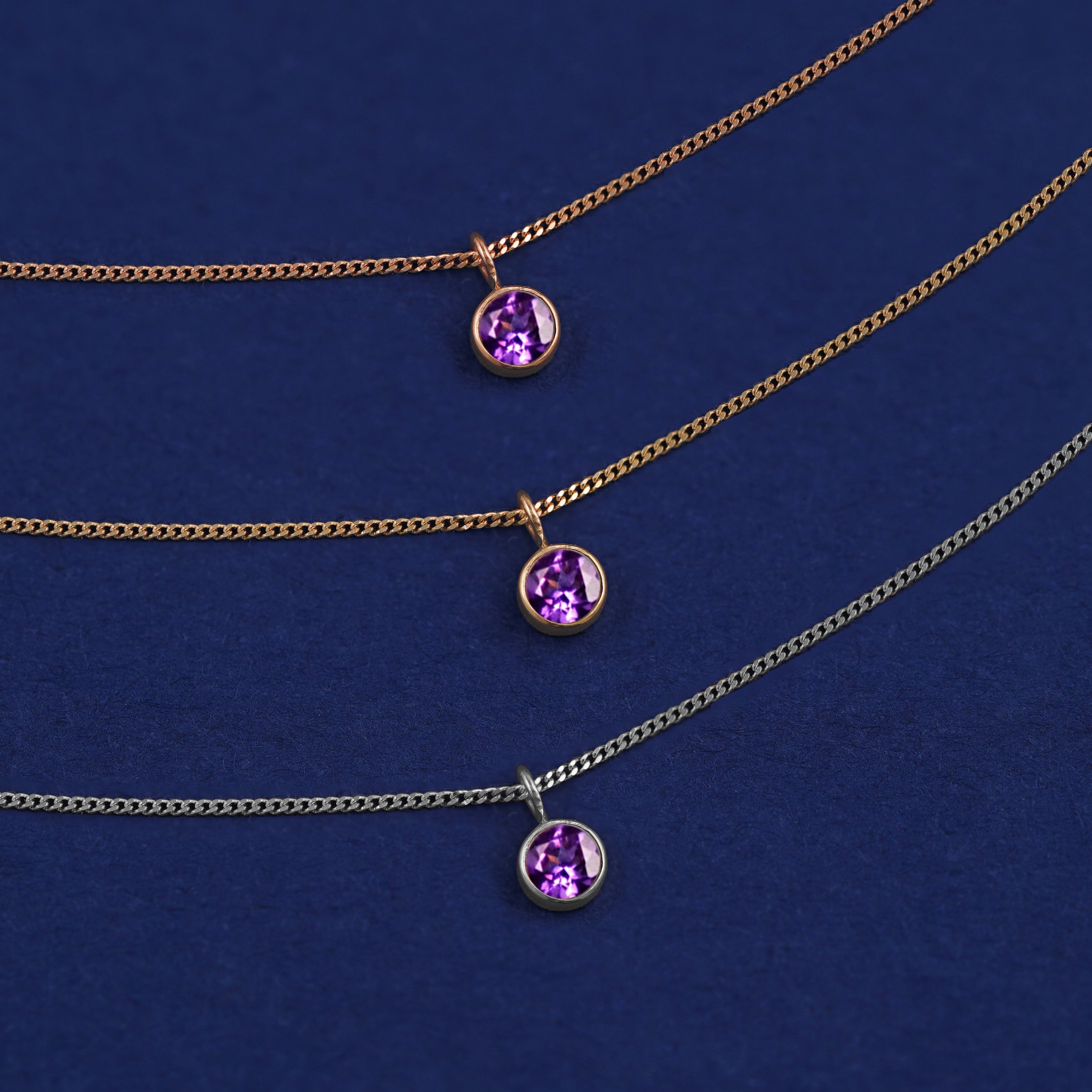 The rich purple color of this Amethyst gemstone necklace will get you some looks for sure when you are out and about. This birthstone necklace is made for the February baby who loves to show off. Wear this amethyst pendant necklace as a choker or layer it with our other sustainable gold jewelry for a bolder look. The Essential Chain secures with a lobster lock and easy-to-grip Automic Gold AU plate.