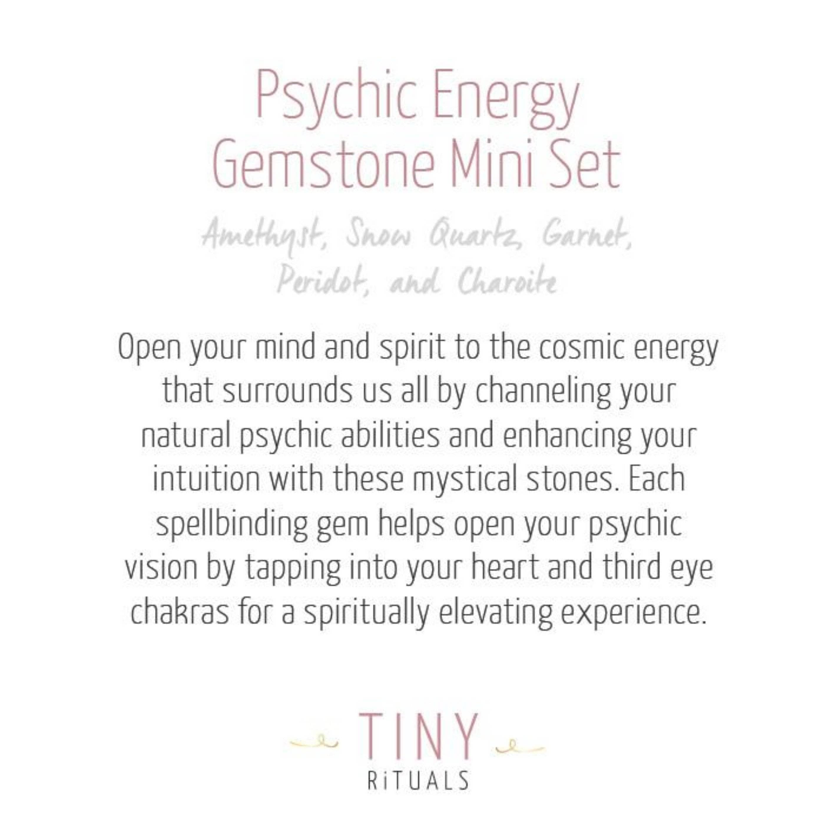 Get ready for your crown chakra to burst with light as you slip on the Psychic Energy Pack. Composed of five of our favorite cosmic stones, this is the perfect set for those who want to get their third eye revving and to seek out the spiritual secrets of the universe.