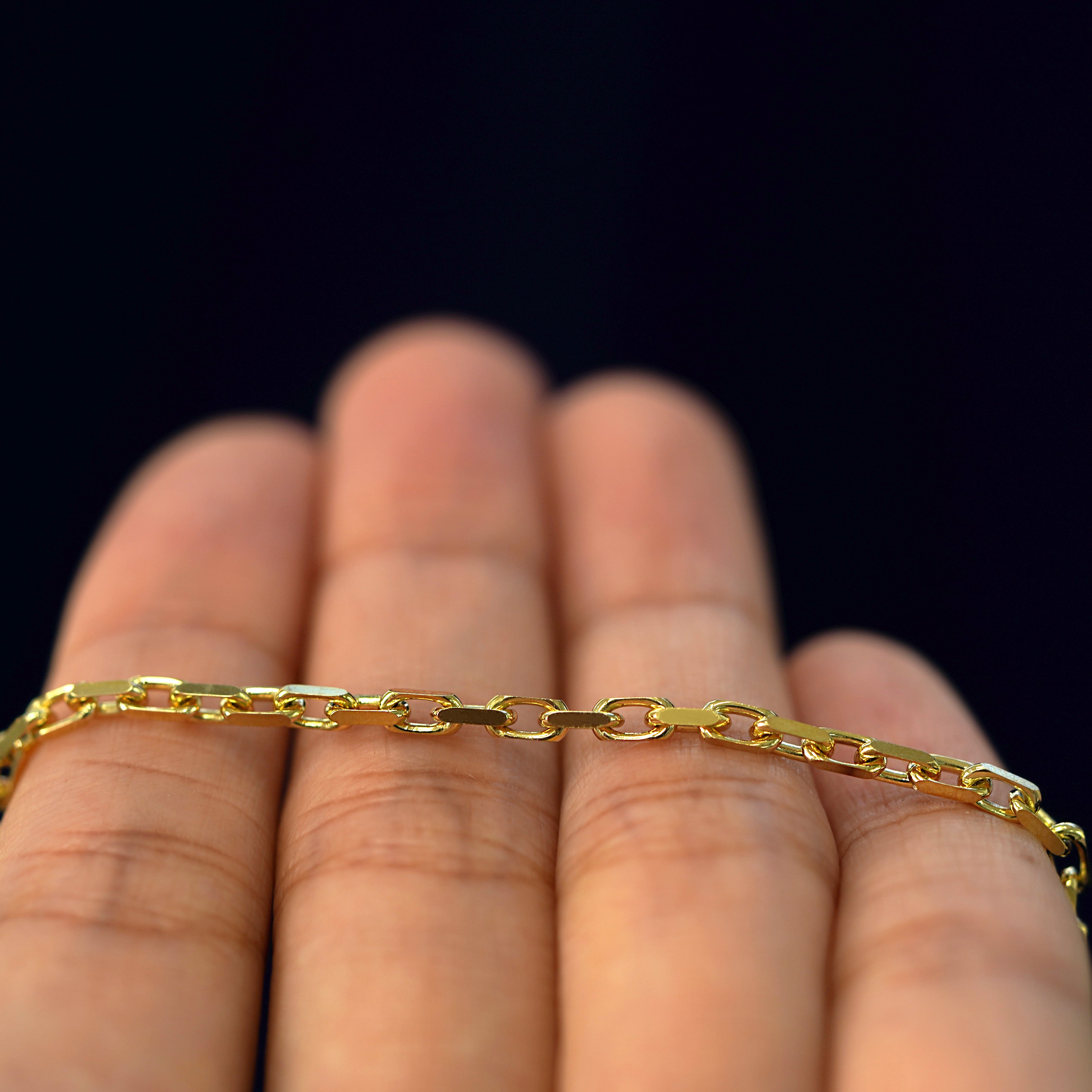 If you like the look of our Butch Chain, you’ll love our anchor chain. This chain is designed after the chains that connect anchors to boats, so it’s made to be strong and durable. Crafted from 14k solid gold, this necklace features thick oval links with flat edges so this piece lays comfortably on your skin. Secures with a lobster claw clasp.