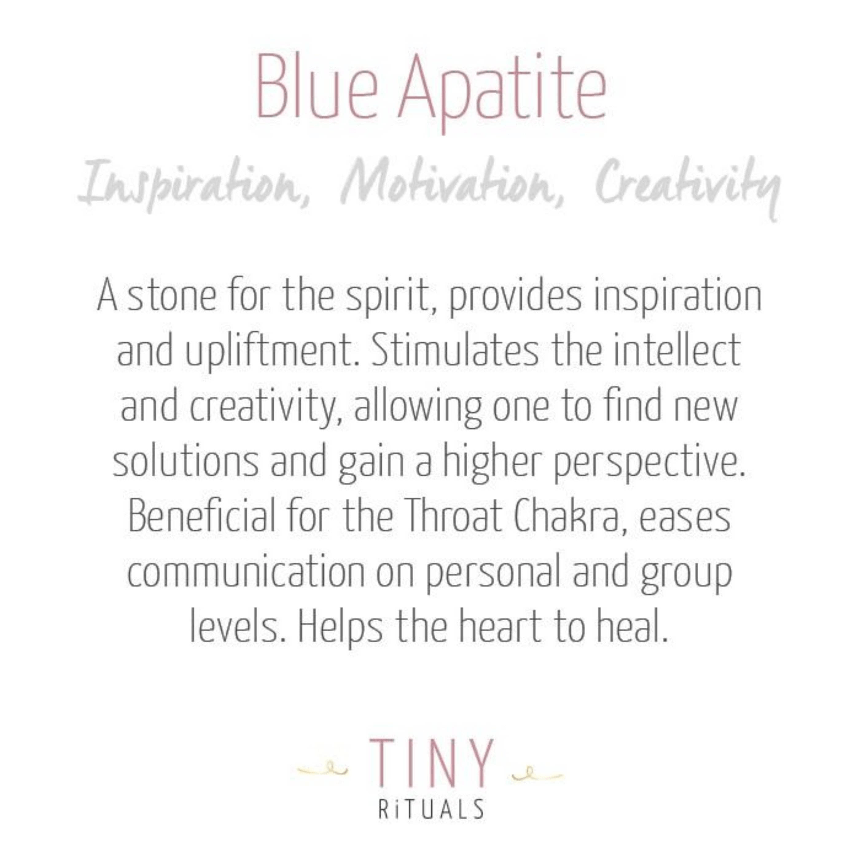Being a throat chakra stone means that Apatite works to clear anything getting in the way of your one true voice. From truth to creative expression, boundary setting and beauty, this stone invites you to let your own vocal energy ring out. It also connects to the third eye - the gateway to all our inner wisdom. When our tools of wisdom are sharpened and our intuition is engaged - we can speak from a place of confidence and authenticity.