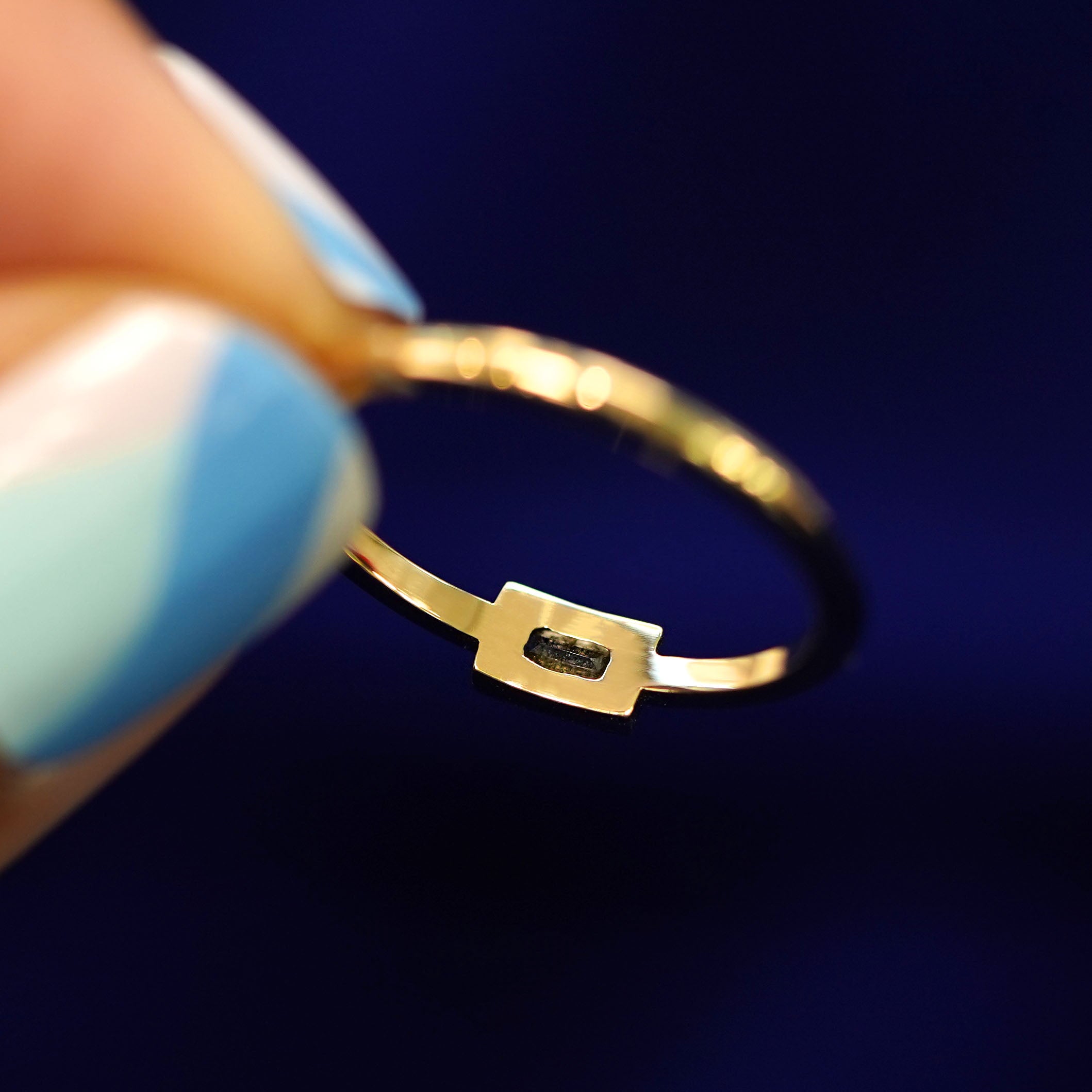 Wear this gorgeous 14k gold ring by itself or stack it with our Trillion Black Diamond Ring, Oval Champagne Diamond Ring, or our S&P Baguette Diamond Band.