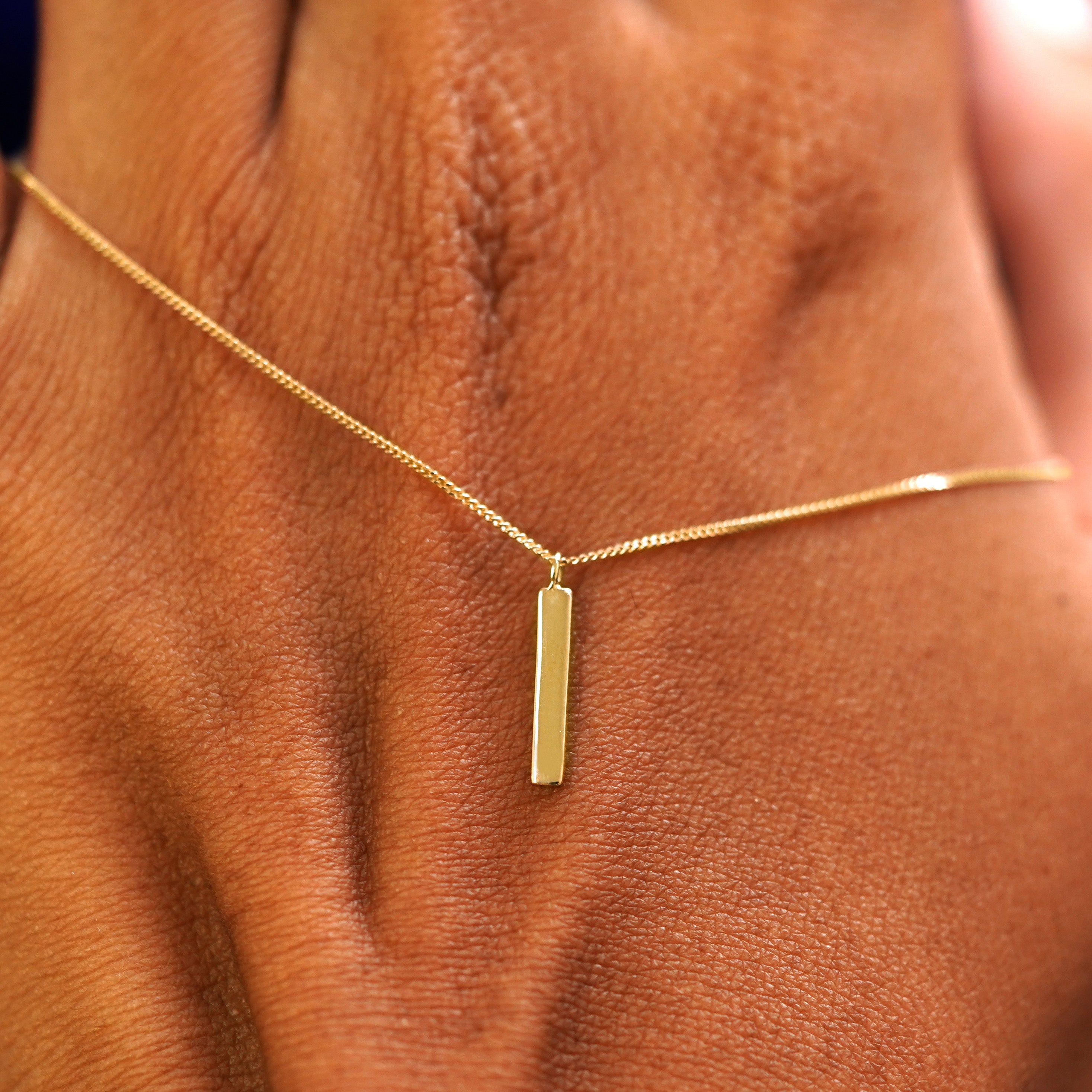 Everything about this simple Bar necklace was designed and measured with meticulous precision. From the proportions of the bar, to the way it attaches to the 14 karat gold chain—all a result of our thorough testing—this Bar pendant necklace is a modern classic. The best part? You can wear this dainty necklace everywhere, whether you’re taking a shower or a nap. The Essential Chain secures with a lobster lock and easy-to-grip Automic Gold AU plate.