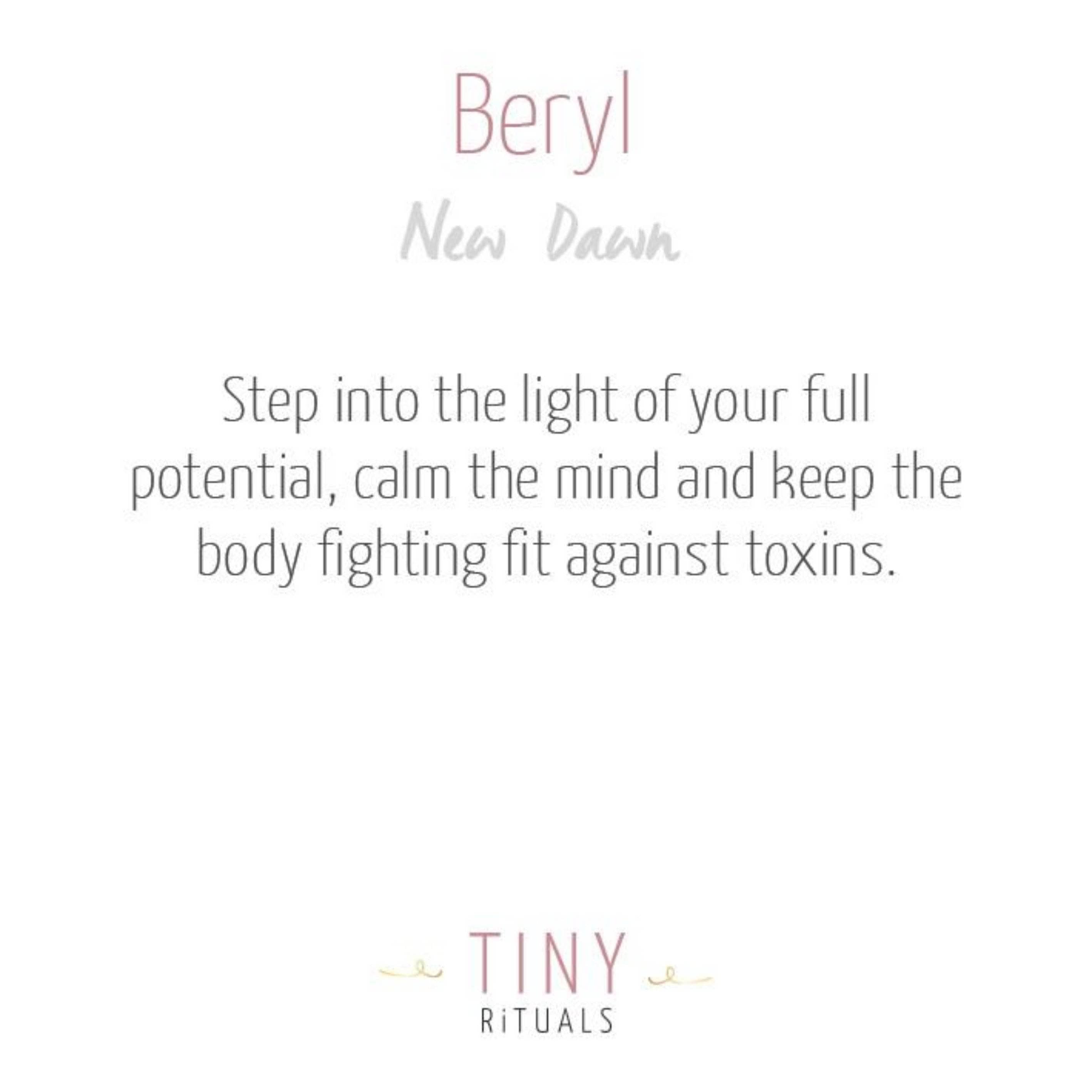 Celebrated as a healing stone on the shores of Ancient Greece, Beryl was said to strengthen belief in the gods. While the Greeks may have turned their eyes to the heavens, today’s Beryl invites you to look deeper inside. It’s soft and soothing nature instantly calms an overanxious mind and gives your courage the gentle nudge it needs. For those who tend to get trapped in patterns of being overanalytical, Beryl reminds you instead to simplify your life and lead from a place of love and balance.