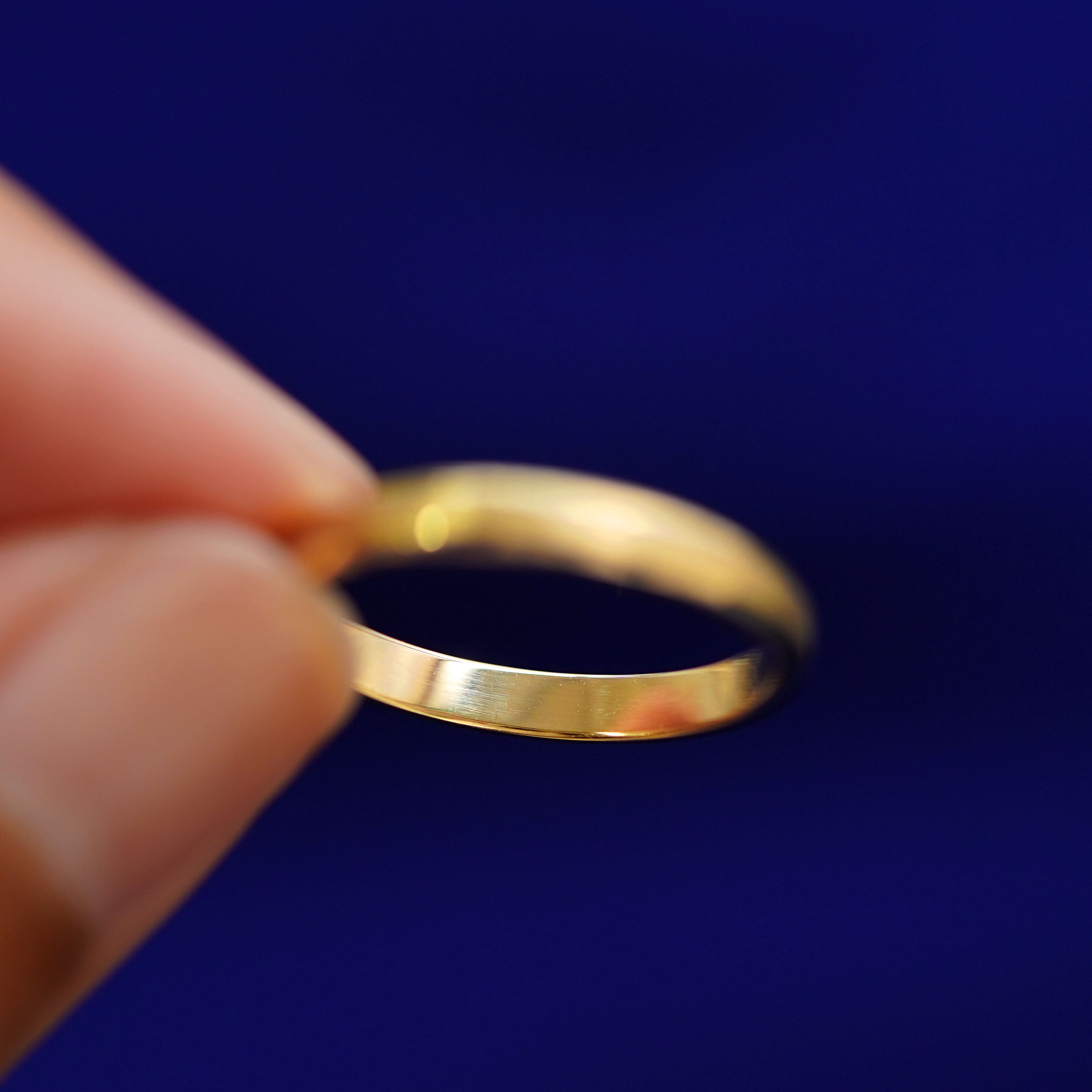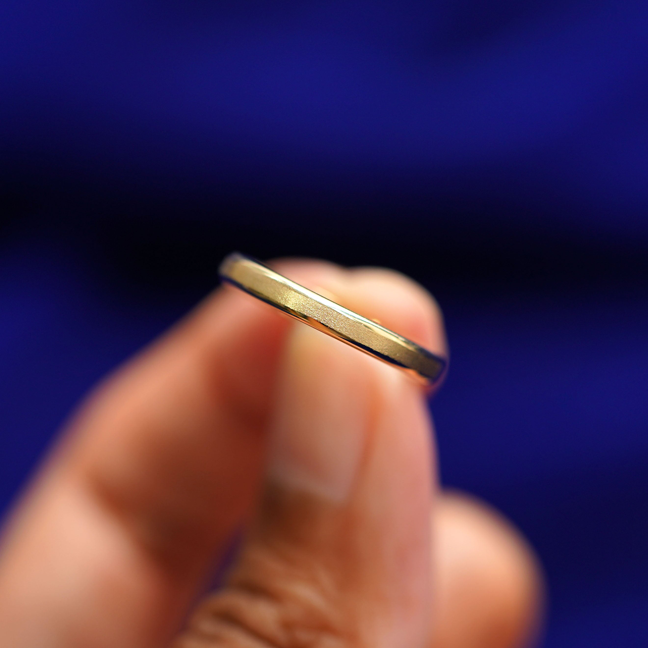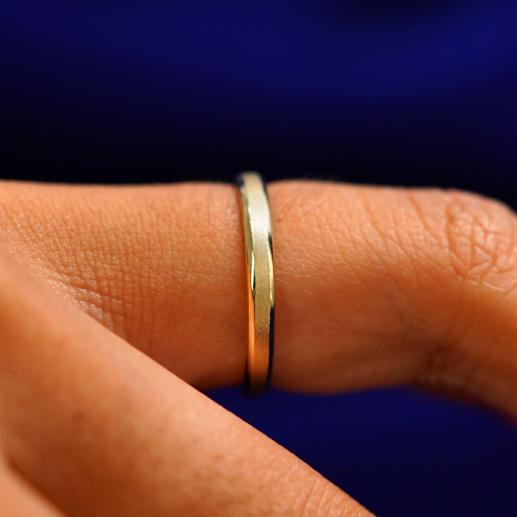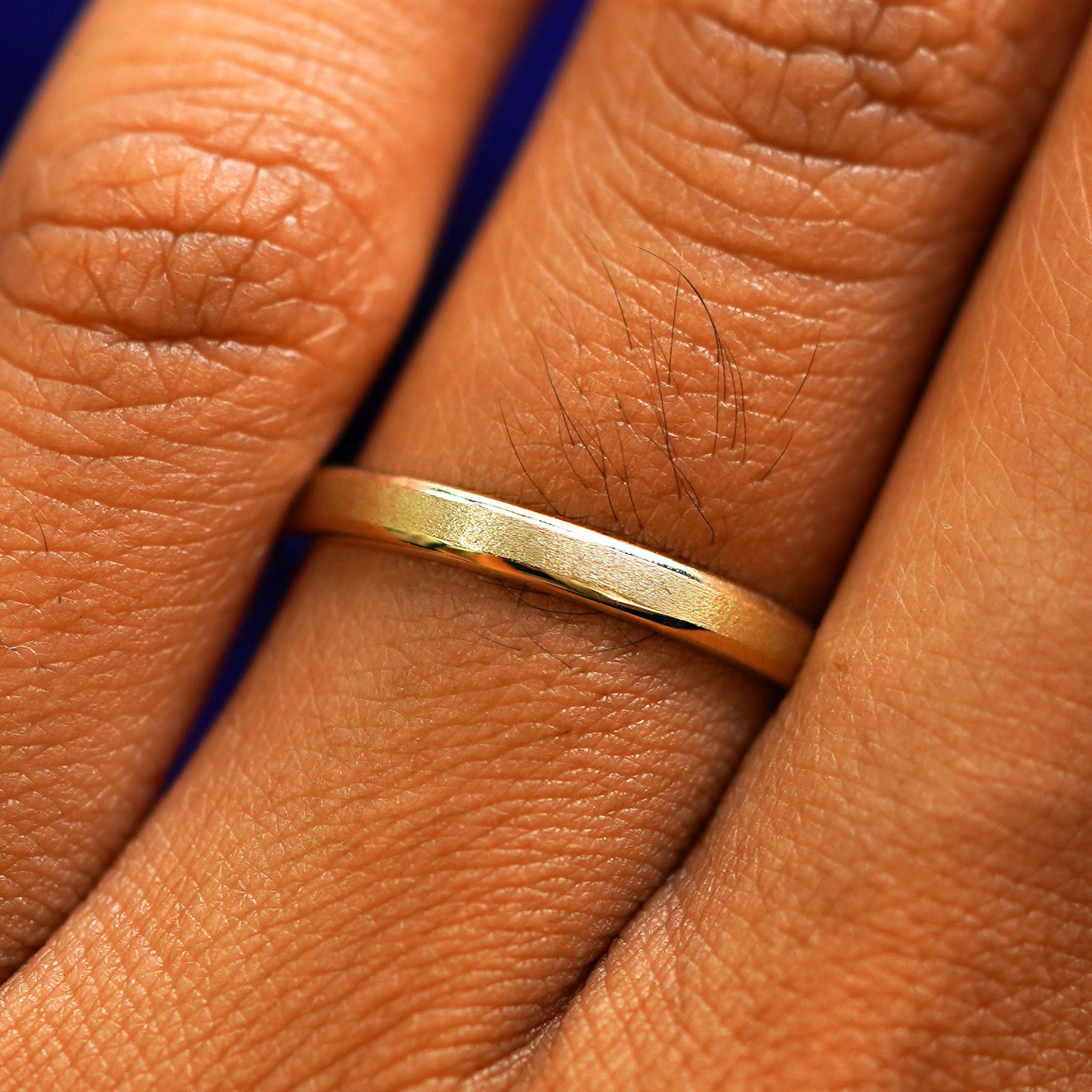 This genderless wedding ring is perfect for anyone looking for a timeless piece that won’t lose its shine. This solid gold or platinum ring featured a chic mirror-polished beveled edge with a matte finish in the center. Whether you’re masc, femme, both or neither, this is a classic design to last a lifetime.