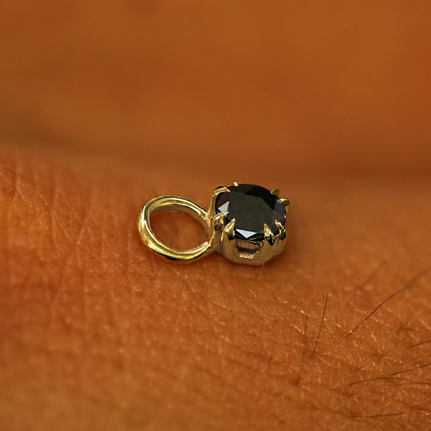 A versatile little gold charm as strong as you are, this glittering black diamond charm is made for you. Crafted from solid 14k gold and featuring a beautiful natural reclaimed black diamond, this sustainable jewelry piece is the perfect addition to your favorite chain, bracelet, or earring.
