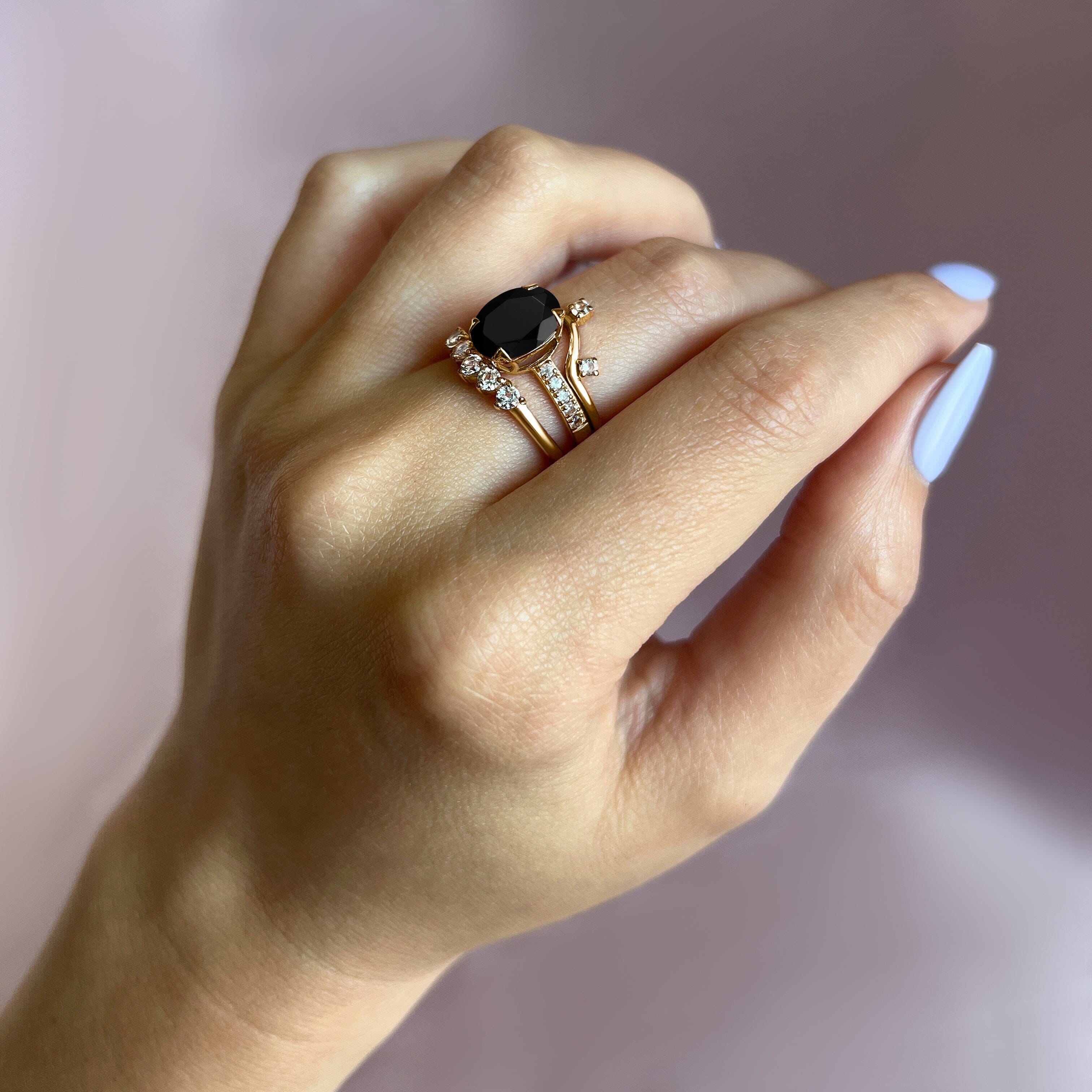 Introducing Our Harlow Ring & Wreath Band & Archer Band, a trio of elegance, strength, and protection, adorned with Black Obsidian. This gem, with its dark hues, promotes resilience in hard times and offers protection against negative energy.