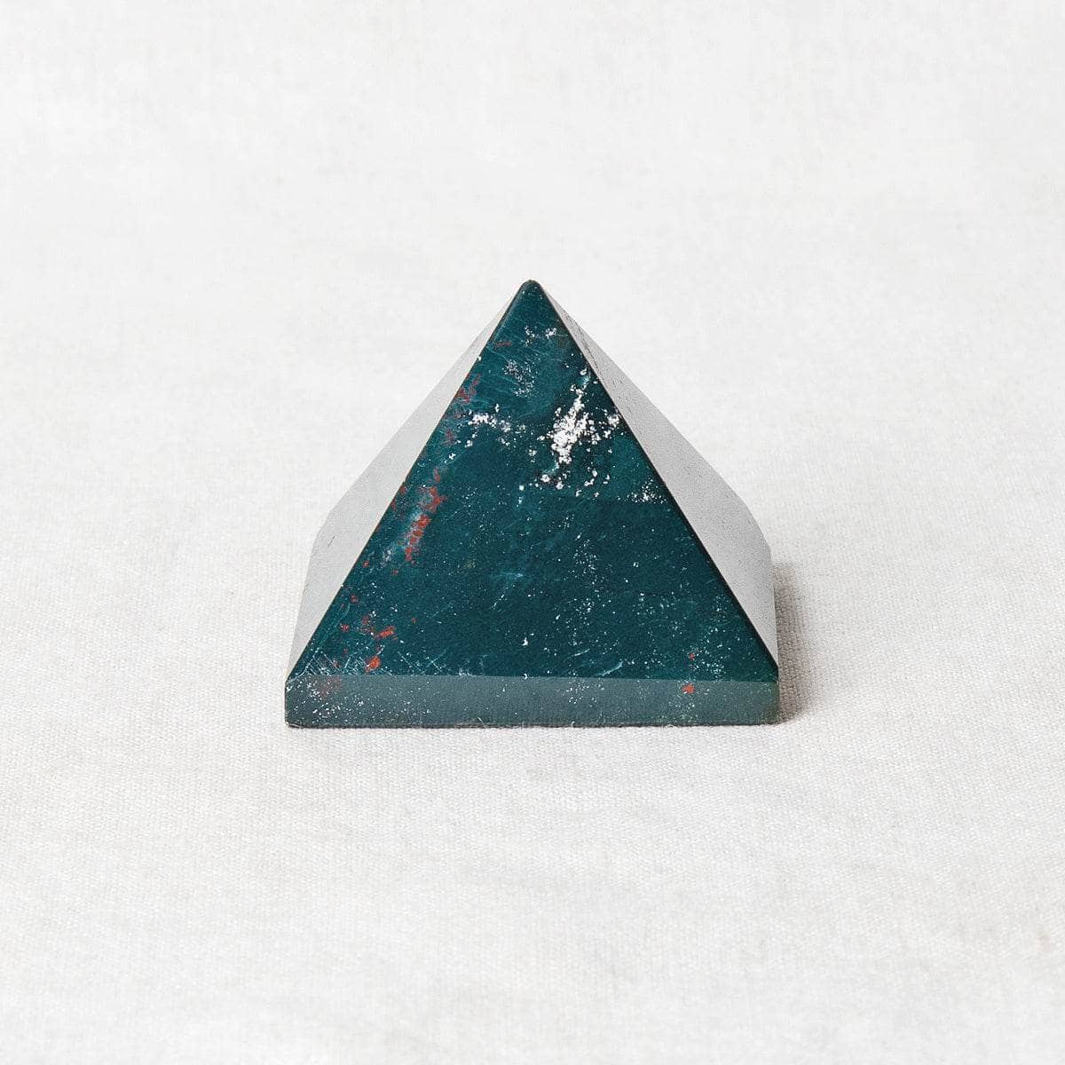 The pyramid is a stunning shape for the energy of the Bloodstone. Pyramids are considered to be one of the most important shapes in sacred geometry. Able to collect energy and resources from the cosmos and the wider world thanks to its point, yet also well versed in its ability to stand steady and strong and solid with the earth thanks to its solid base, this pyramid is the picture of pure connection across all plains.