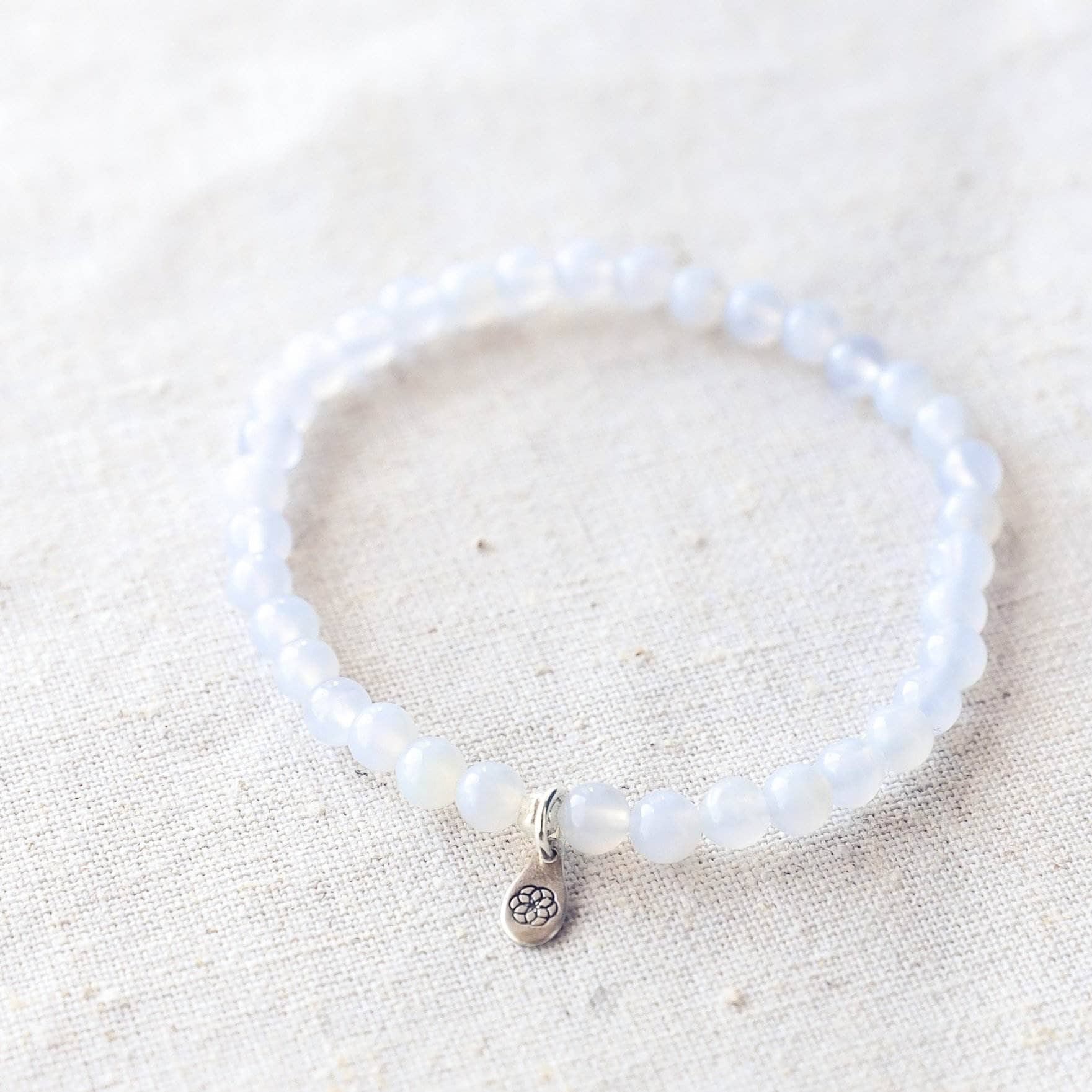 The color blue has long been associated with spiritual realms. It’s the shade of heaven, the line drawn between the ocean and the air, and the same hue that calls to our throat chakra, encouraging communication and truth to flow. The Blue Chalcedony Bracelet vibrates with pure positivity, sending healing vibes to every corner of our soul and inviting progression, growth, and steady balance.