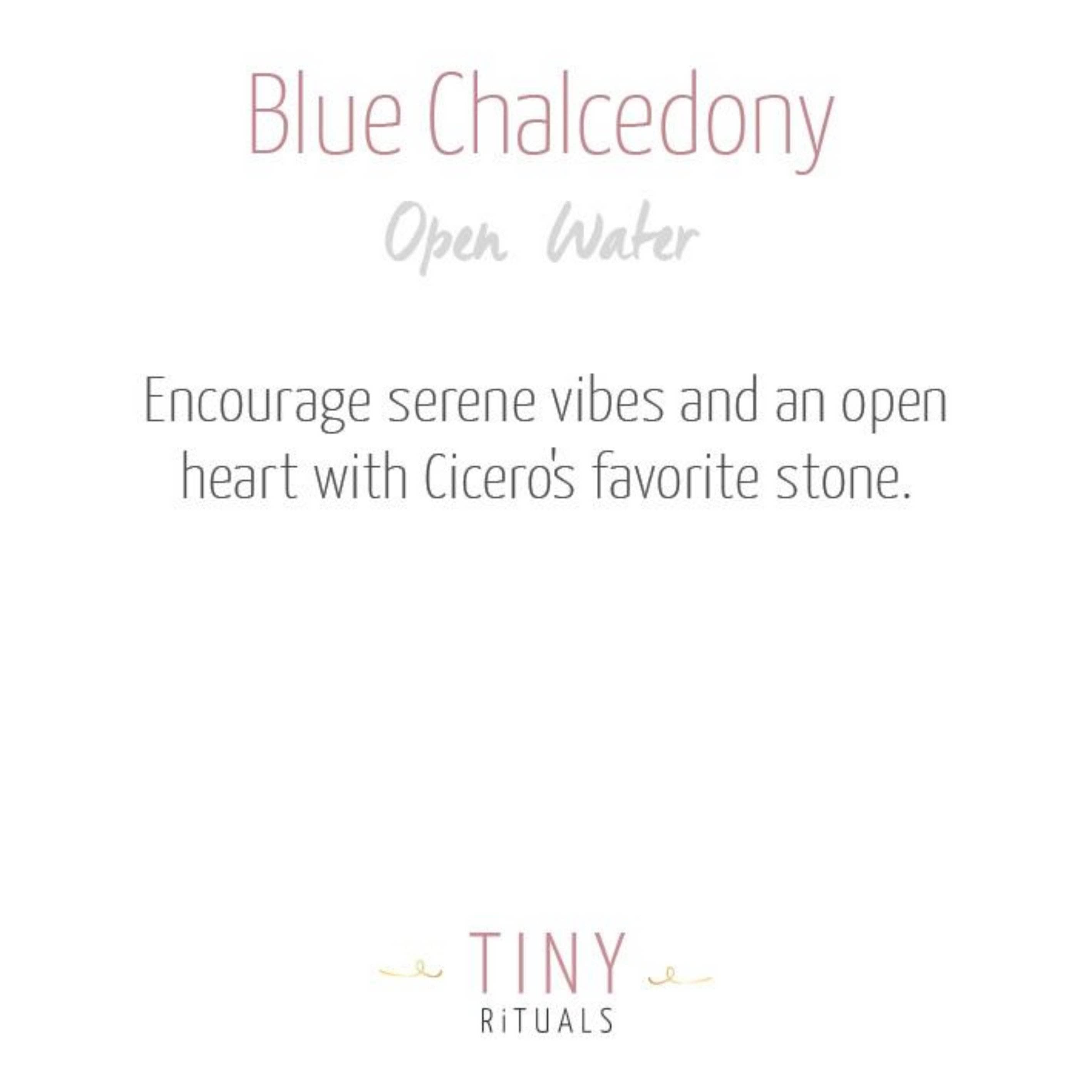 Blue Chalcedony brings its cool moods to the party. Capturing the essence of the early summer sky, or that soft moment just before dusk, this stone is known for bringing healing and trust back to frayed spirits. Deeply nurturing, Blue Chalcedony is ever ready to invite you to step into silence and revelry. This isn’t a gem that stifles, but one that reminds us to think before we speak. It is said that Cicero, the Roman orator kept Blue Chalcedony as an amulet around his neck.