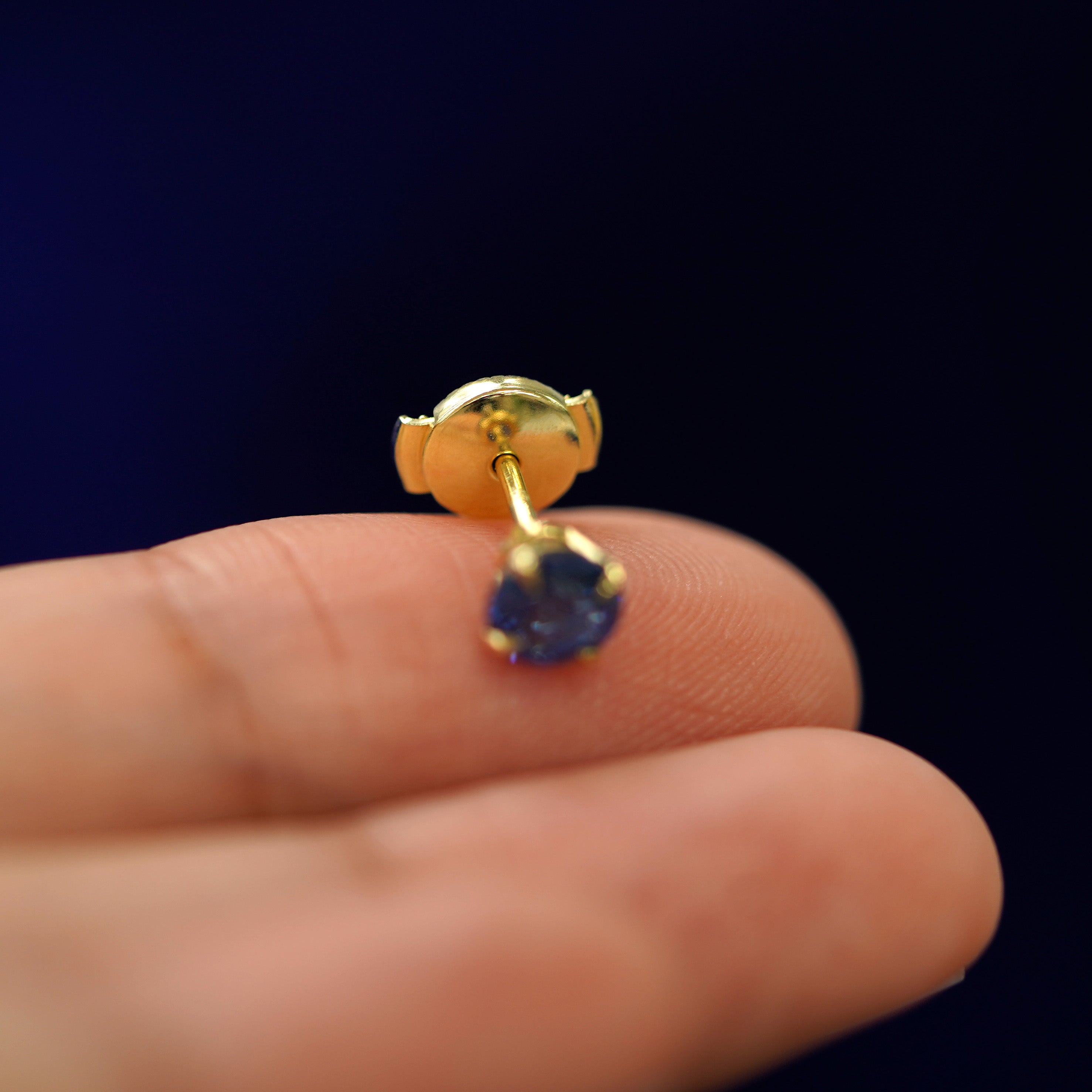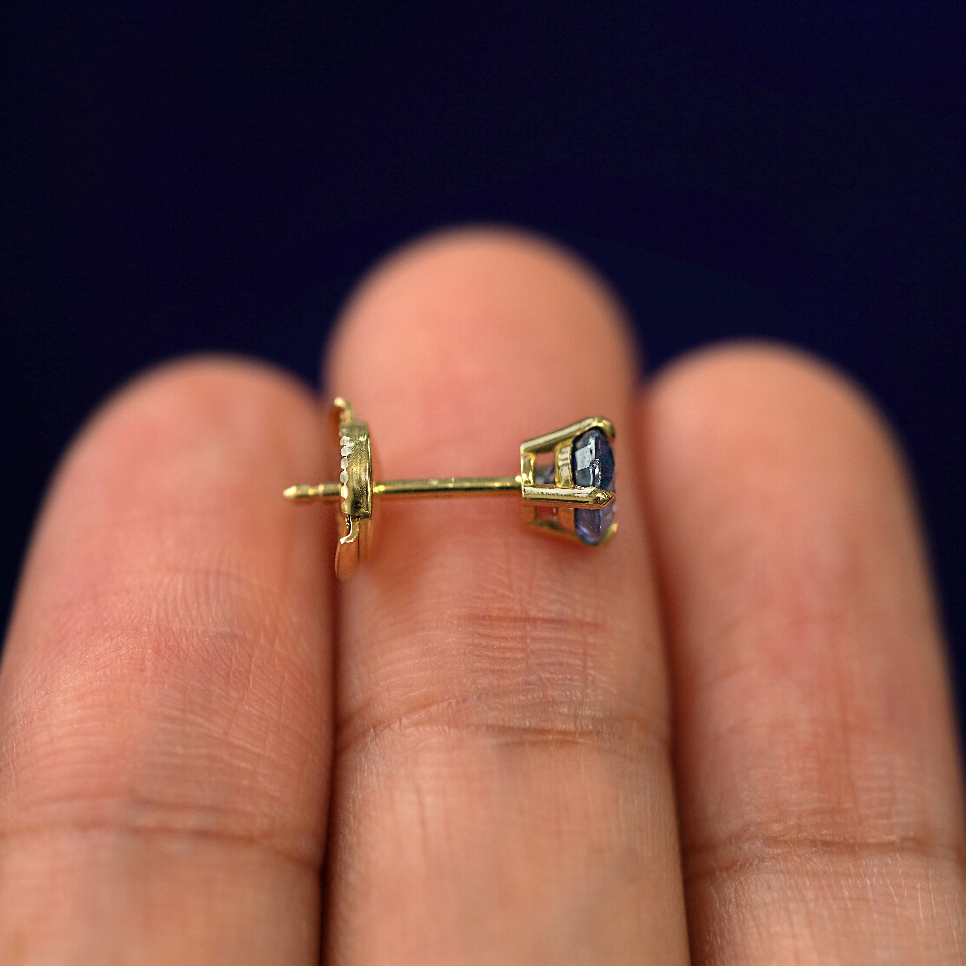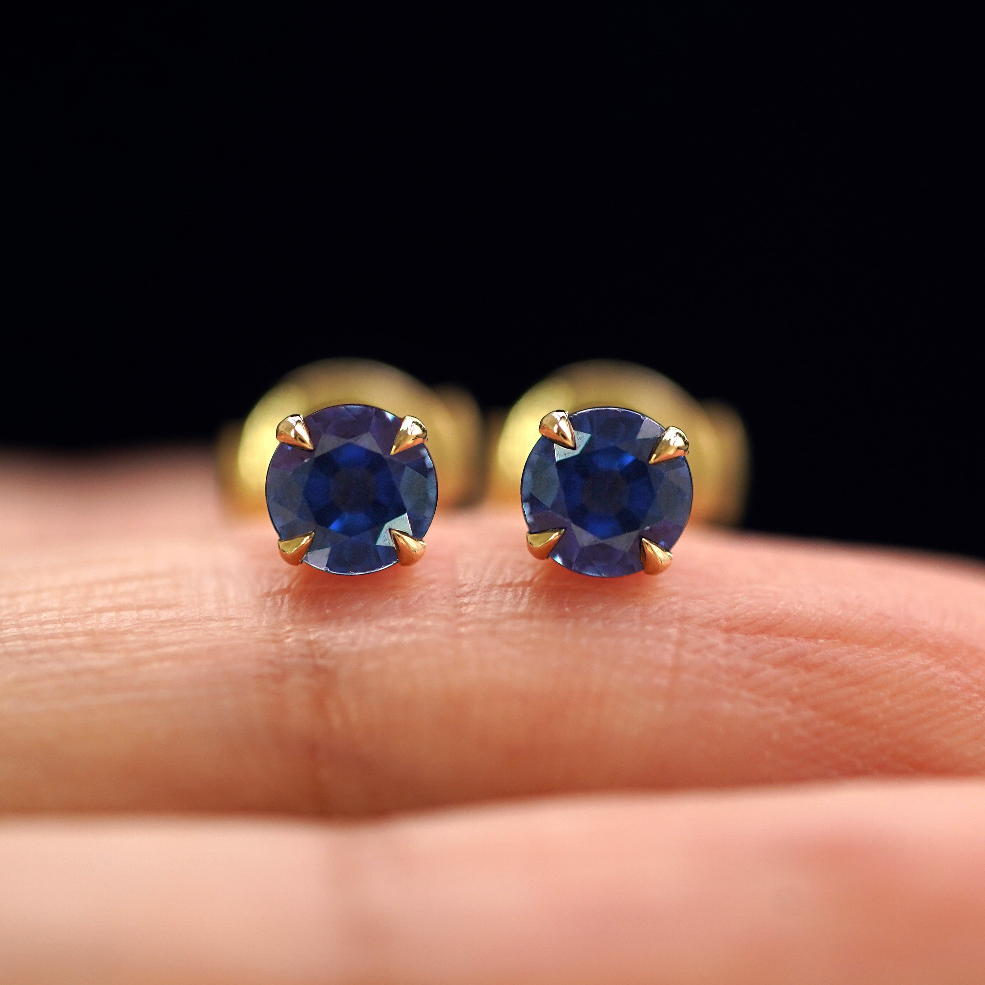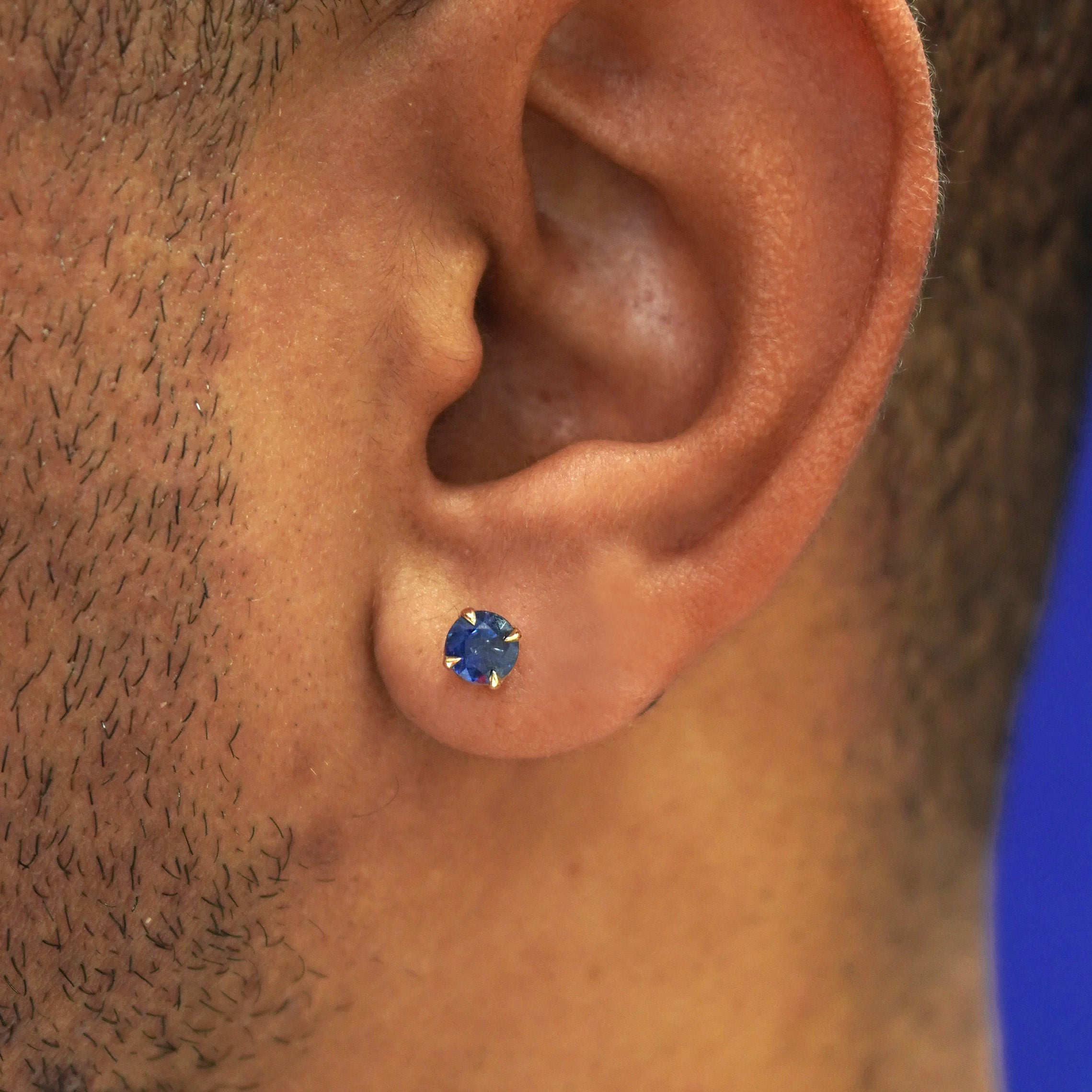 A cool classic, these large gemstone studs are the perfect compliment to any outfit. Glittering 5mm blue sapphires sit in a 14k solid gold setting, staying super secure with our large and easy-to-hold pressure lock backings for a comfortable and gorgeous style.