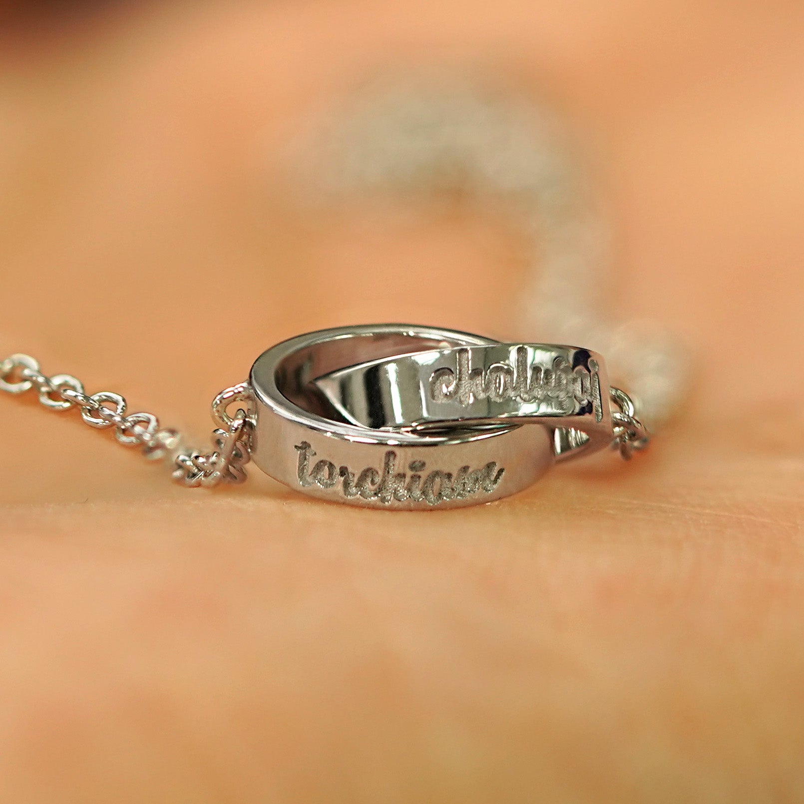 Want to personalize your necklace? The rings can be engraved on the outside or the inside! contact us for engraving.