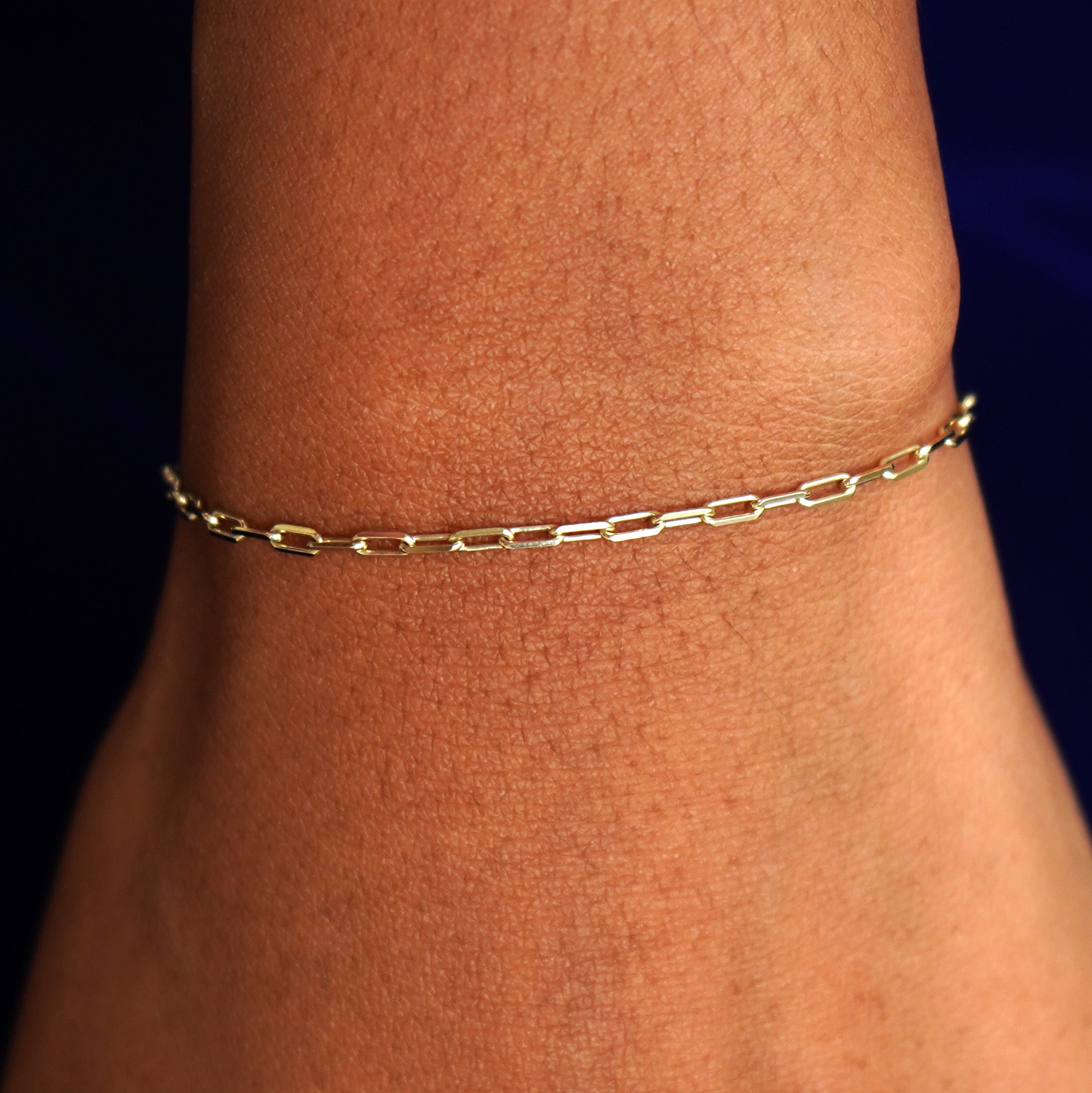 Substantial and strong, this Butch bracelet is one 14k solid gold accessory you won’t be able to live without. Layer this paperclip chain bracelet with our Essential Chain or Bead Chain to elevate your look. Wear this 14 karat gold link bracelet on every day, you'll never want to take it off! Secures with a lobster lock and easy-to-grip Automic Gold AU plate.