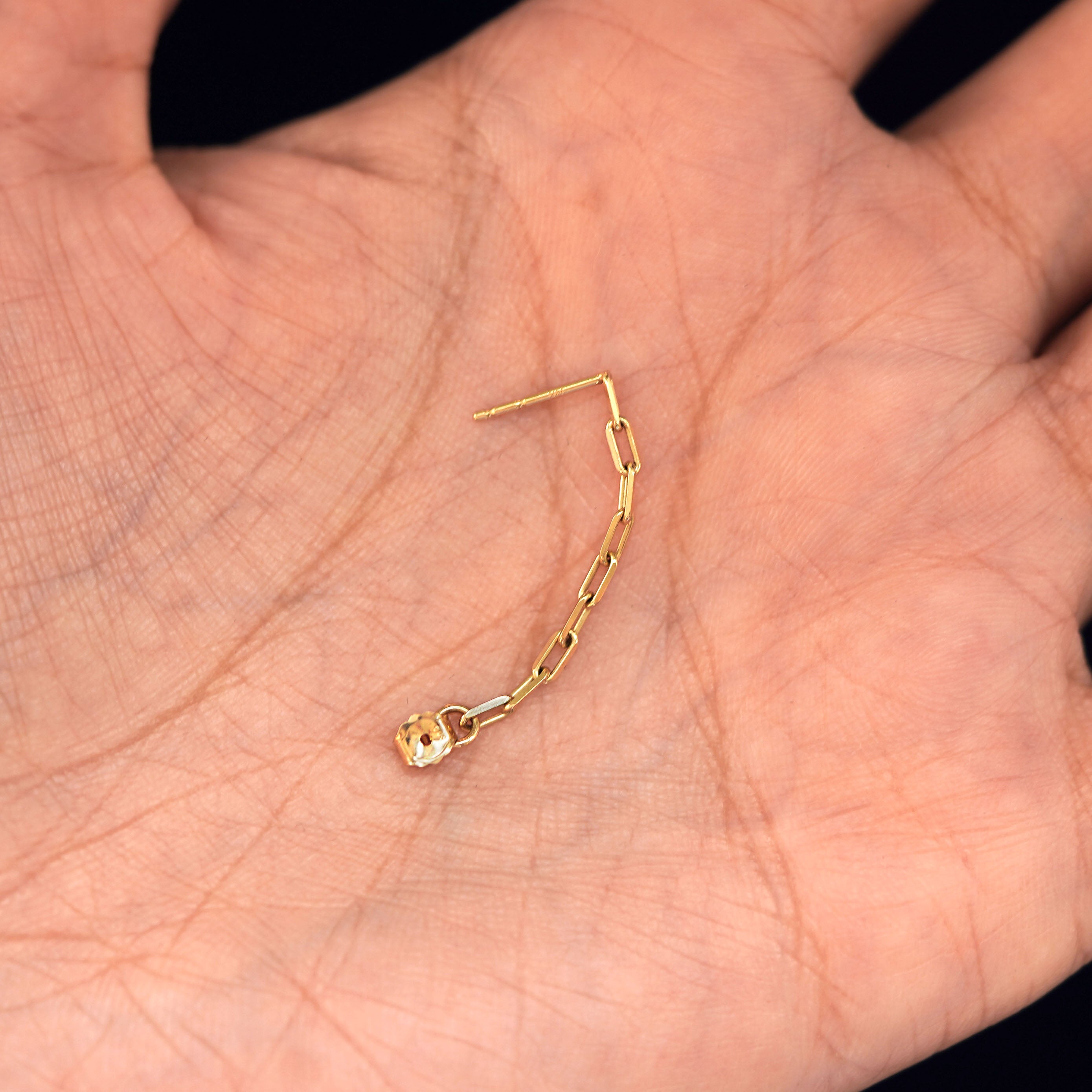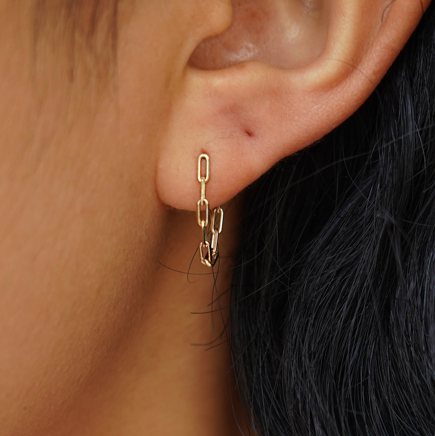 These 14 karat gold butch chain loop earrings combine the elegant style of our Chain Loop Earring with the chic, bold look of our Butch Chain. Dripping in solid gold, these delicate drop earrings are the perfect everyday jewelry pieces.