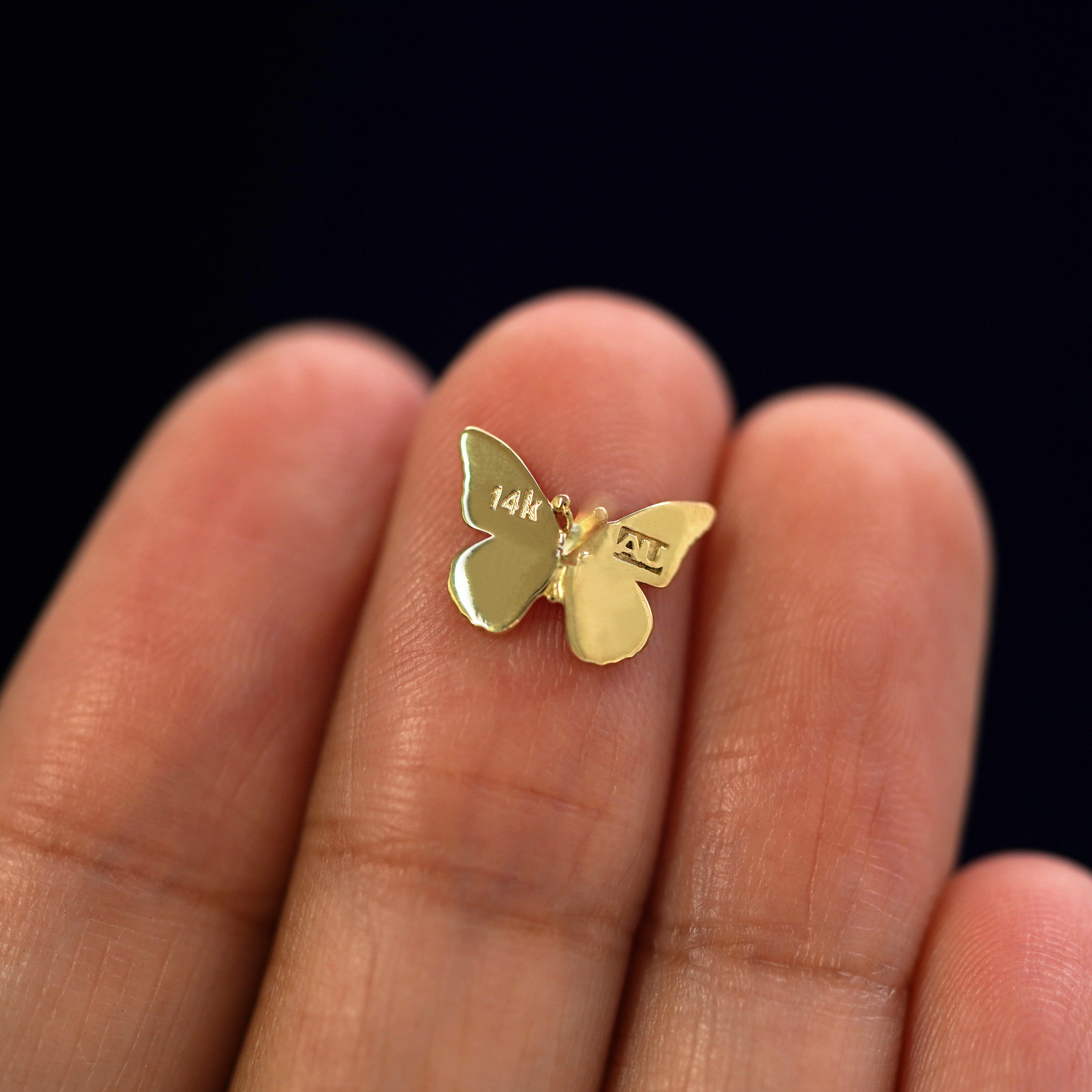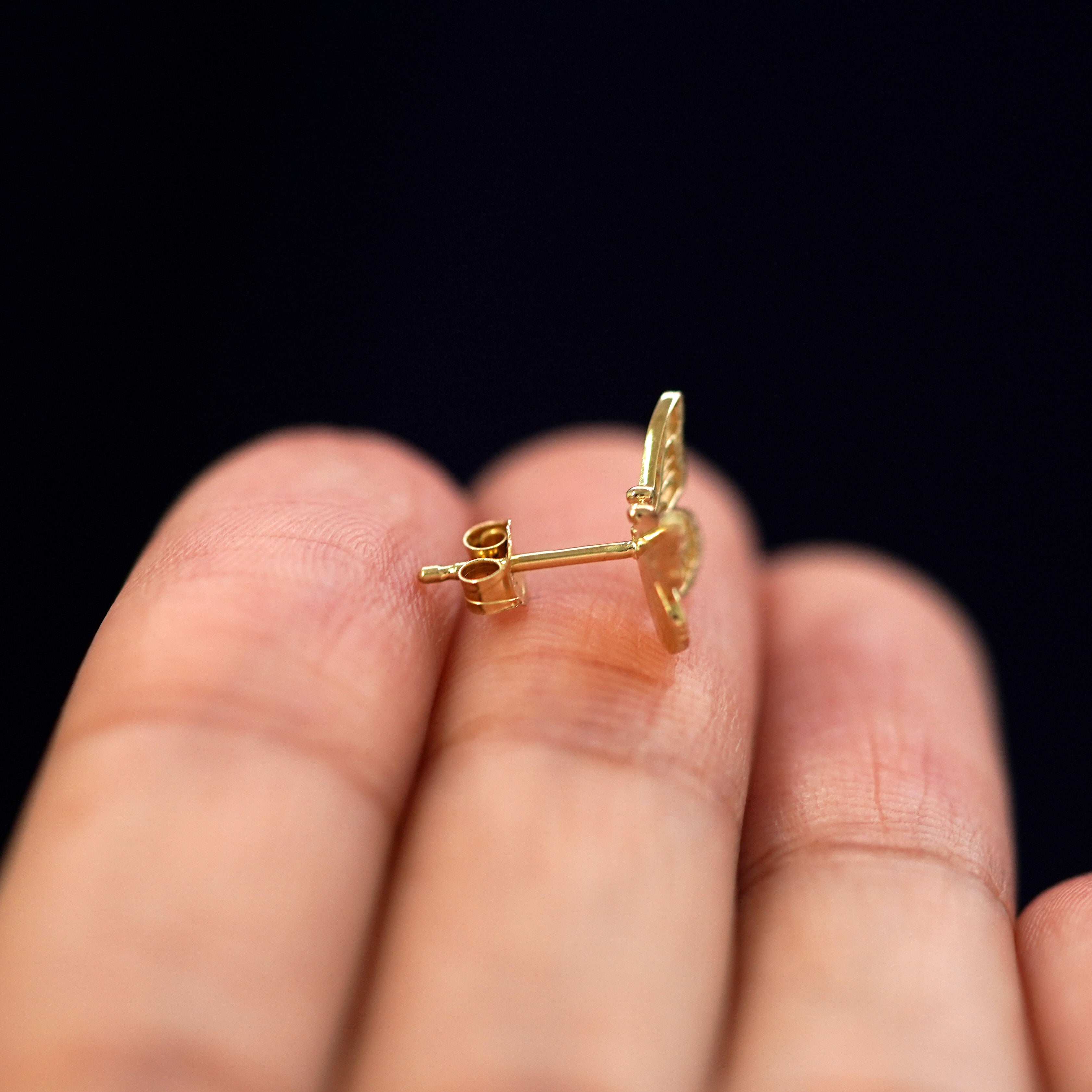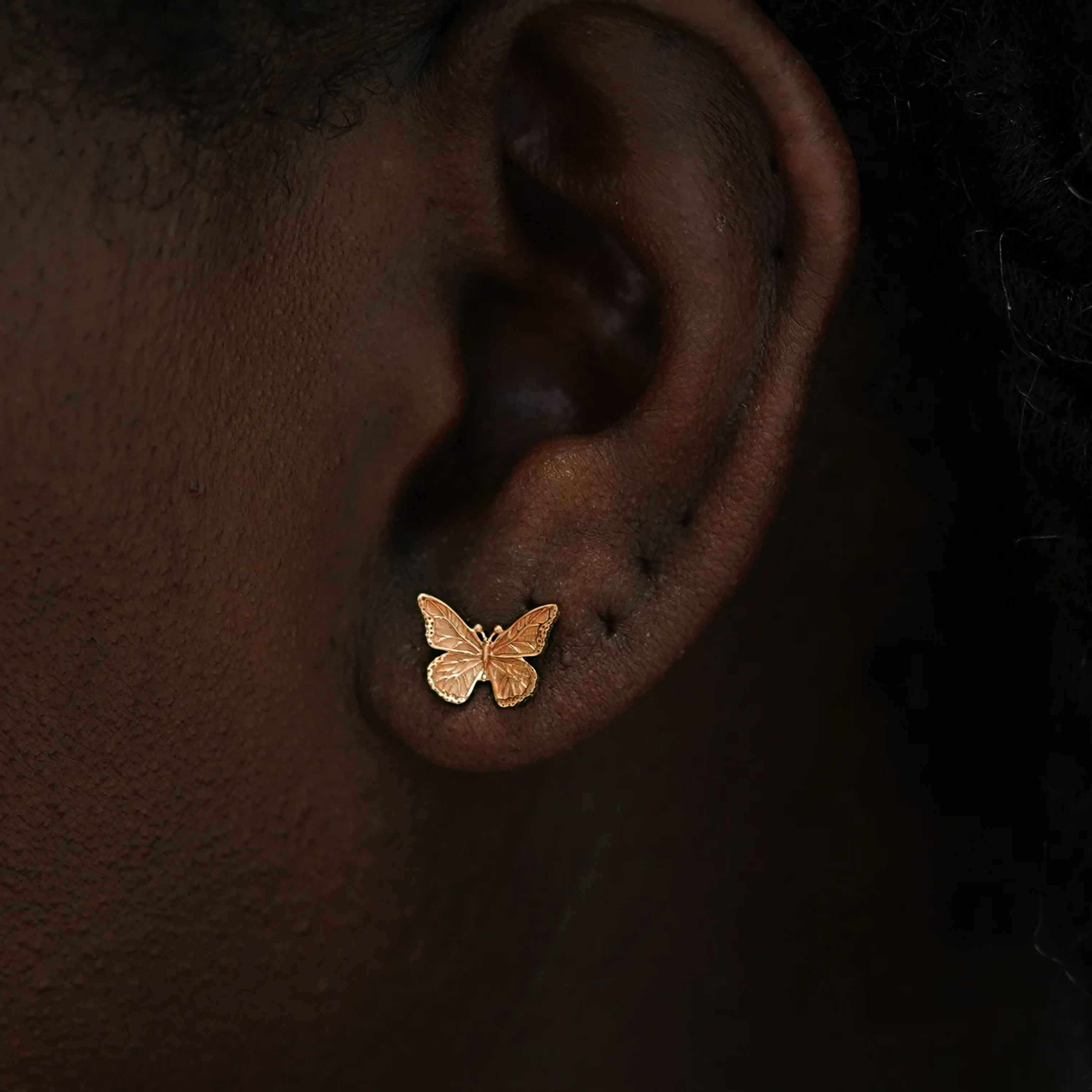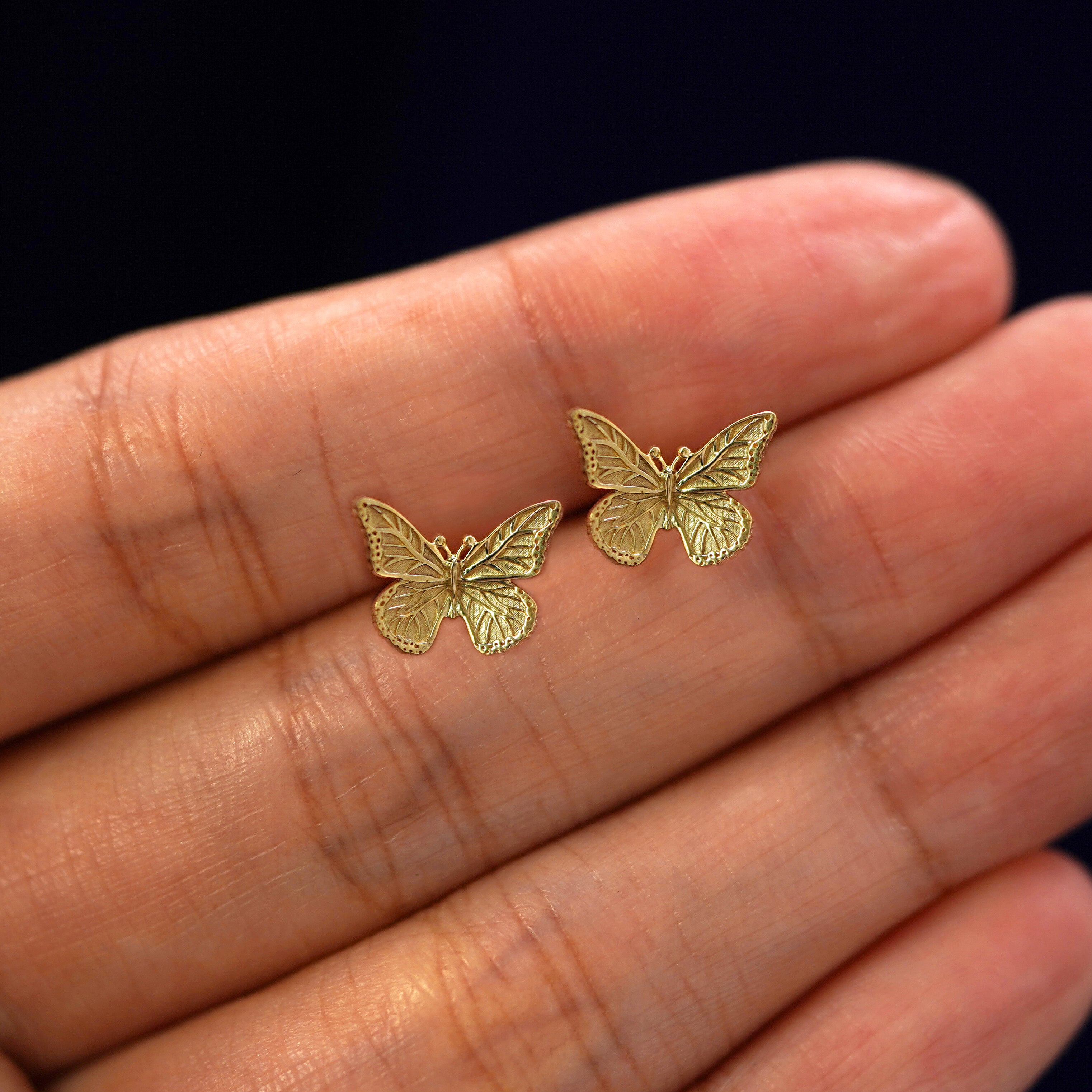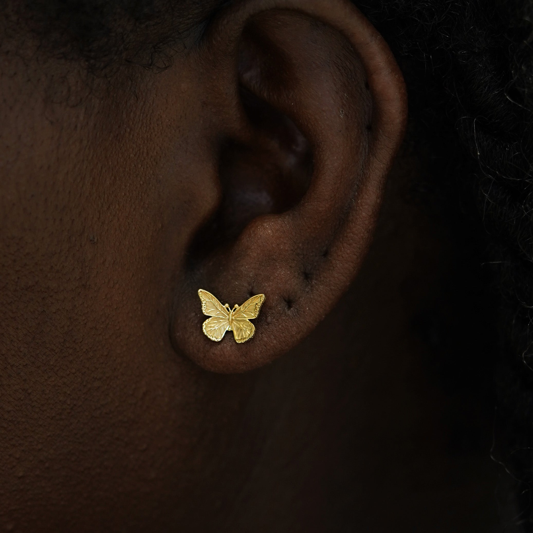 A symbol of transformation and of the soul, our butterfly stud earrings are intricately detailed and carefully crafted from sustainable 100% recycled gold. These delicate 14k gold earrings are the perfect pieces of butterfly jewelry to immortalize your personal journey.