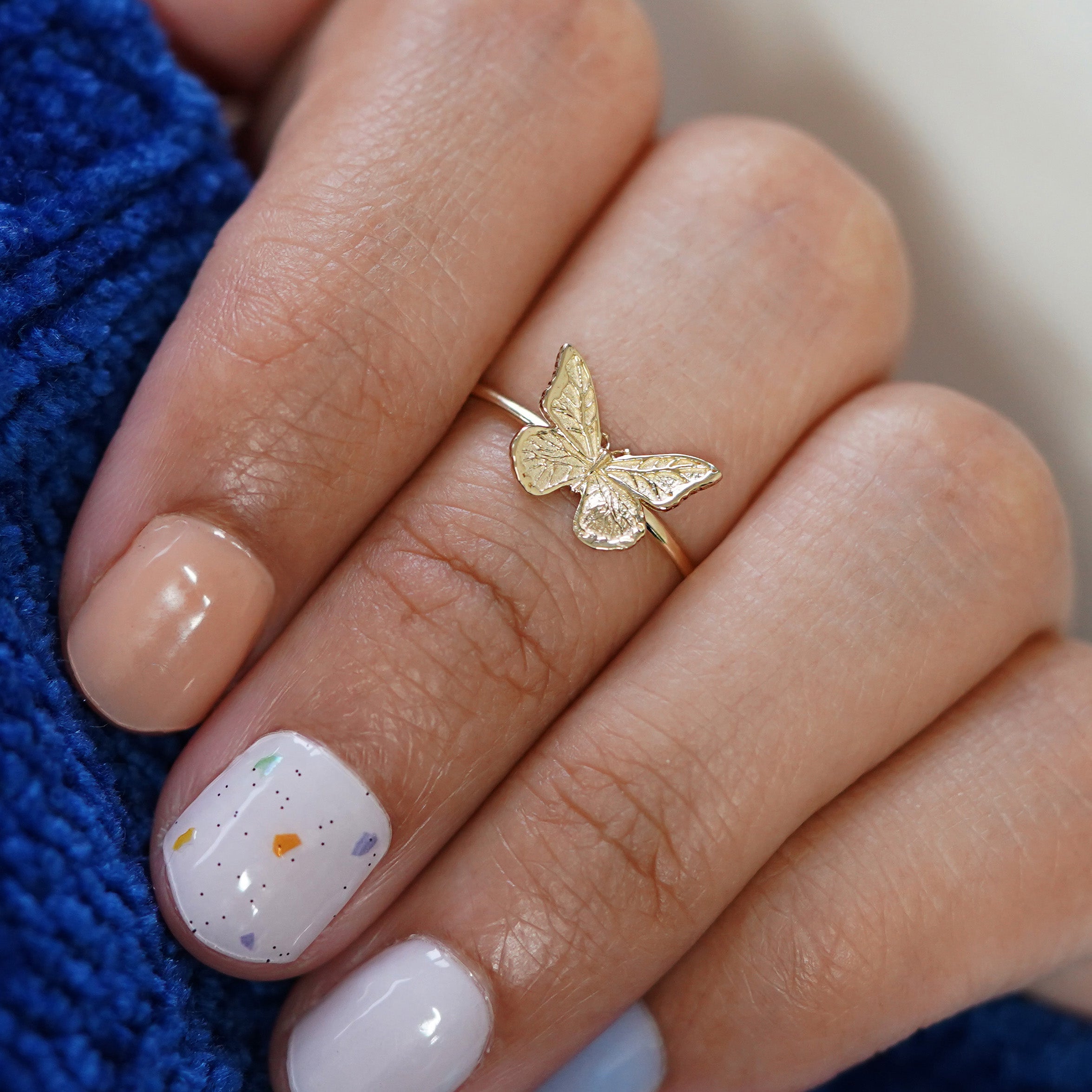 The butterfly symbolizes powerful transformation, and this unique 14k gold ring is the perfect way to honor your personal growth. Incredibly detailed and carefully crafted from 100% recycled, sustainable gold, this butterfly ring has metamorphosed into a stunning statement piece.