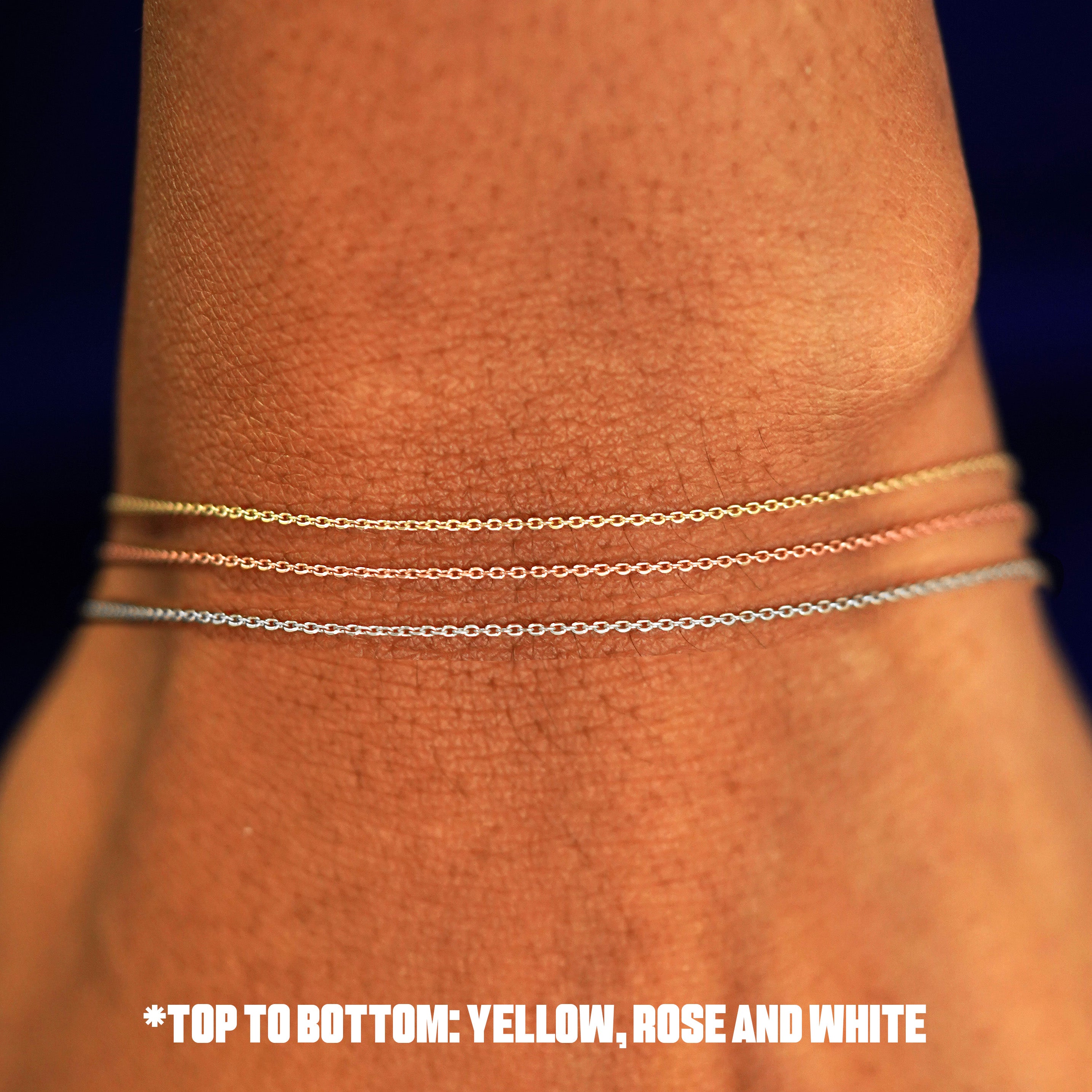 Our 14k solid gold cable chain is lightweight yet durable. Wear this dainty 14 karat gold chain alone or with our other sustainable gold necklaces for a cool layered look. This gorgeous chain is secured with a unique spring ring lock and easy-to-grip Automic Gold AU plate.