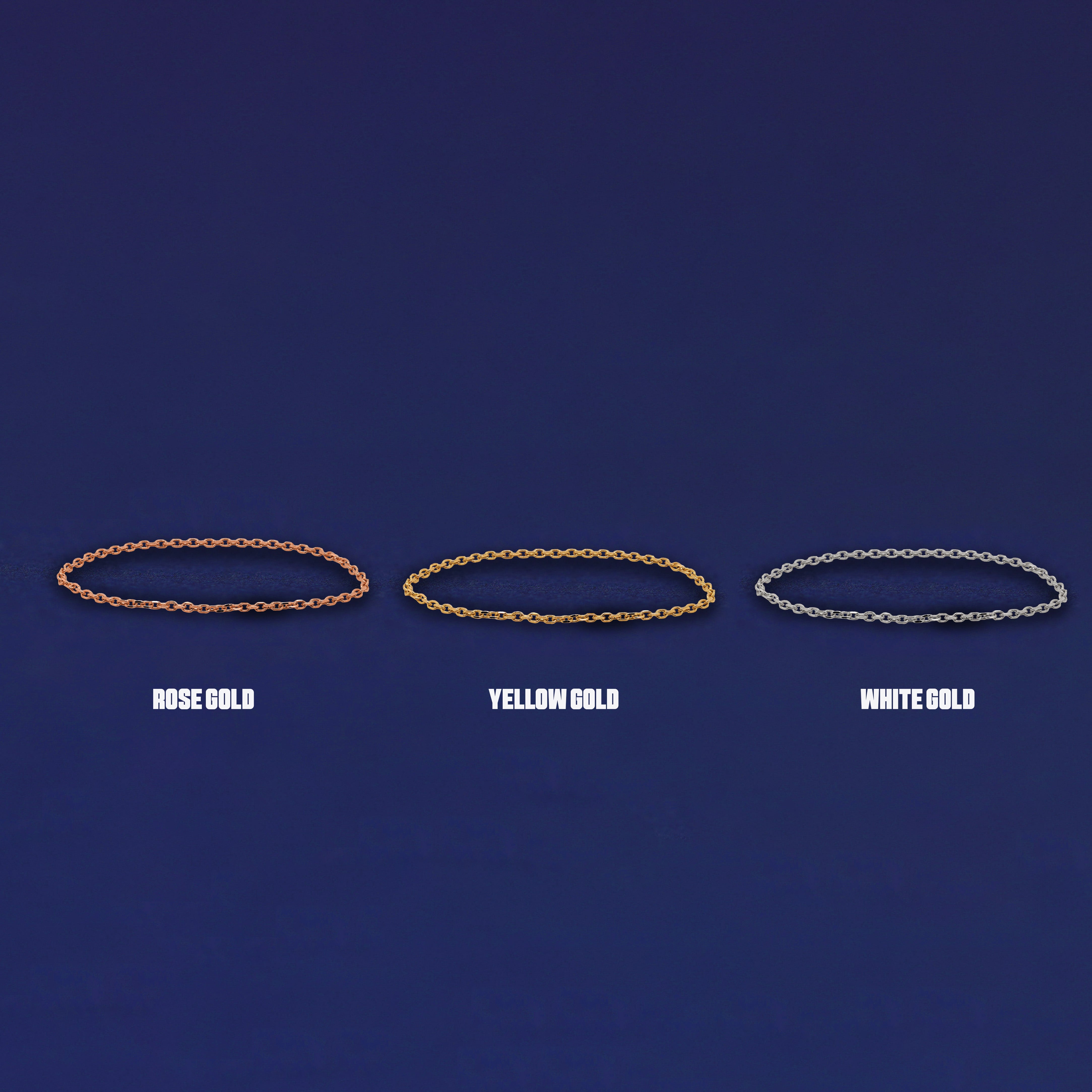 Comfy and chic, this cable chain ring is everything you need to create the perfect look. Designed to match our Cable Chain, Bracelet, and Anklet, this ring is durable and subtle making it perfect for everyday wear! This 14k solid gold ring is stylish enough to wear alone or make a statement by stacking it with our other solid gold rings.