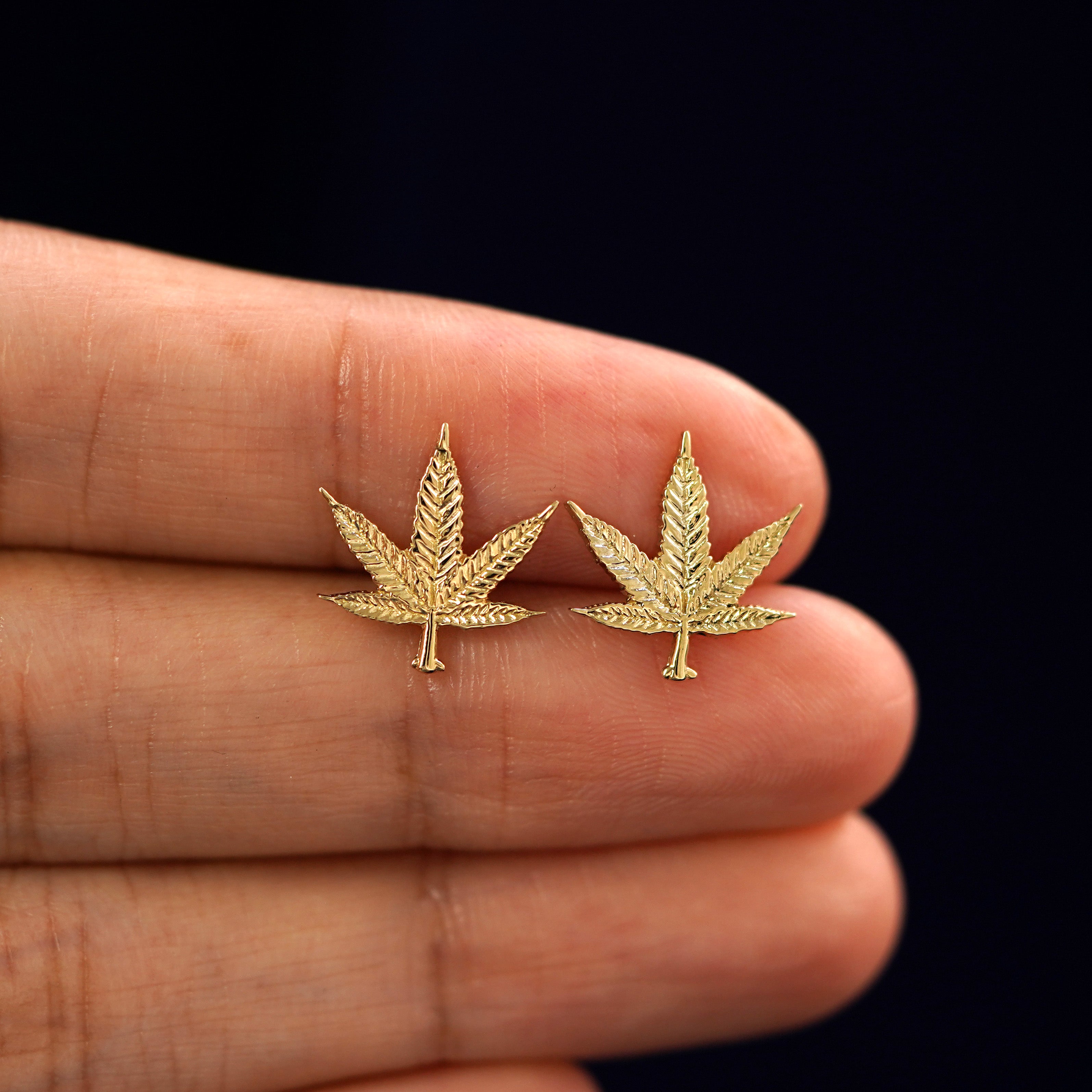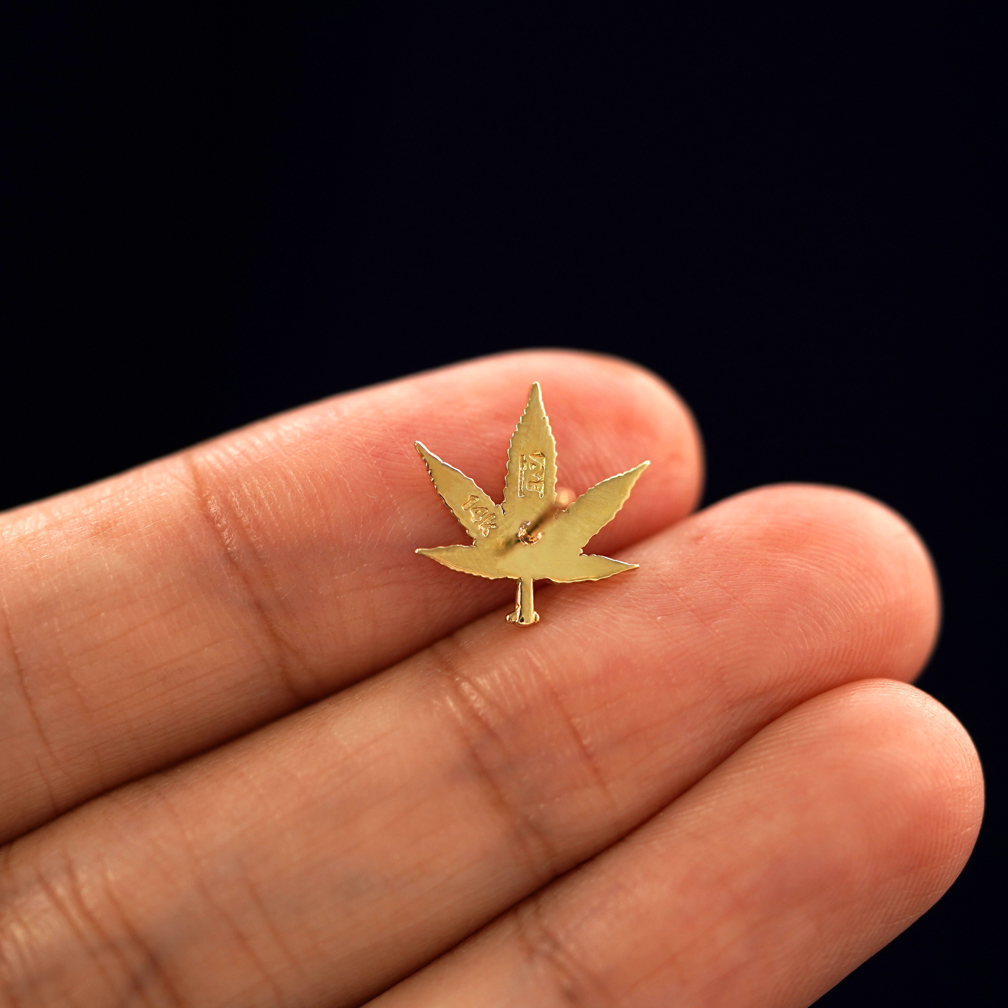 Show off your 420 pride with this cute pot earring. Hand-crafted from solid gold, each leaf of this weed earring is brilliantly detailed. Wear these potent 14k studs wherever you go!