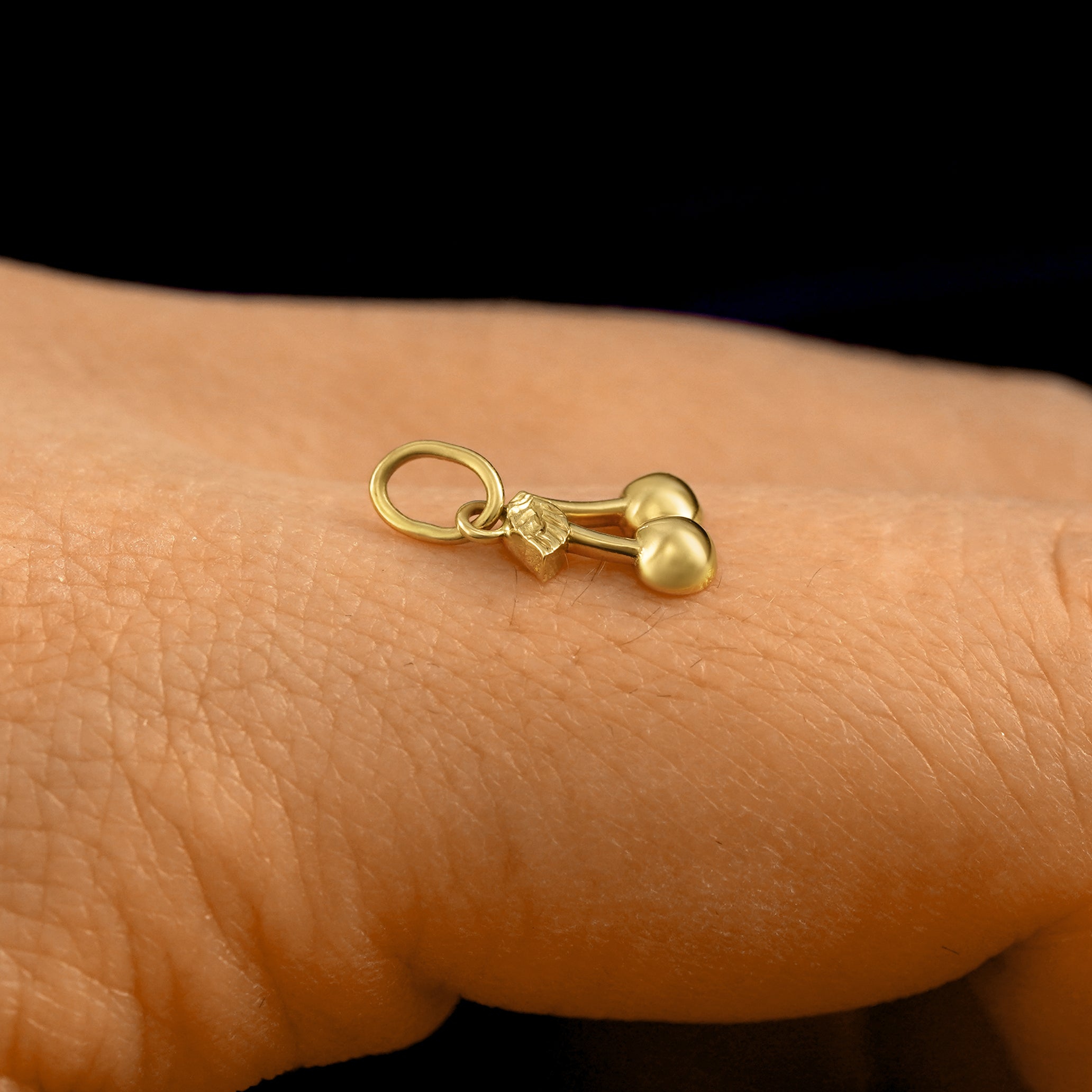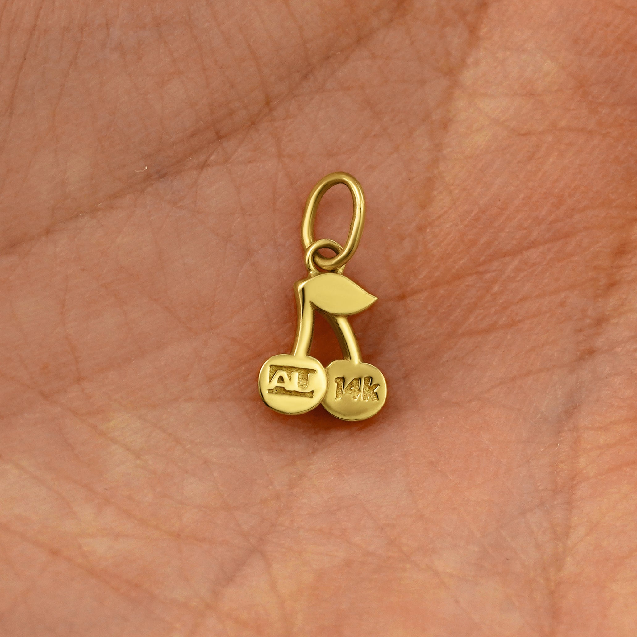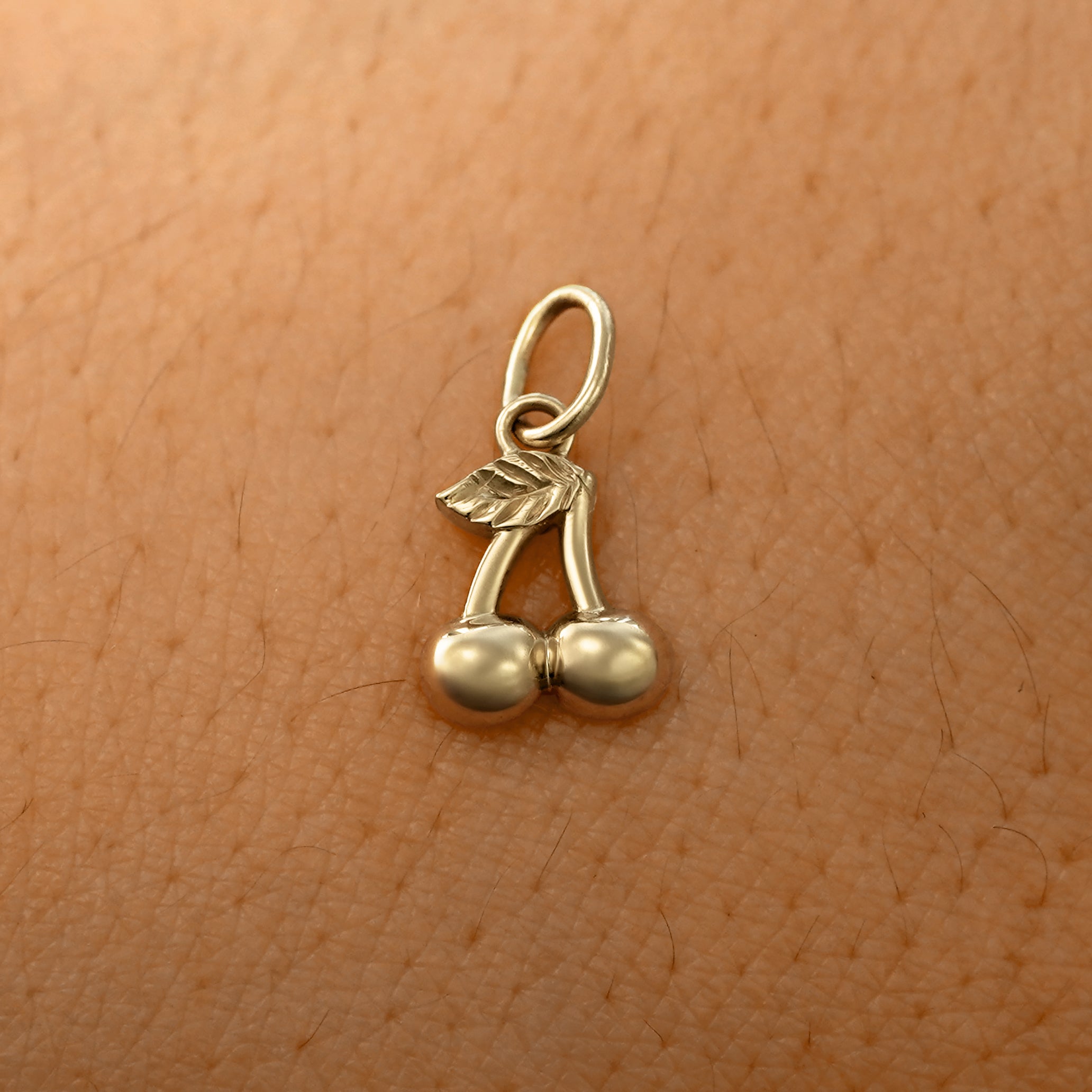 A subtle sapphic nod, or simply your fav fruit, this cute cherry charm is everything. Made from recycled 14k gold, this dainty charm has a rounded design on the double cherries and hand-etched detailing on the leaves that make it really sparkle in the light.