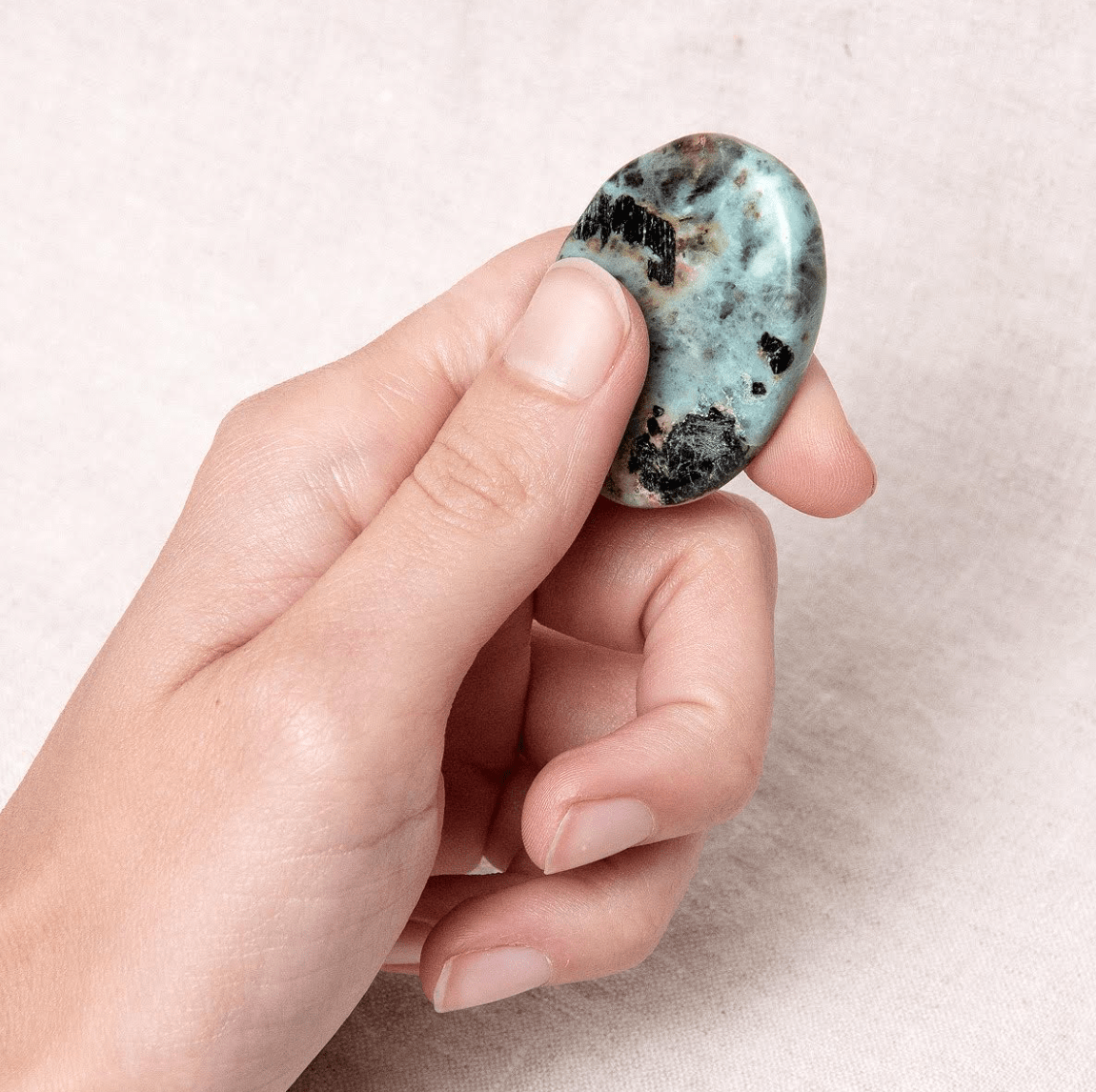 Worry stones are wonderful talismans that serve not only to comfort but to fill your heart with strength when needed. There are many moments when life seems to weigh heavy on the soul, but with this golden blue and green earthly worry stone, you can find your way again. Polished, cool, and smooth, the worry stone fits perfectly in the palm of your hand and offers a thumb groove for fabulous fiddling. A beautiful way of pouring your energy into something that heals, crystal worry stones lift you right up.