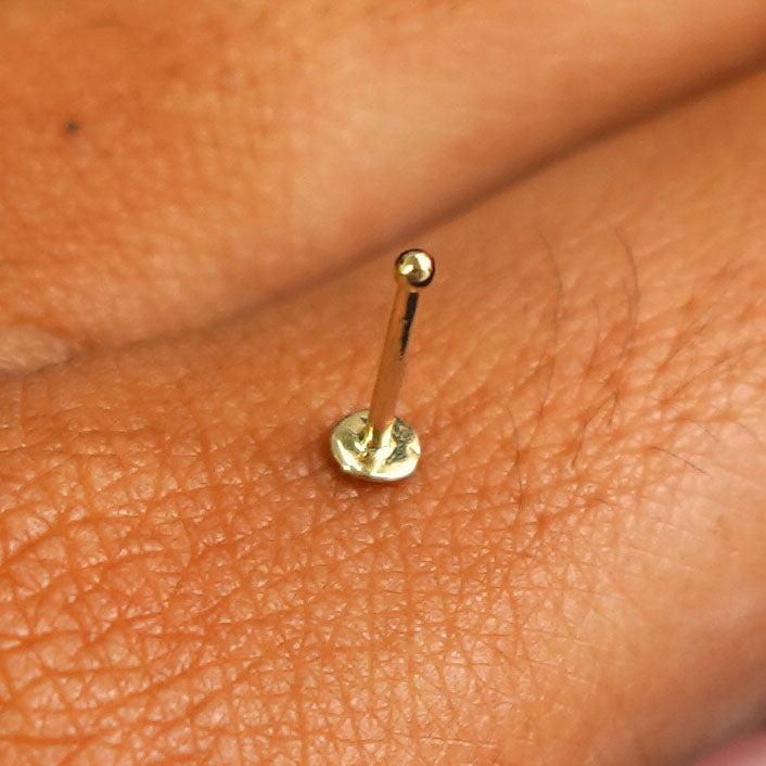 Our classic Circle Stud but now for your nose. This dainty 14k solid gold nose stud adds just a hint of sparkle for a minimalist style. Wear this comfortable piece of body jewelry without worry it will tarnish.