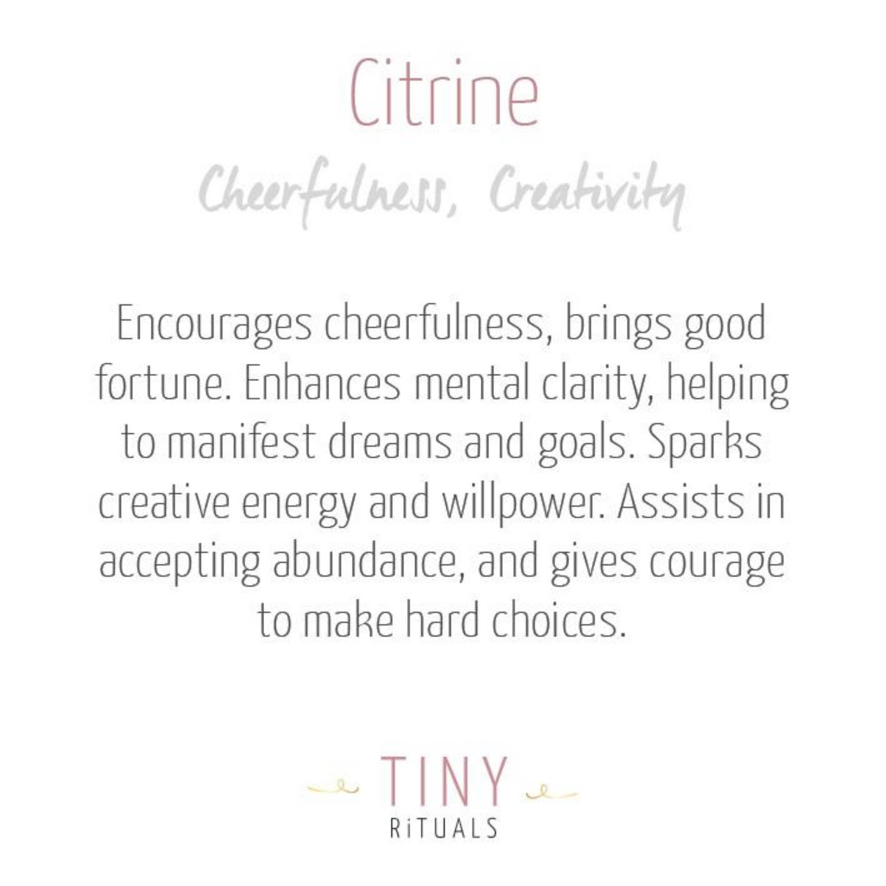 As light and warm as the sun, Citrine radiates health, inner wealth, and awakening dormant dreams. Nicknamed ‘the light bringer’ by the Ancient Romans and Greeks, there has always been something about this gemstone that called to us. Perhaps it’s the familiar feel of warmth, the glitter of nature’s gold, or the divine symbol of fruit that we hold close to our hearts, but Citrine seems to shake our spirit in the most positive and playful of ways.