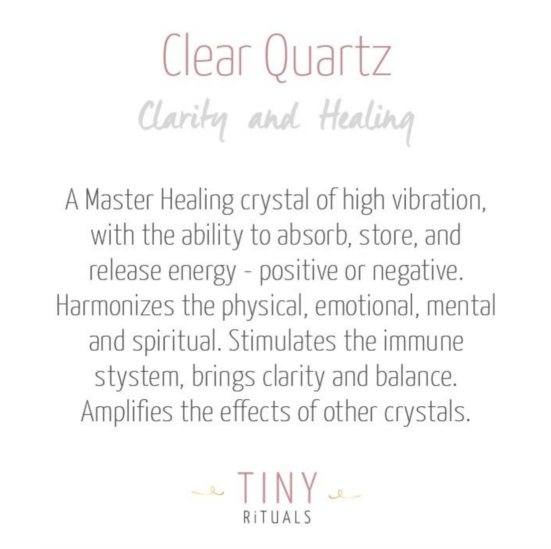 The Clear Quartz crystal is known as the Master Healer. This healing stone is an amazing amplifier and can take even a smidge of positive energy and turn the dial right up. Because of these powers and its commitment to clear-headed thinking - it is wonderful at helping to chase out toxic thoughts, and negative behaviors, and can even channel excess energy exactly where it is needed.