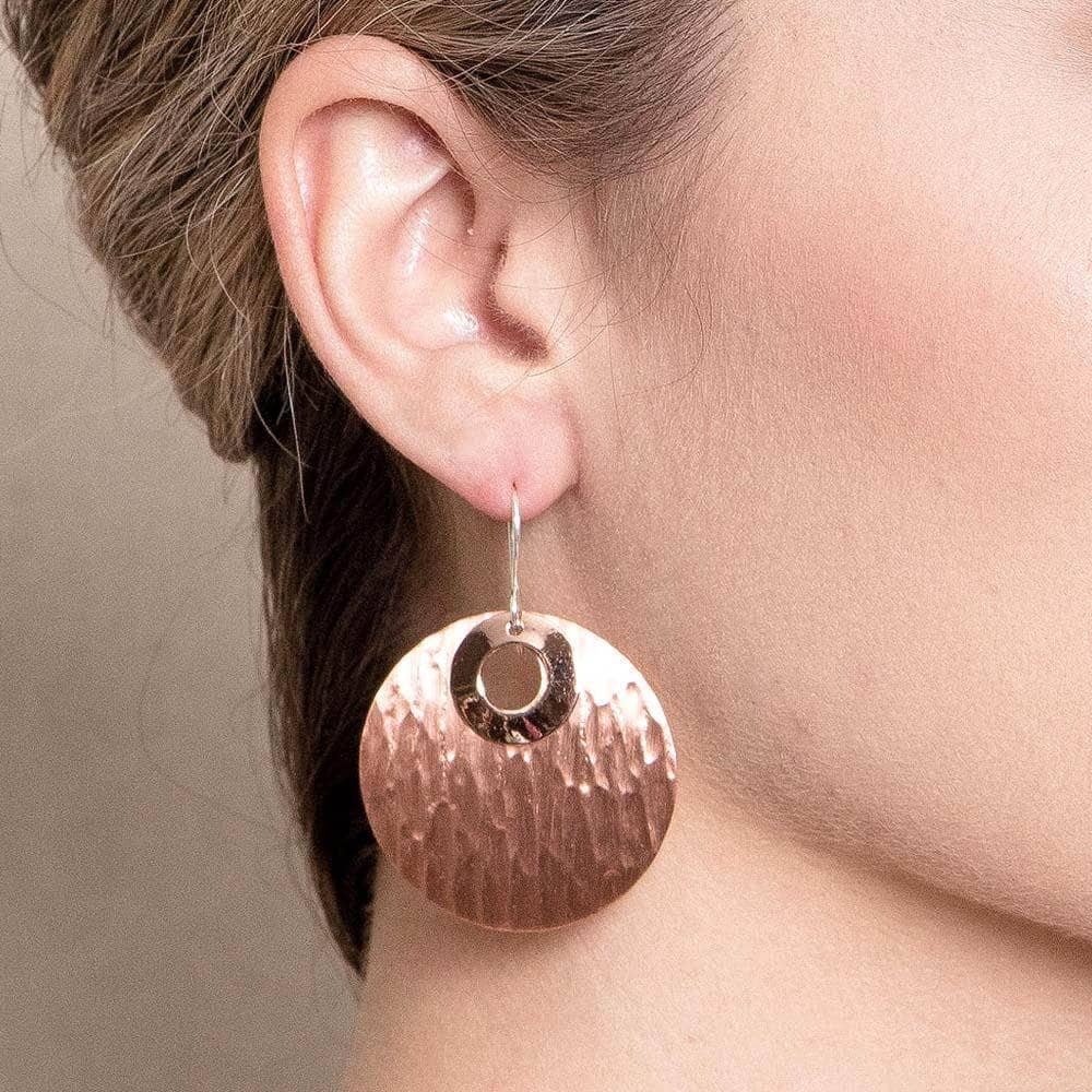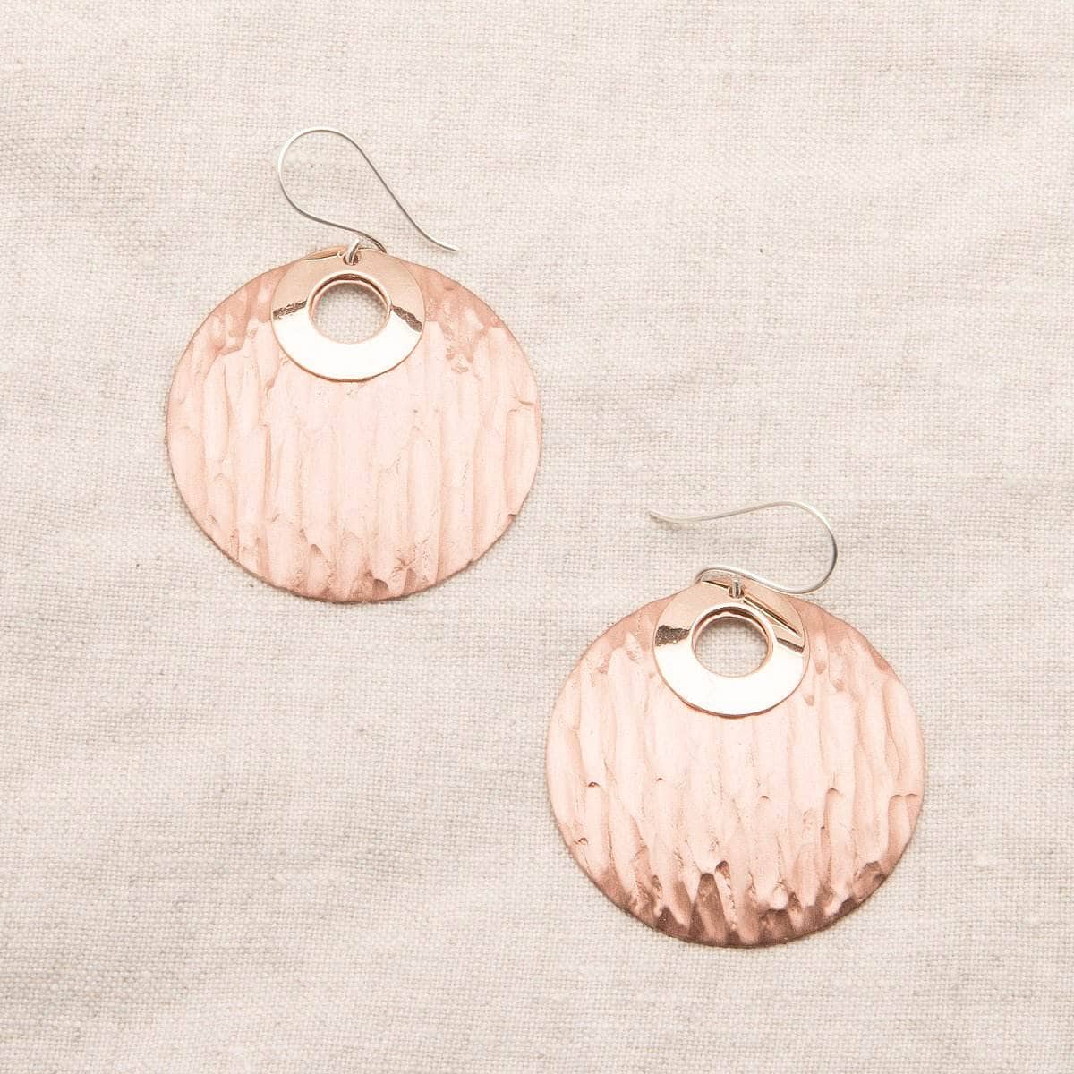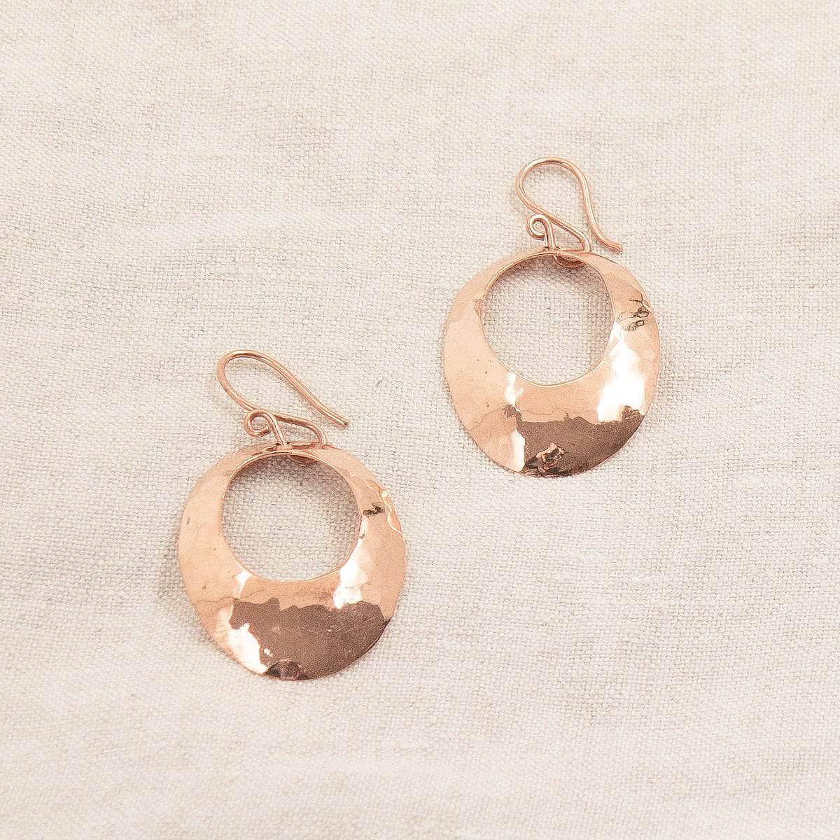 Striking in shades of warm earth and molten moods, these Copper Hammered Earrings are all about magnifying positive moods, harmonizing emotions, and helping the body with deep spiritual and physical healing too. Handmade in Mexico with lashings of soul and love, these hammered copper earrings flash with the promise of soothing energy, earthly connection, and elegant ease.