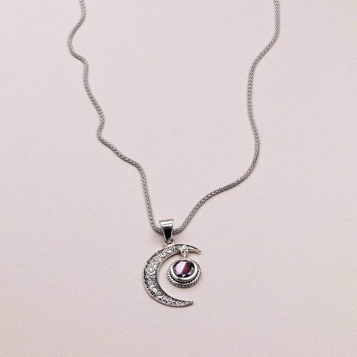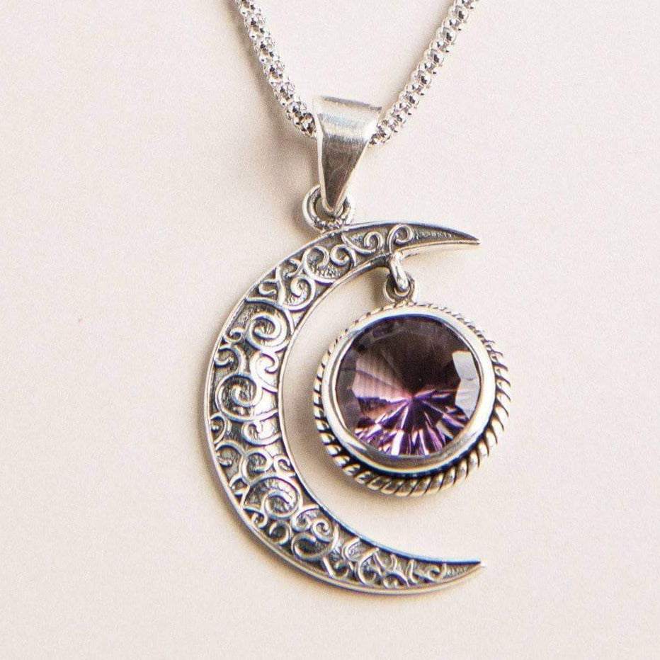 Sweet in silver and with all the lunar energy you need, these crystal moon pendants help to bring the power of femininity to the surface, connects you to your subconscious, and illuminates the darker corners of the self so that you can shine in all your radiance. The moon holds so many meanings - it controls the tides, the seasons, and the shape of many things. It is all about embracing change, passages of time, and nature herself. Pick from six different gemstones.