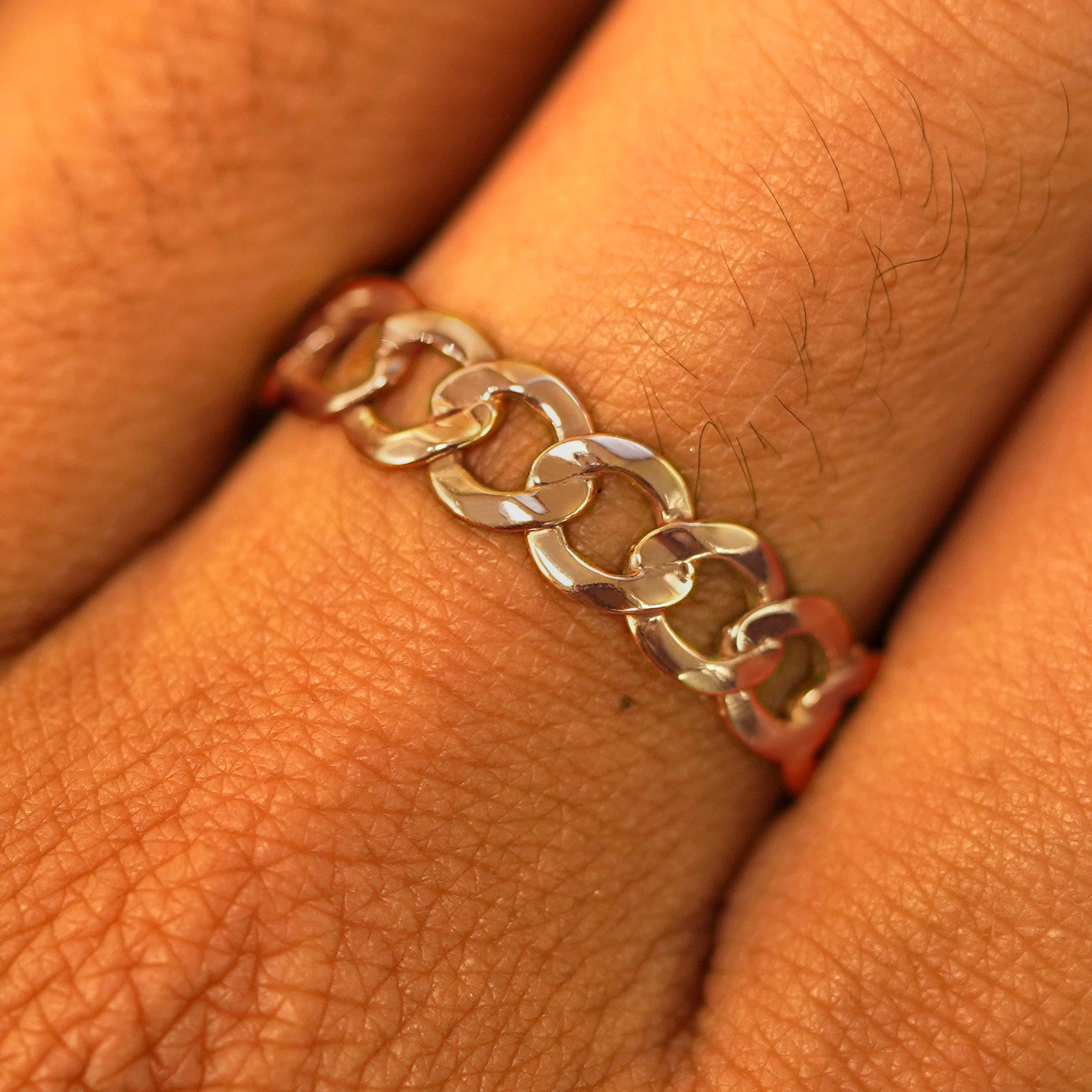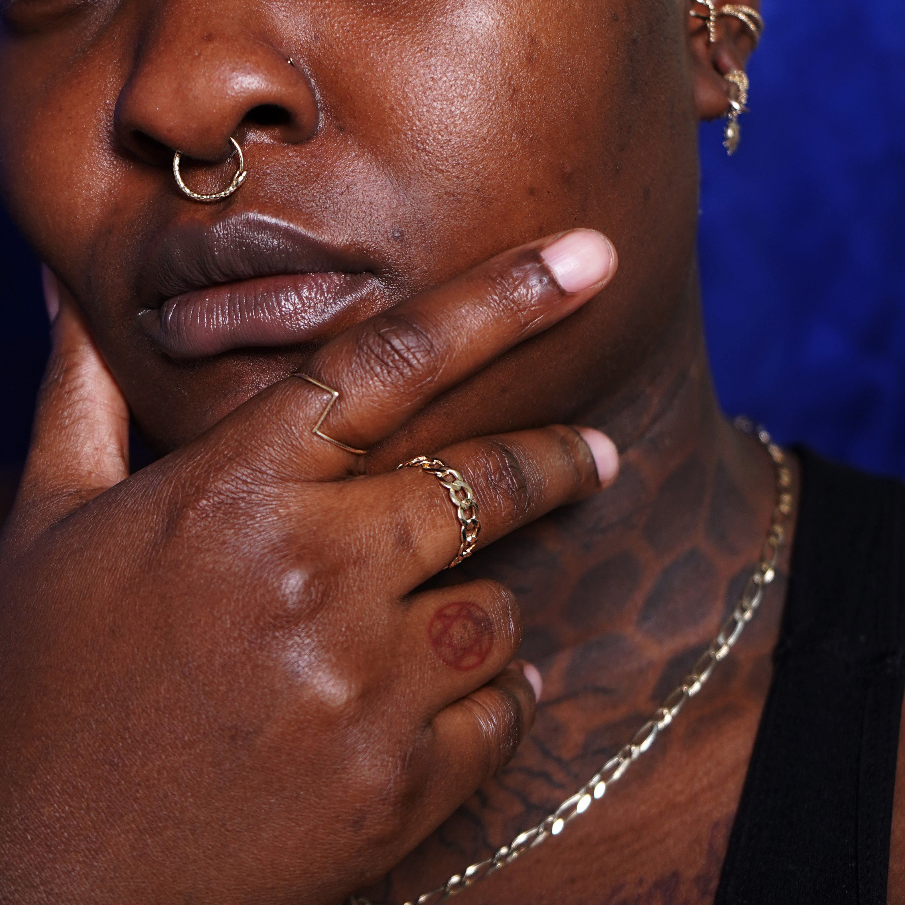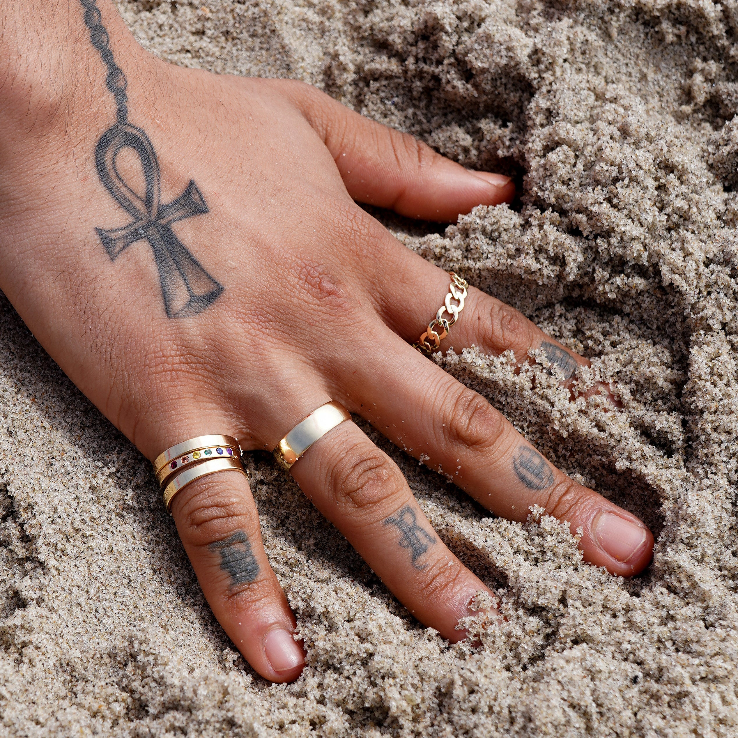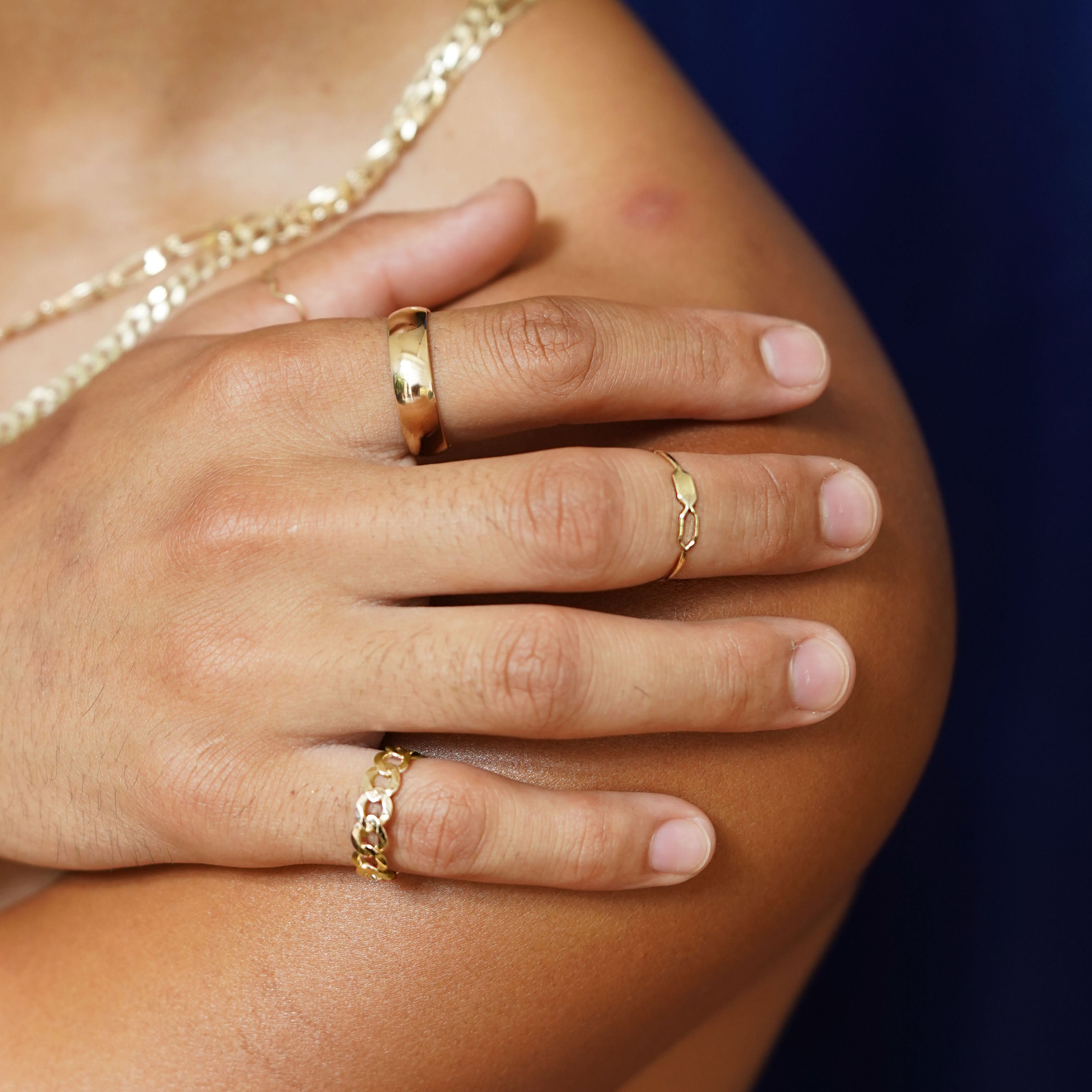 Substantial and strong, this Curb Ring is one solid gold statement accessory you won’t be able to live without. Wear this curb chain ring alone or pair it with our other sustainable gold rings for a look that’s uniquely you.
