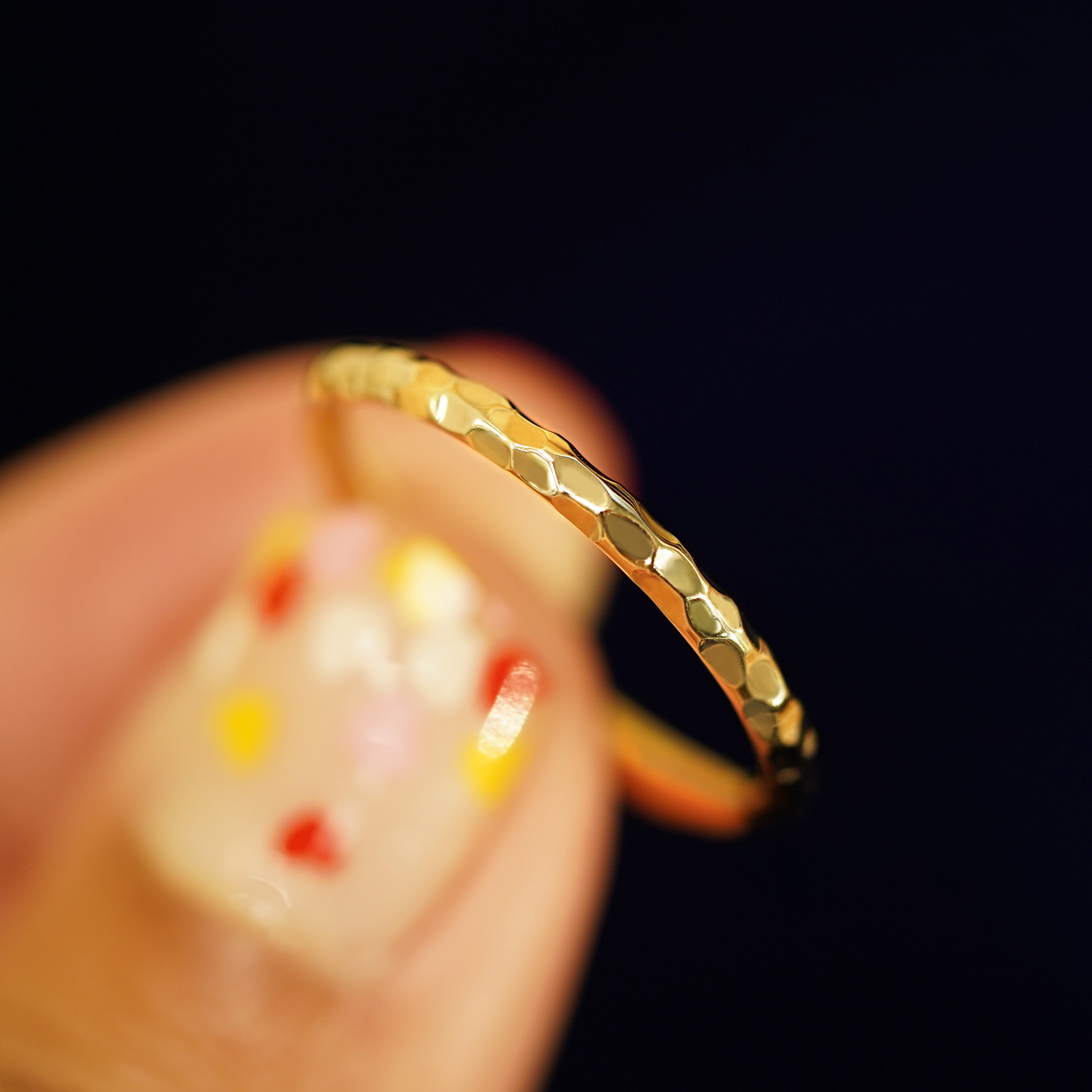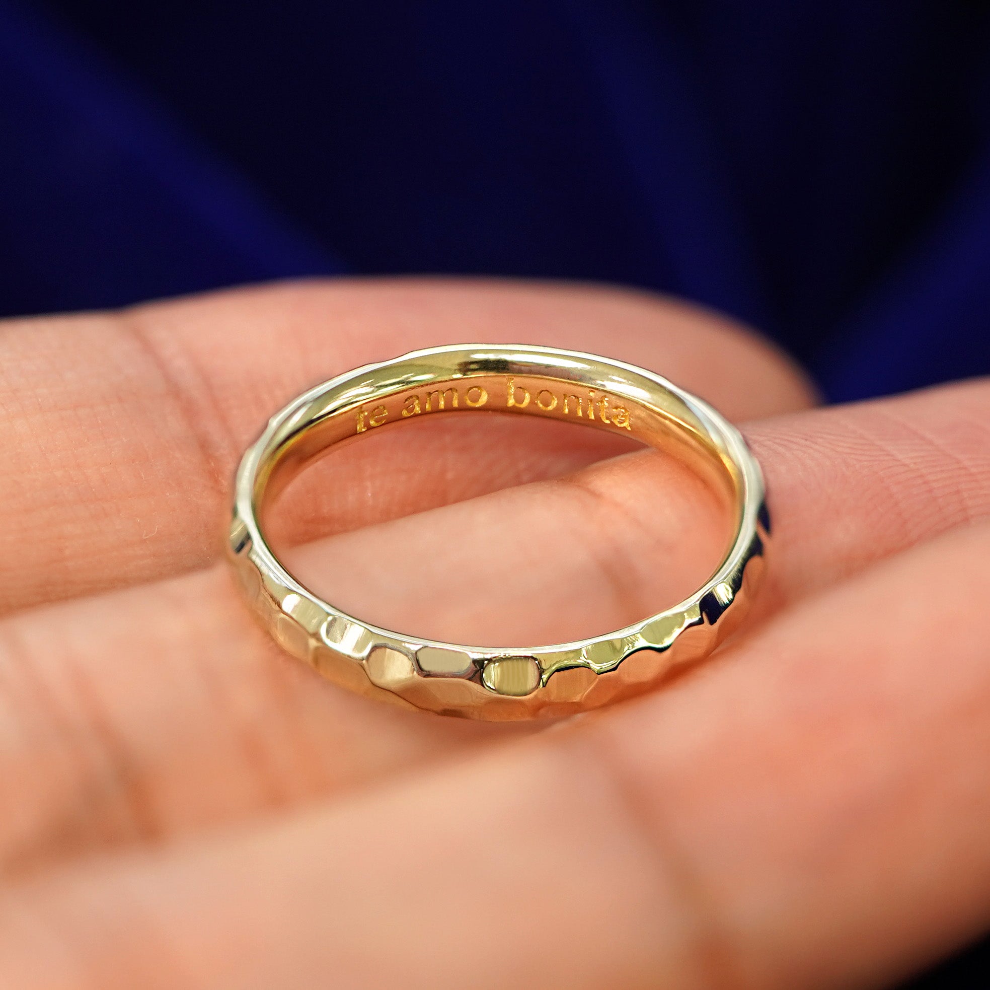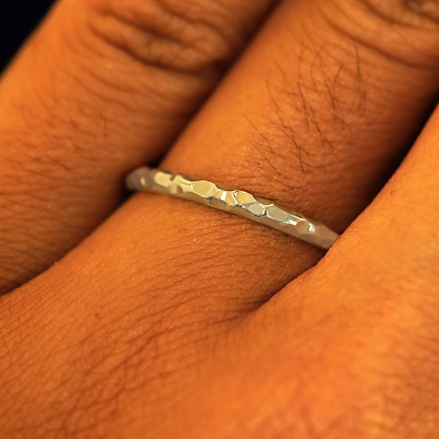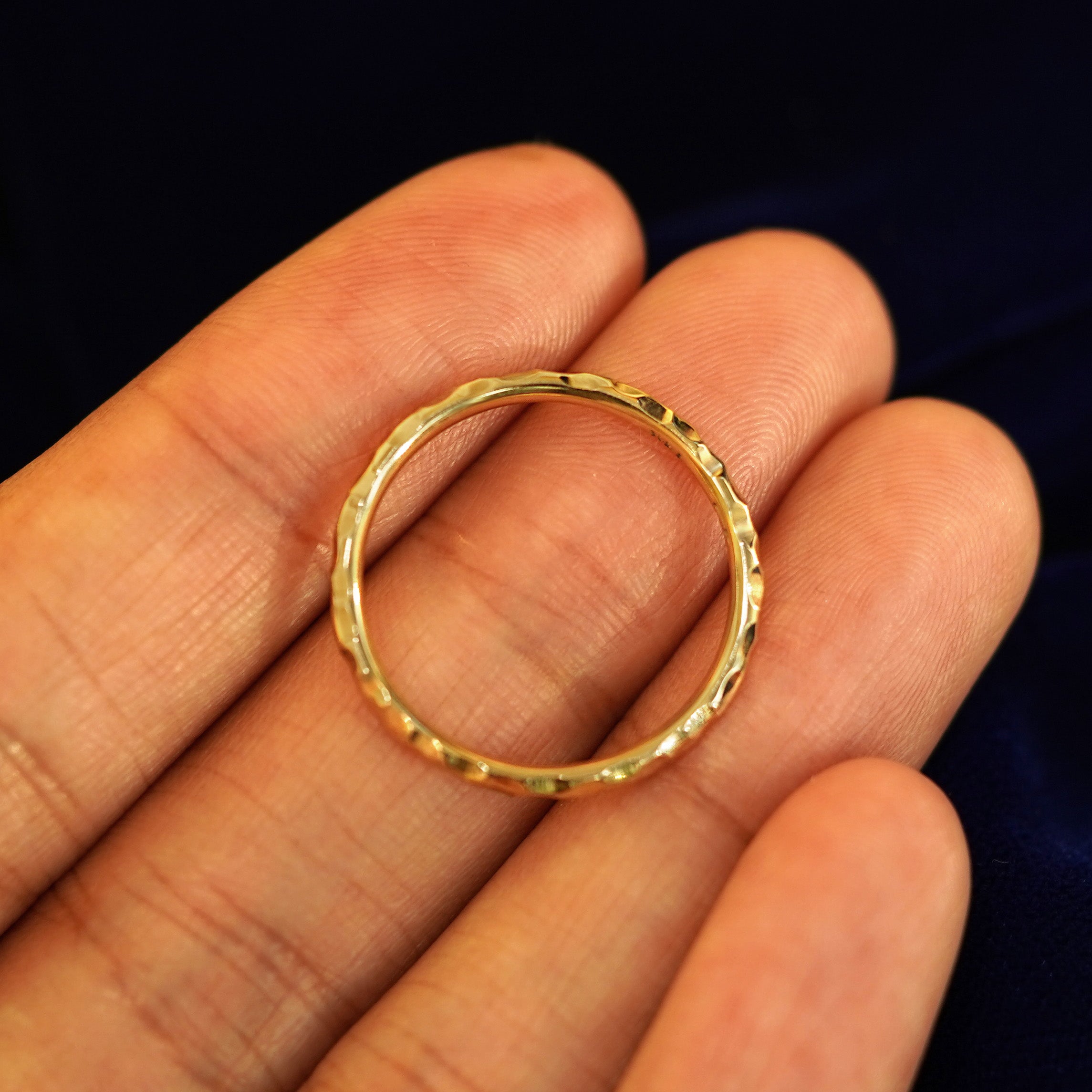 The handmade artistry of this curvy hammered gold band makes each wedding ring a one-of-a-kind work of art. The hammered pattern on the surface of this 14k solid gold ring makes it glimmer and glow and compliments the nature of gold beautifully. This androgynous ring is ready to be your wedding band or anything your heart desires.