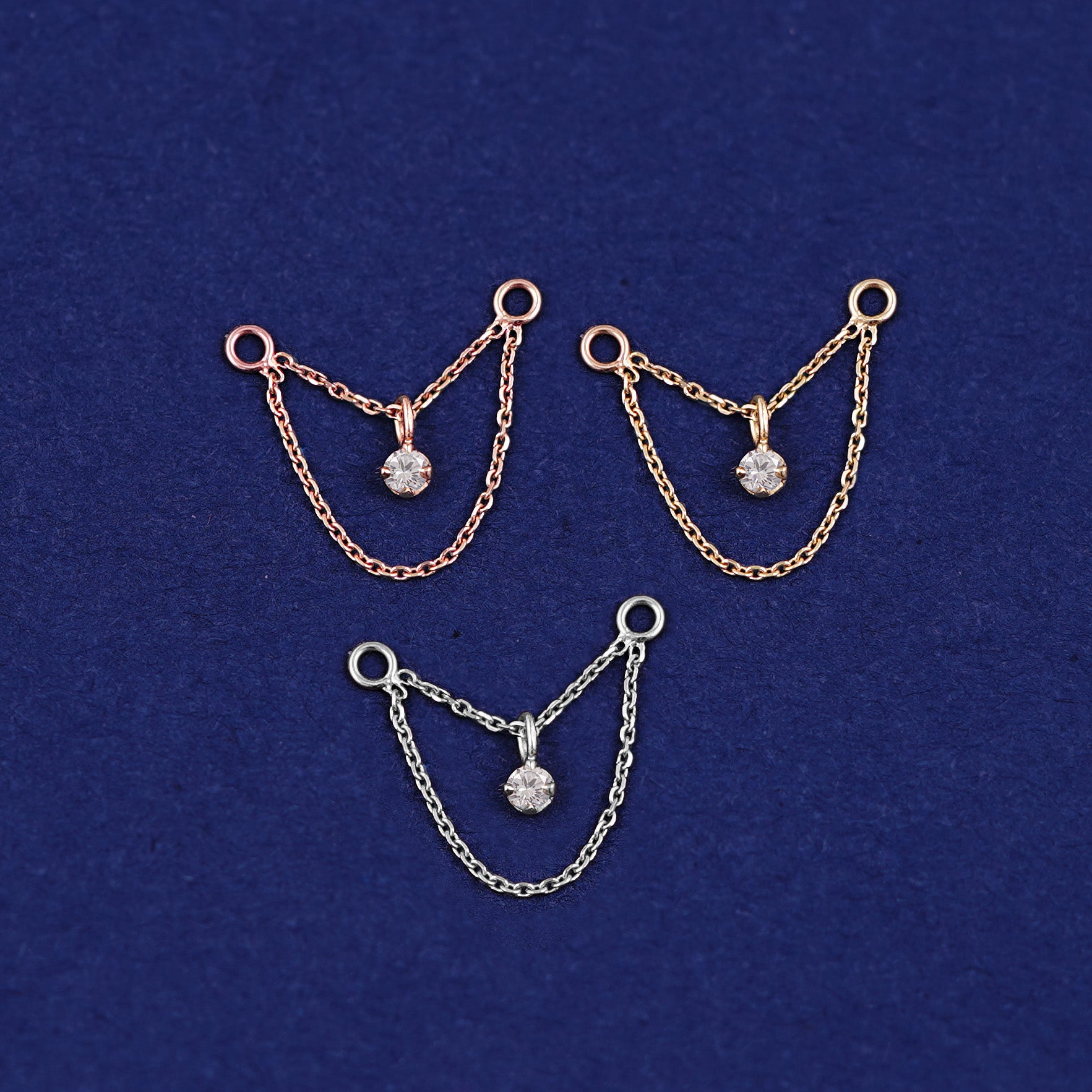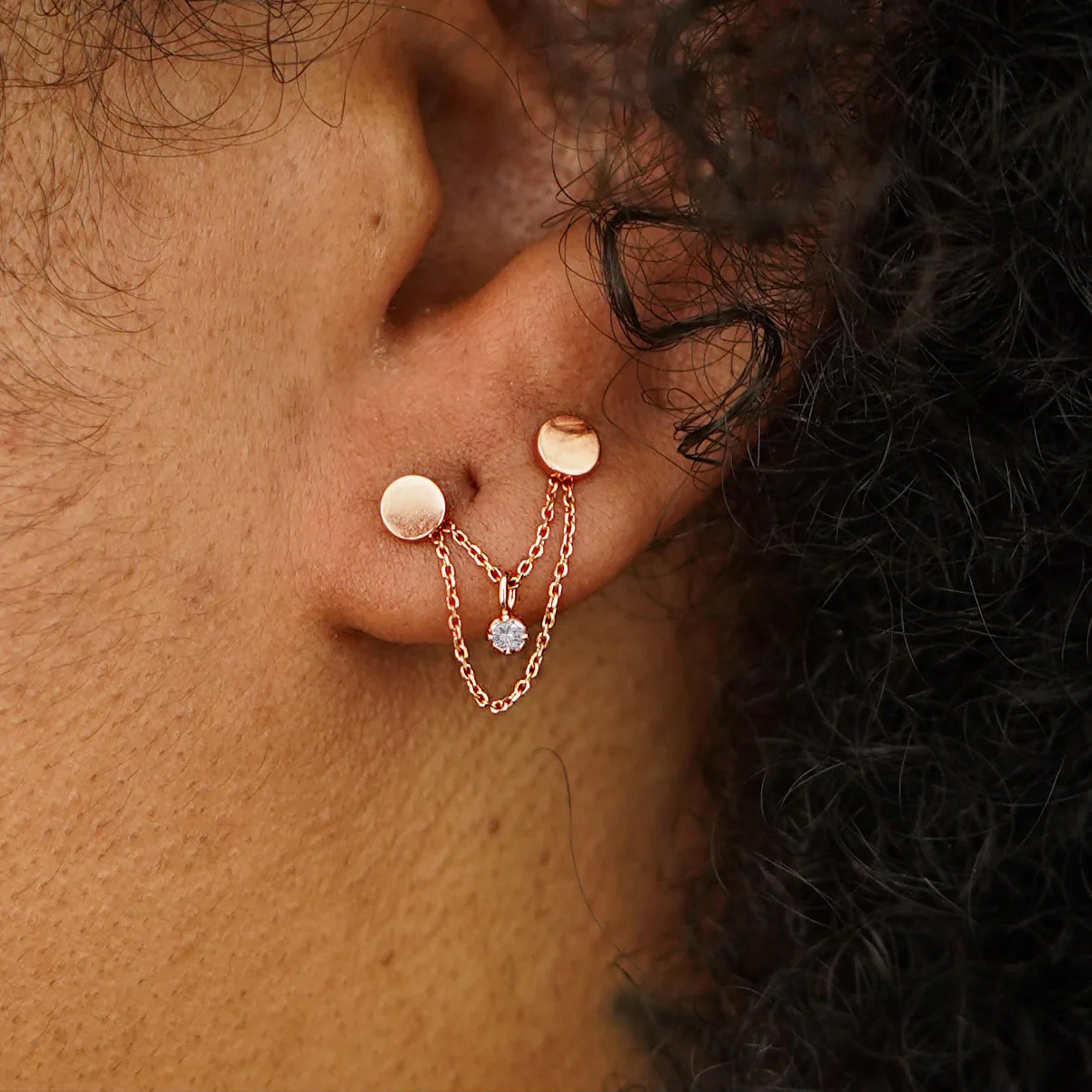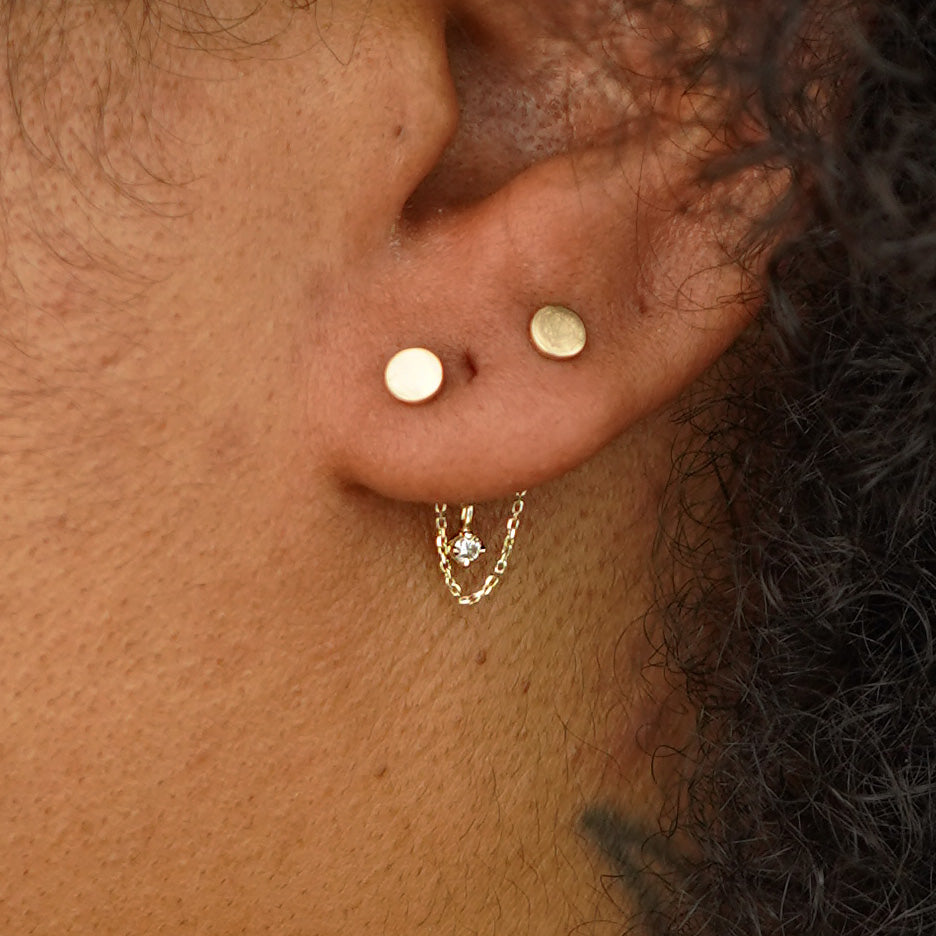 This cool double cable chain connector lets you switch up your look by adding extra sparkle to your 14k gold earrings. With five diamond colors to choose from, our diamond ear jackets are just perfect for you. Sustainable shine with peace of mind, our dainty cable chain connector is made with recycled 14k gold.