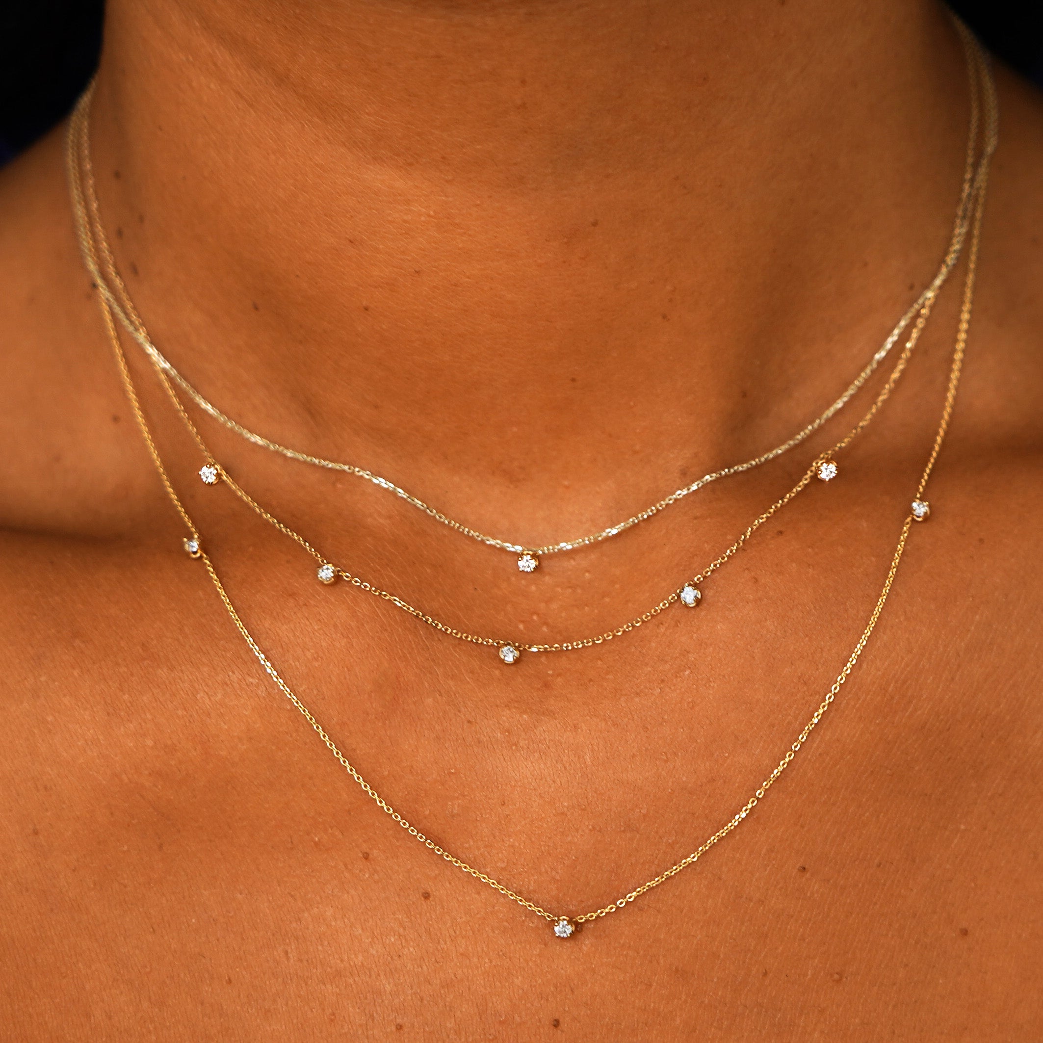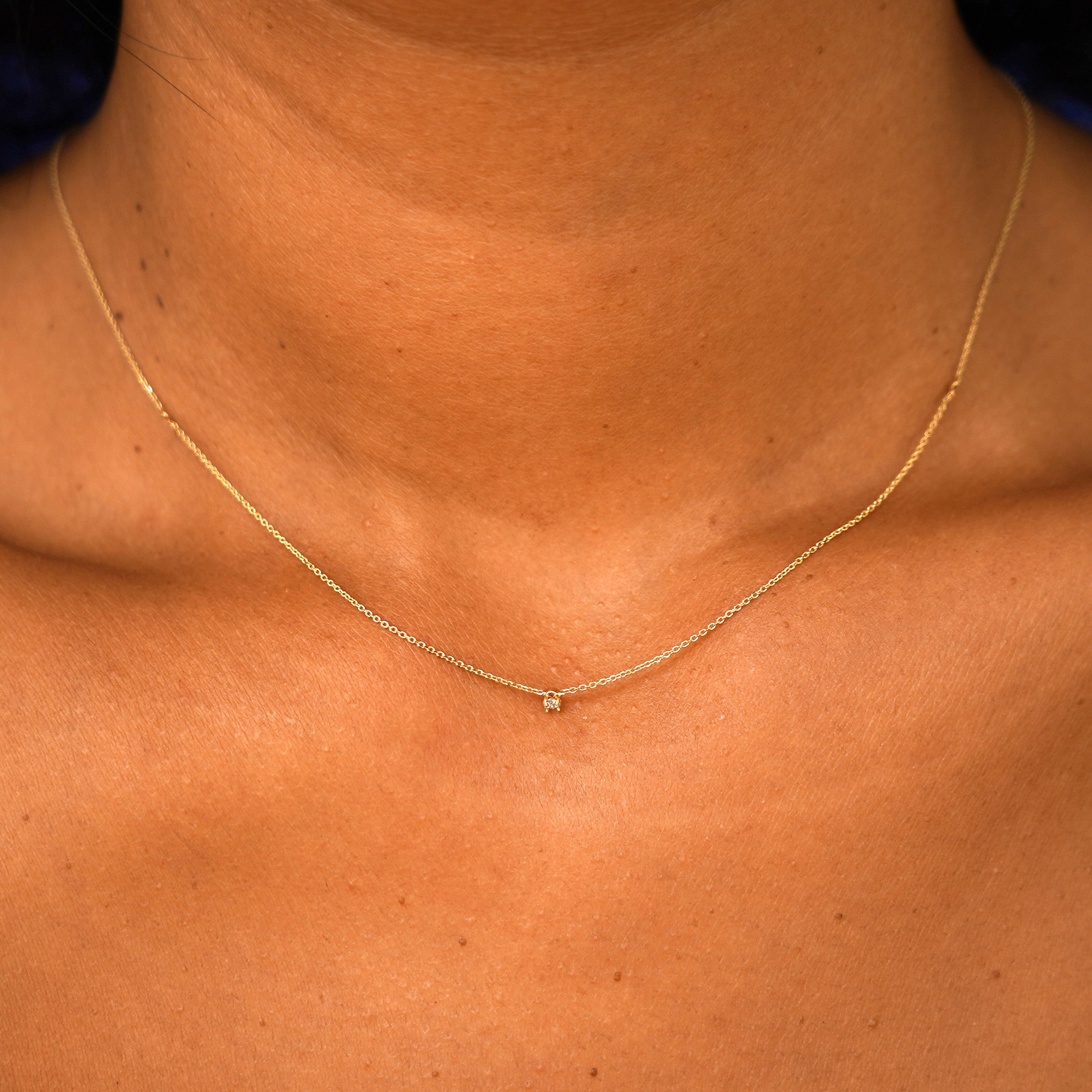 This beauty uses a 2mm diamond and 100% recycled, sustainable gold so you can wear your solitaire necklace without worry. From late nights on the dance floor to caturdays on the couch, our chic diamond jewelry holds up effortlessly. Wear this Cable Chain necklace alone or with our other gemstone necklaces for a colorful layered look. Secures with a lobster lock and easy-to-grip Automic Gold AU plate.