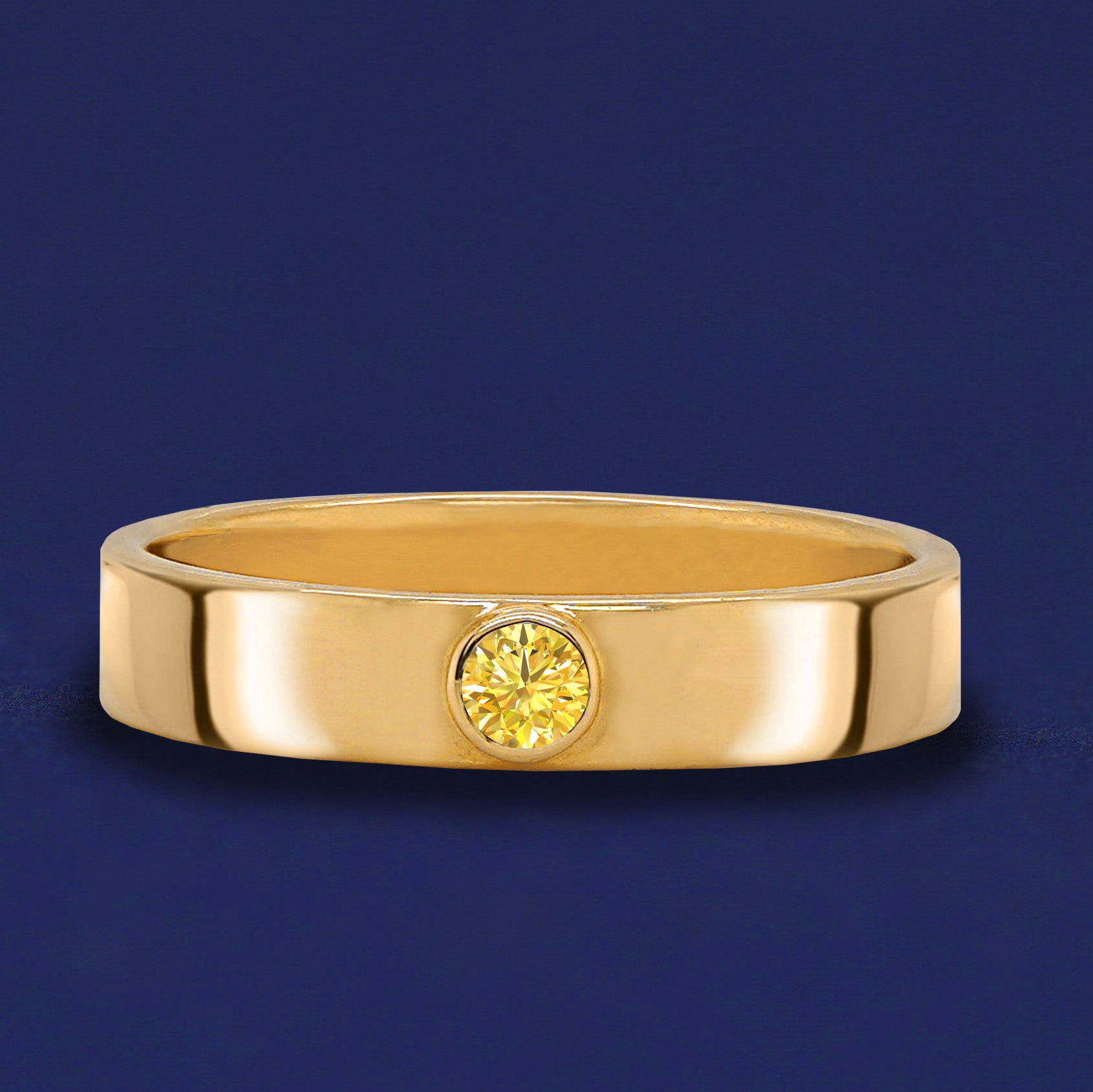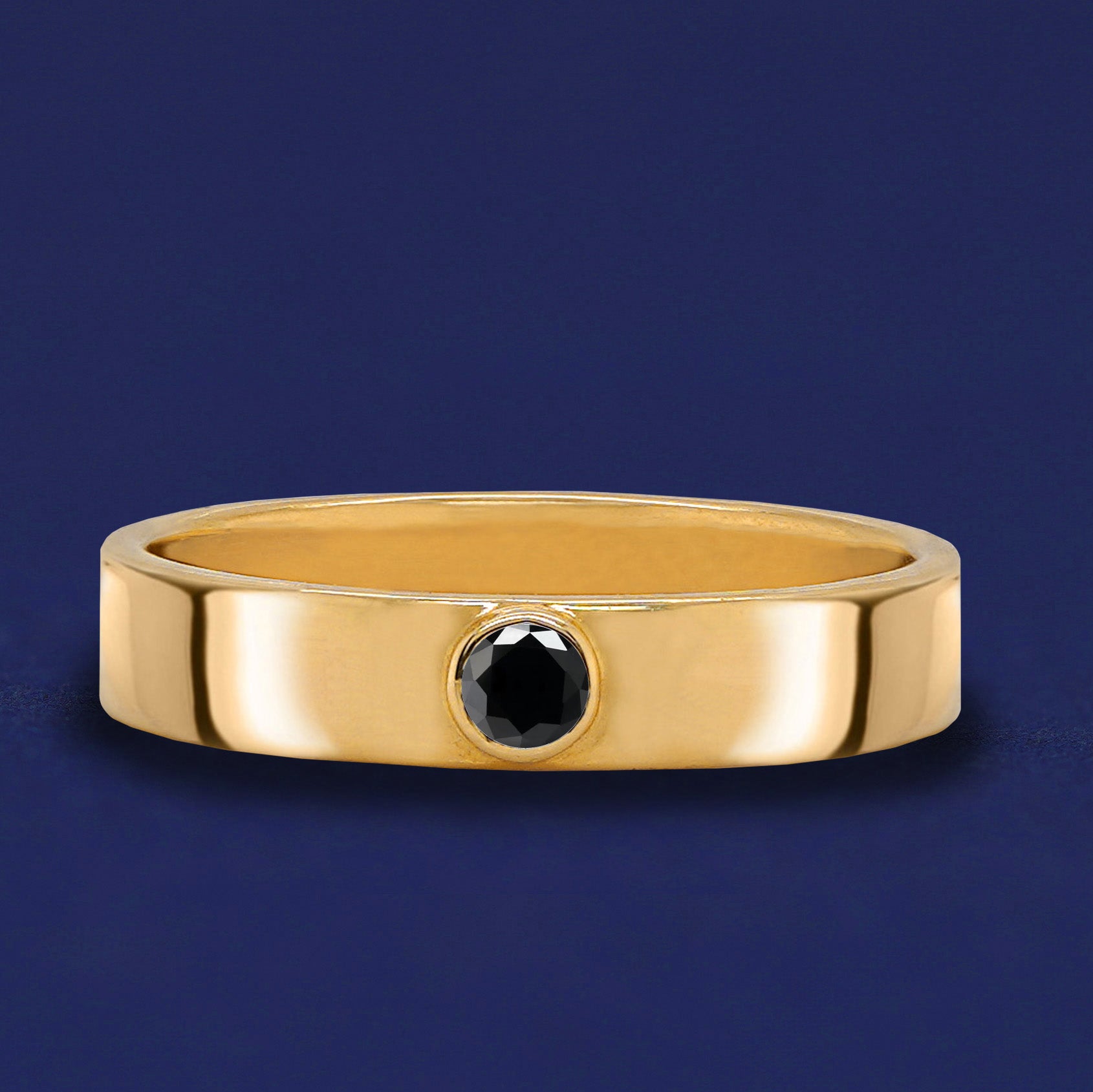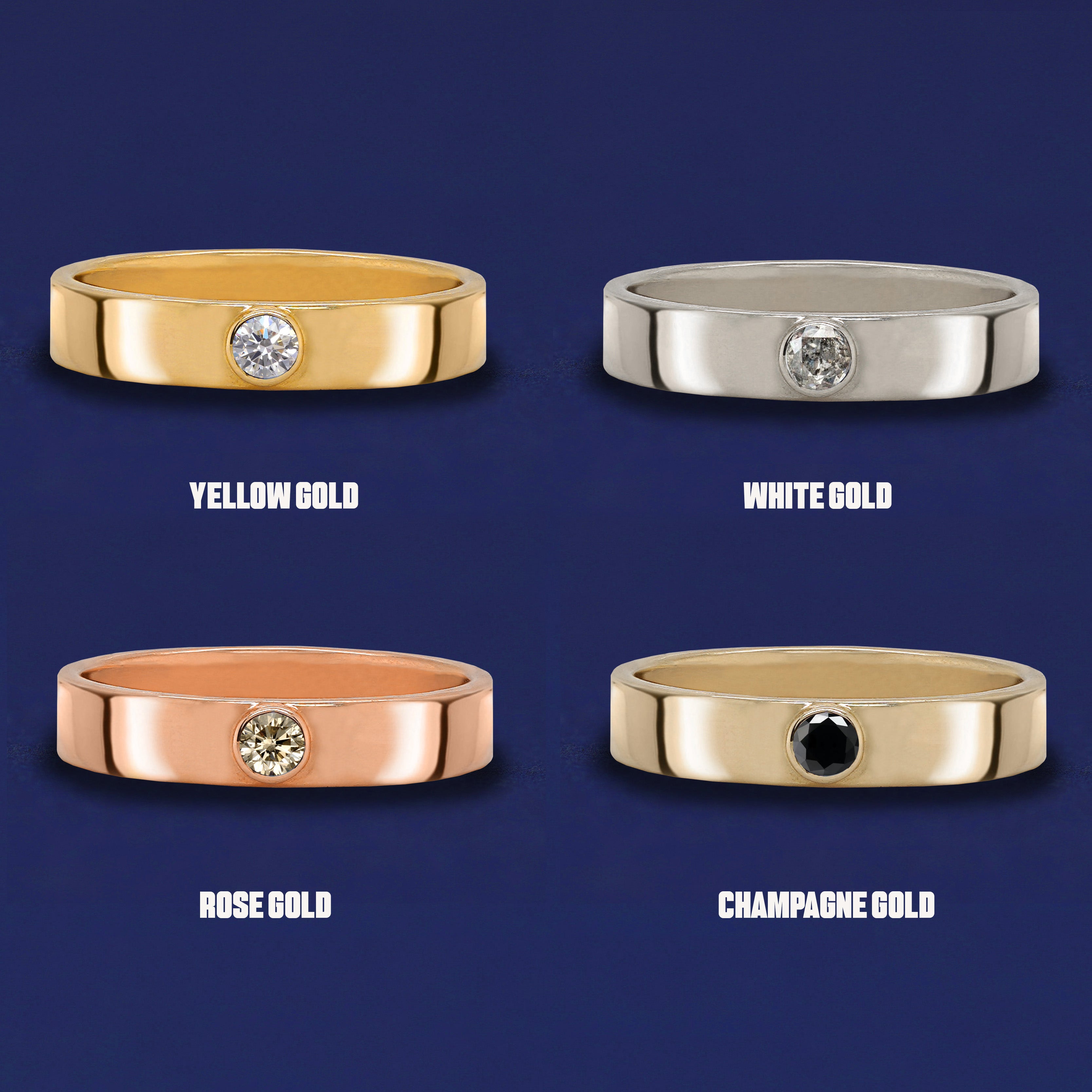 The perfect diamond solitaire ring for everyone, this 14 karat gold band is a fully customizable jewelry piece. With this sturdy and stunning industrial ring, you can gift your masc, fem, or androgynous partner with the perfect clear or colored diamond statement piece. Or give it to yourself! This solid gold investment is for everyone, every day.