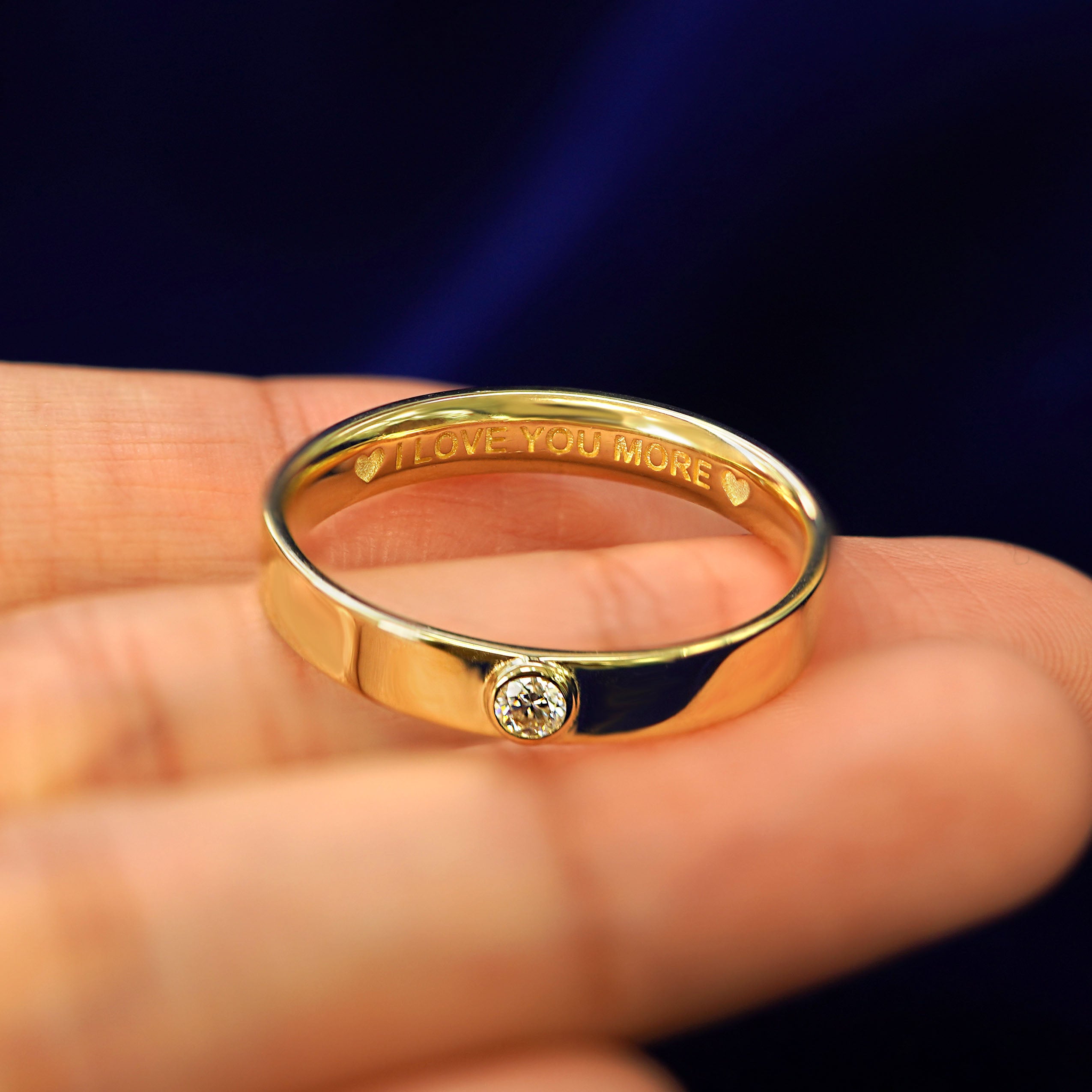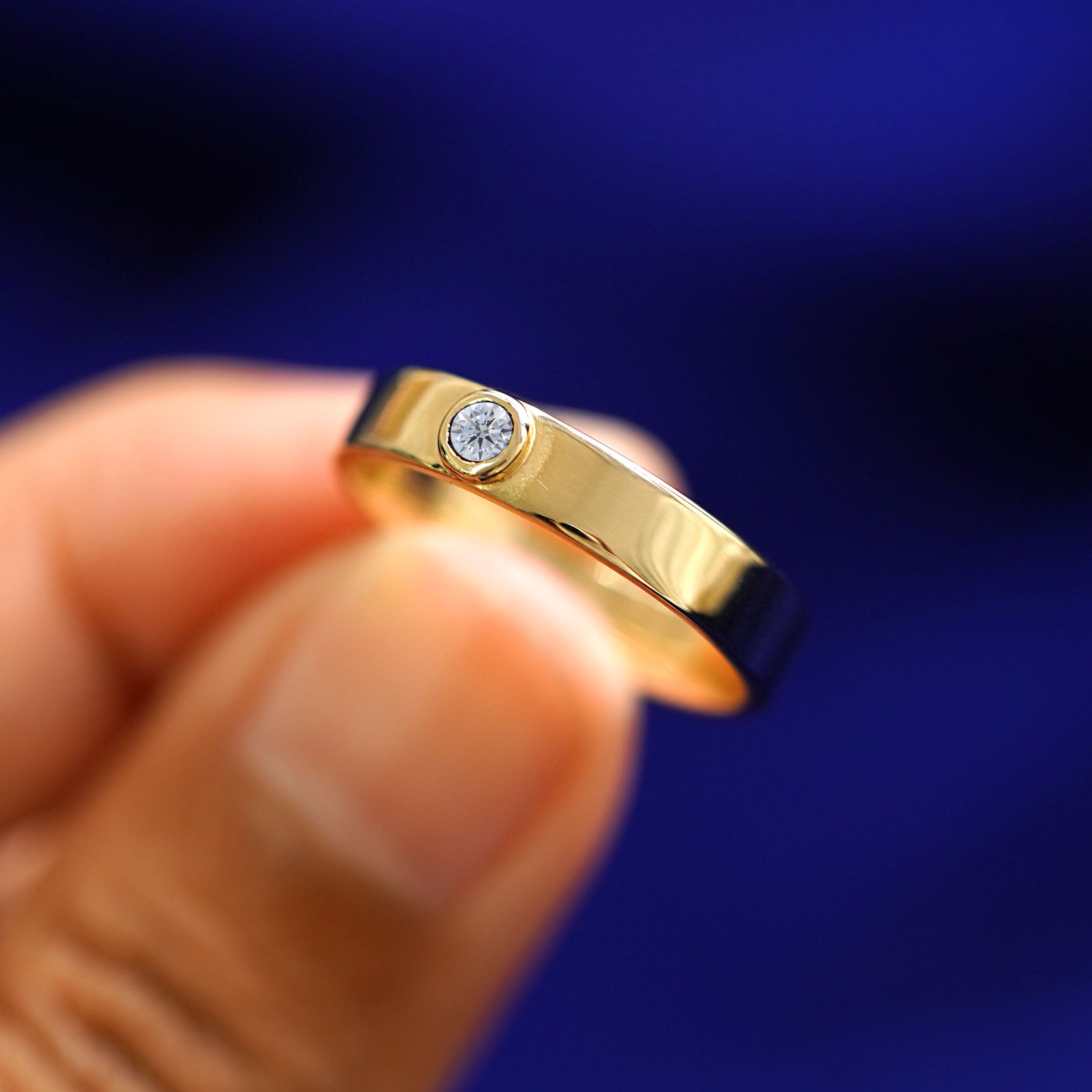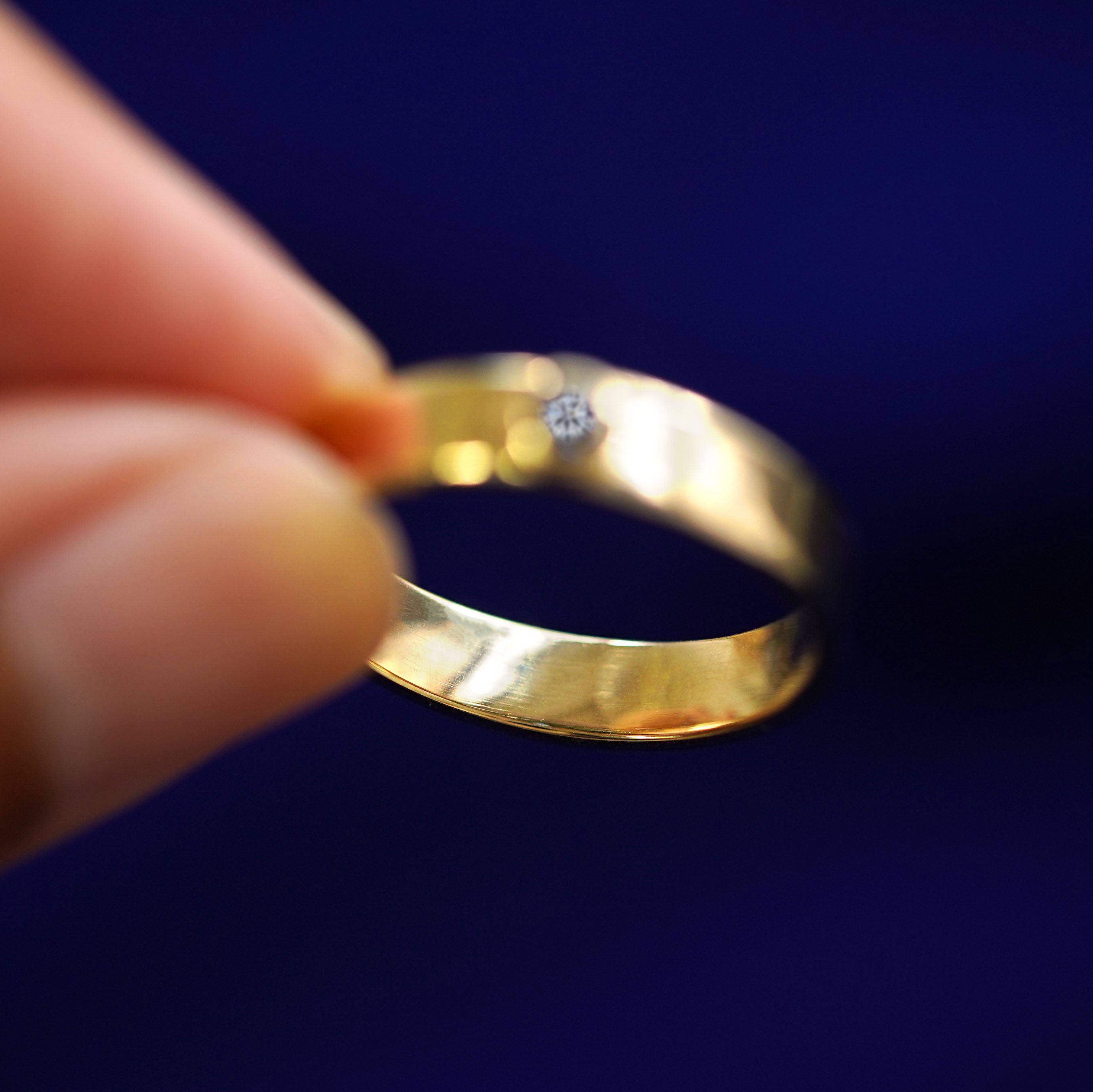 The perfect diamond solitaire ring for everyone, this 14 karat gold band is a fully customizable jewelry piece. With this sturdy and stunning industrial ring, you can gift your masc, fem, or androgynous partner with the perfect clear or colored diamond statement piece. Or give it to yourself! This solid gold investment is for everyone, every day.