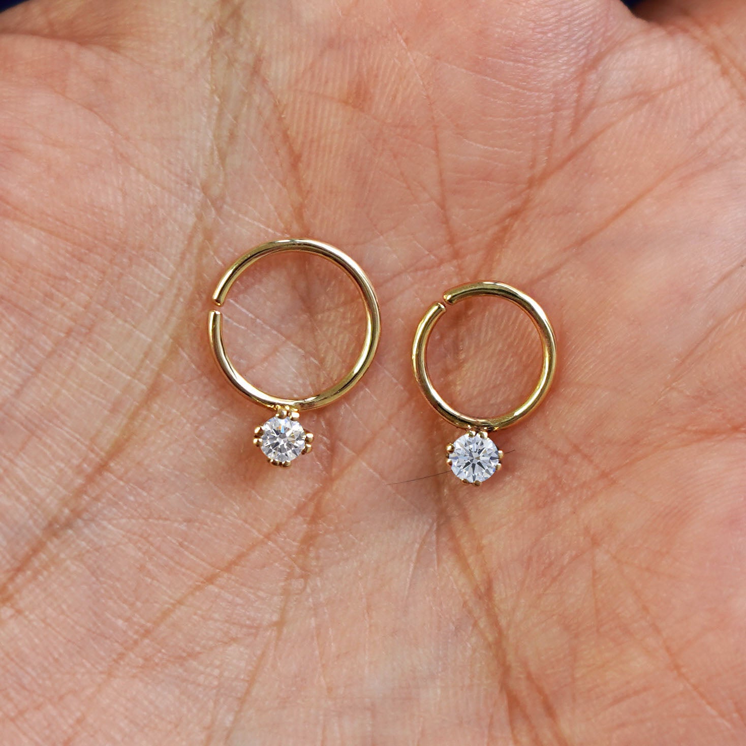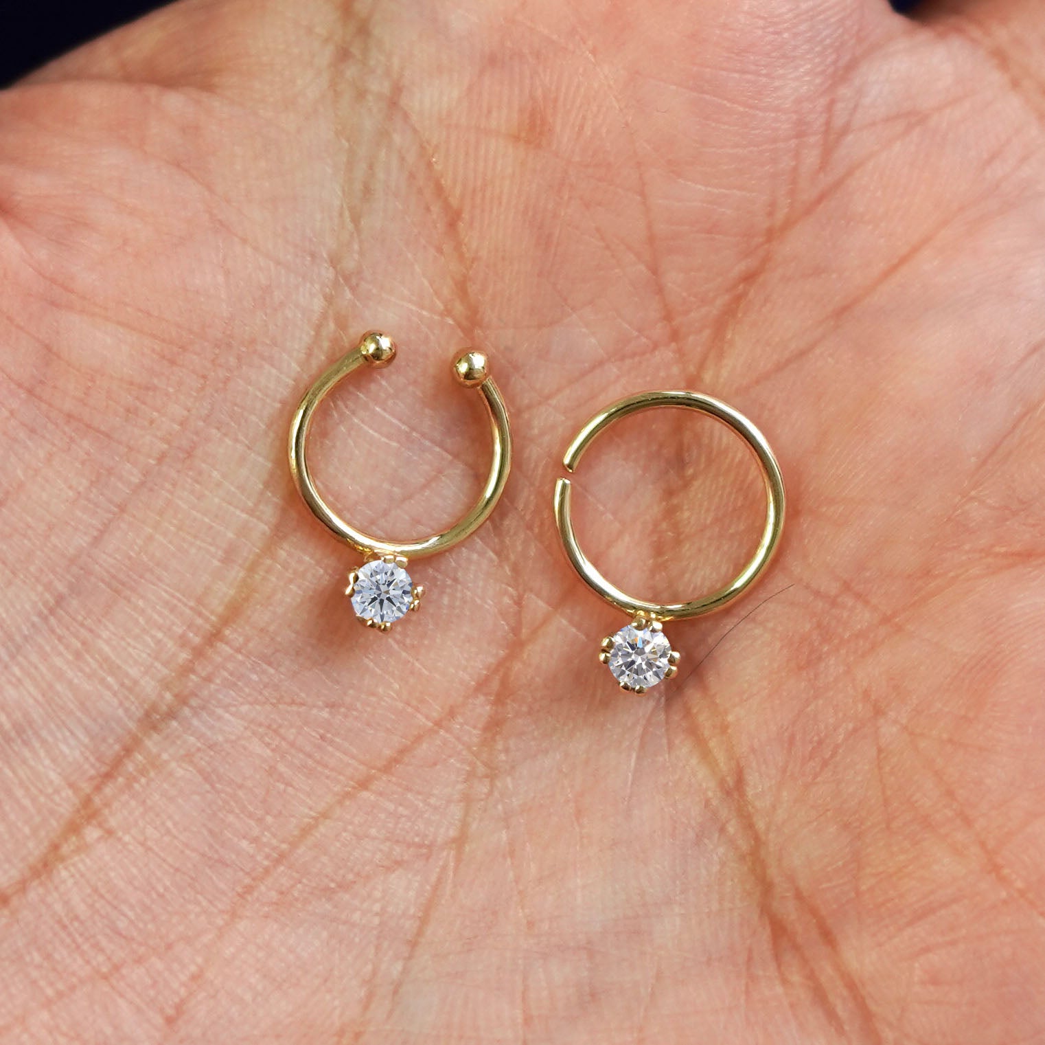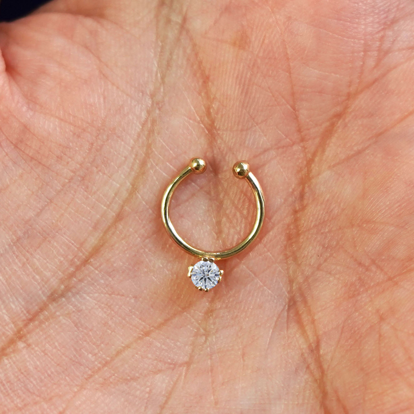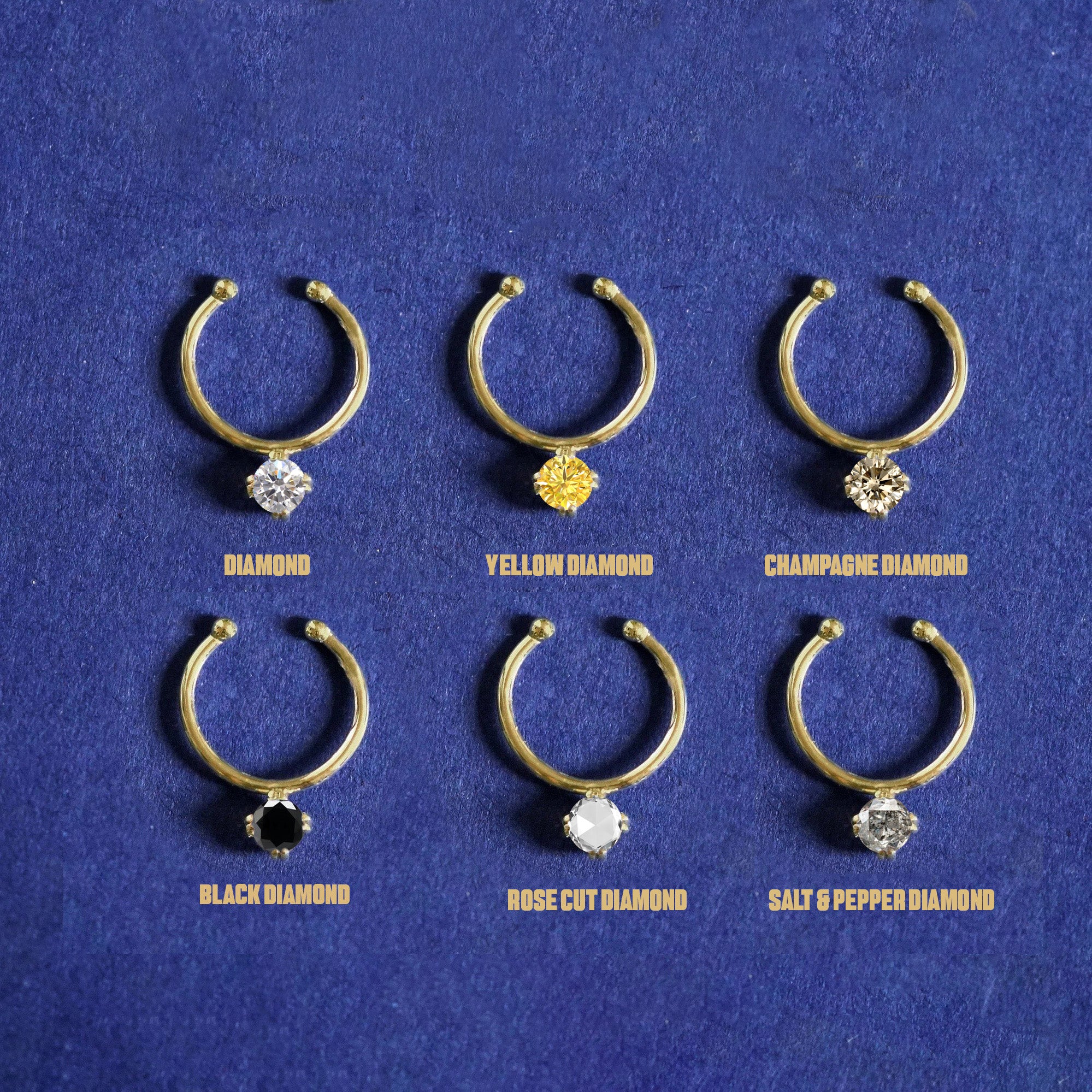 Add a little sparkle to with our diamond body jewelry. With both non-pierced and pierced options, this delicate 14k solid gold beauty is perfect for everyone. Whether you need a faux septum ring or can rock the real thing, we’ve got you covered!