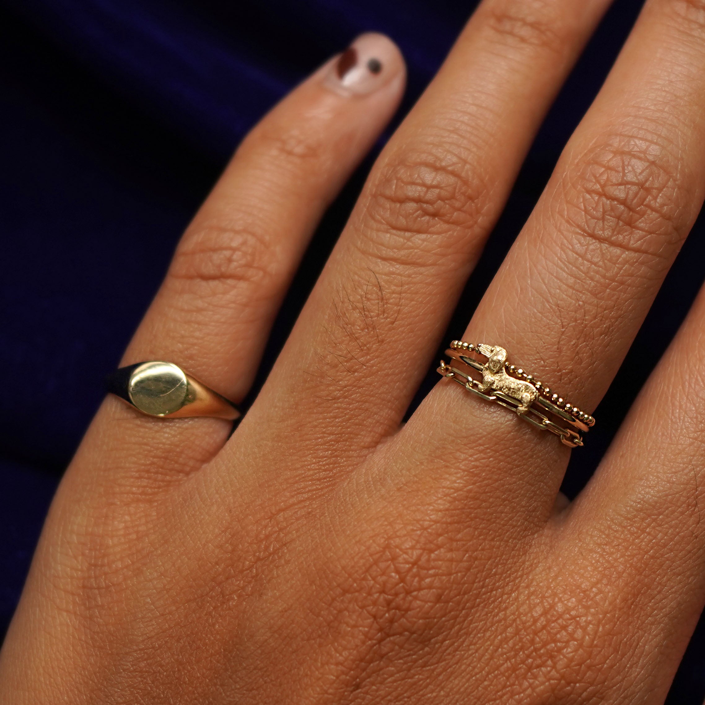 We know you love her, and now you can have a Luna of your own! Our favorite little wiener dog was the perfect model for our newest collection. This dachshund ring is crafted with incredible detail in solid 14k gold.