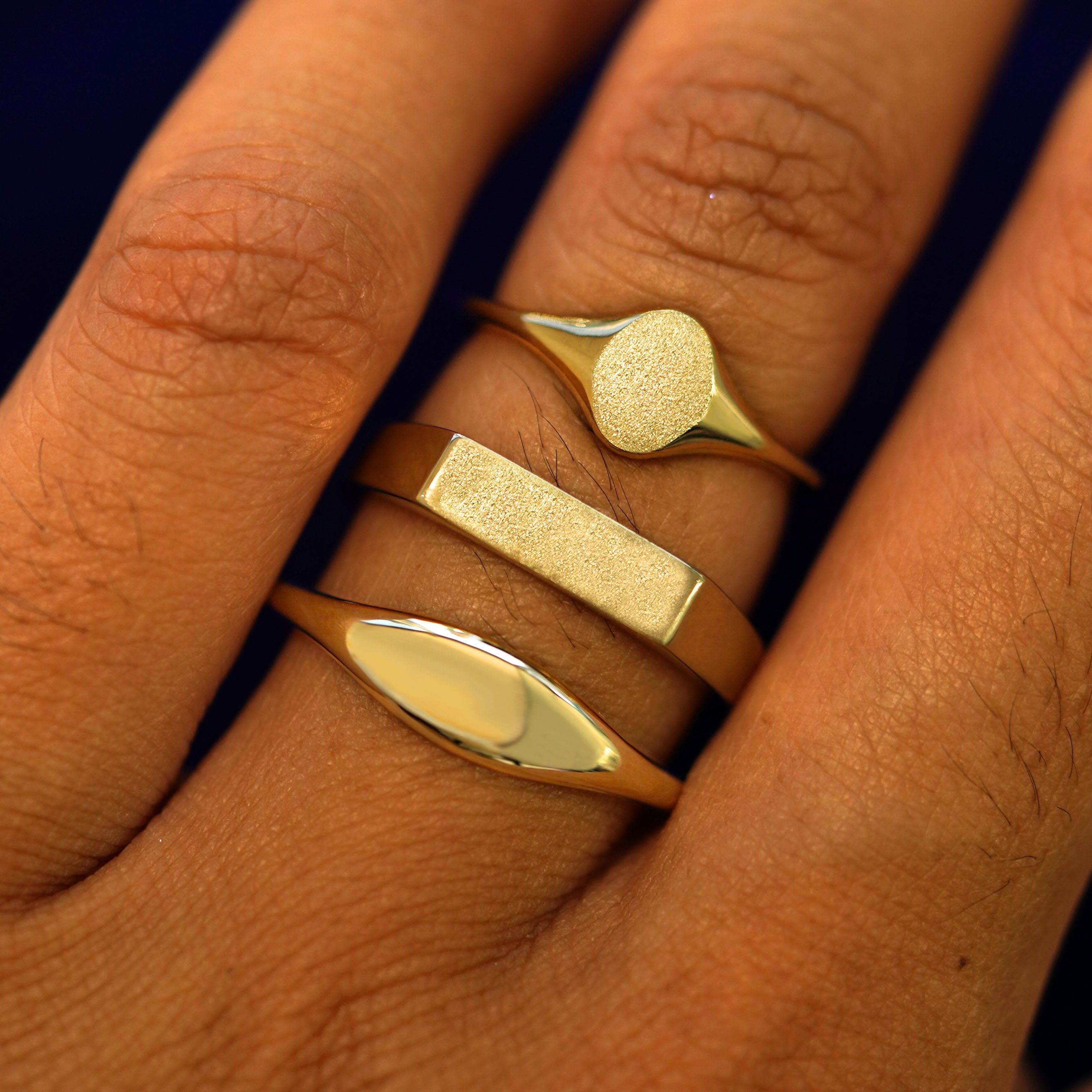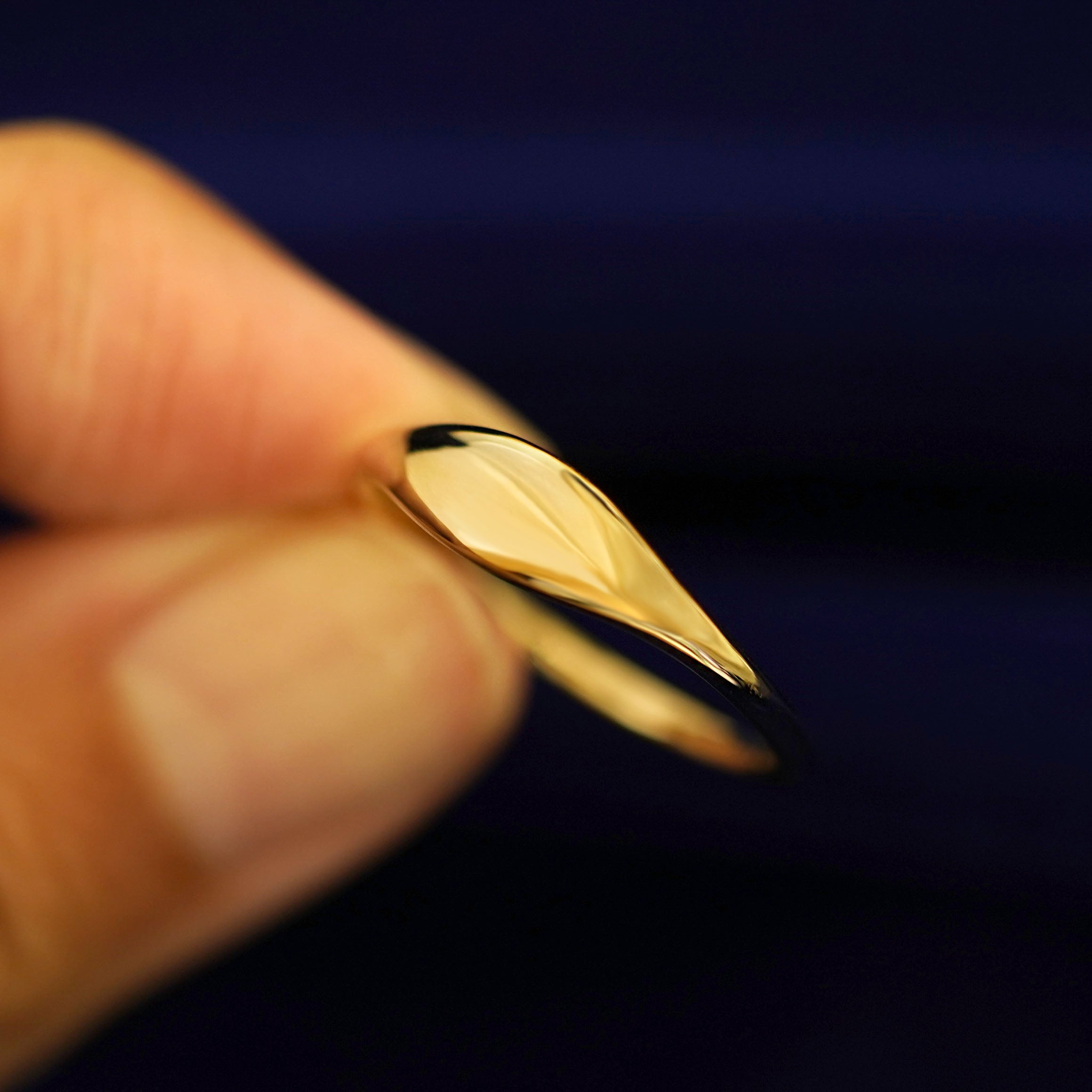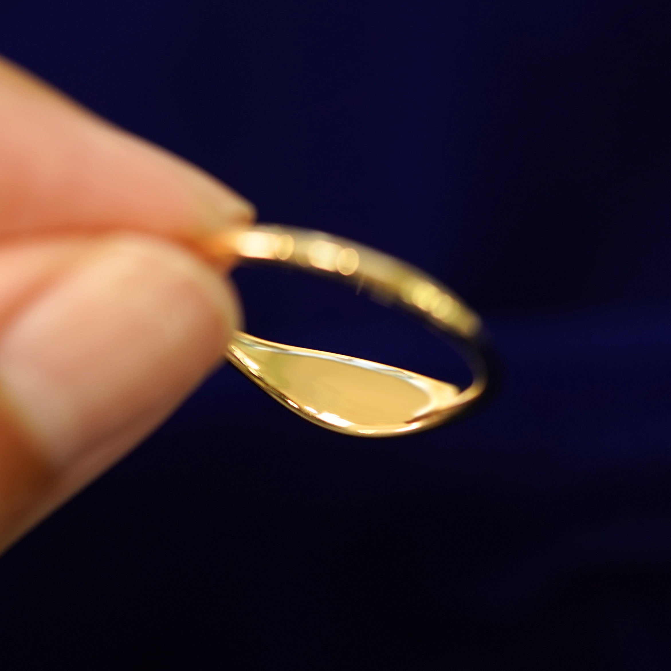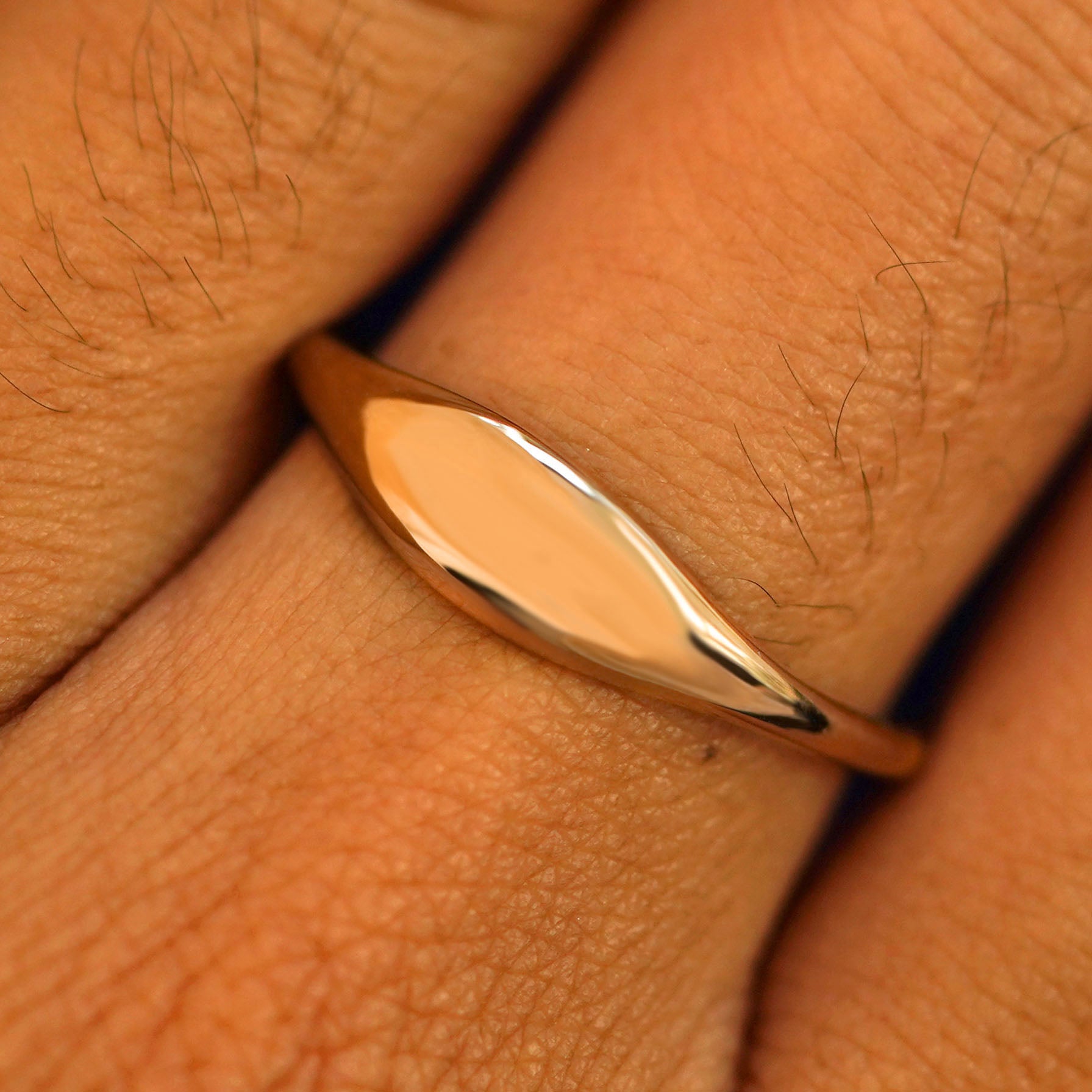 This unique take on the classic Signet design has a sleek and elegant silhouette for the perfect signature style staple. The top of this ring features an elongated puffy band that is completely solid and glides on the finger. Crafted from solid 14k gold or 950 platinum, this ring tapers down to a thinner yet sturdy band so it’s comfortable when you close your fist and durable enough to wear every day.
