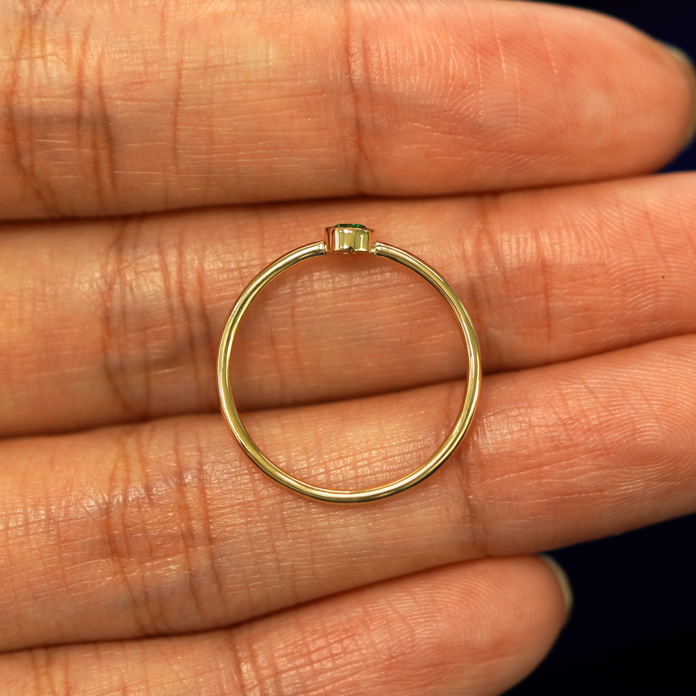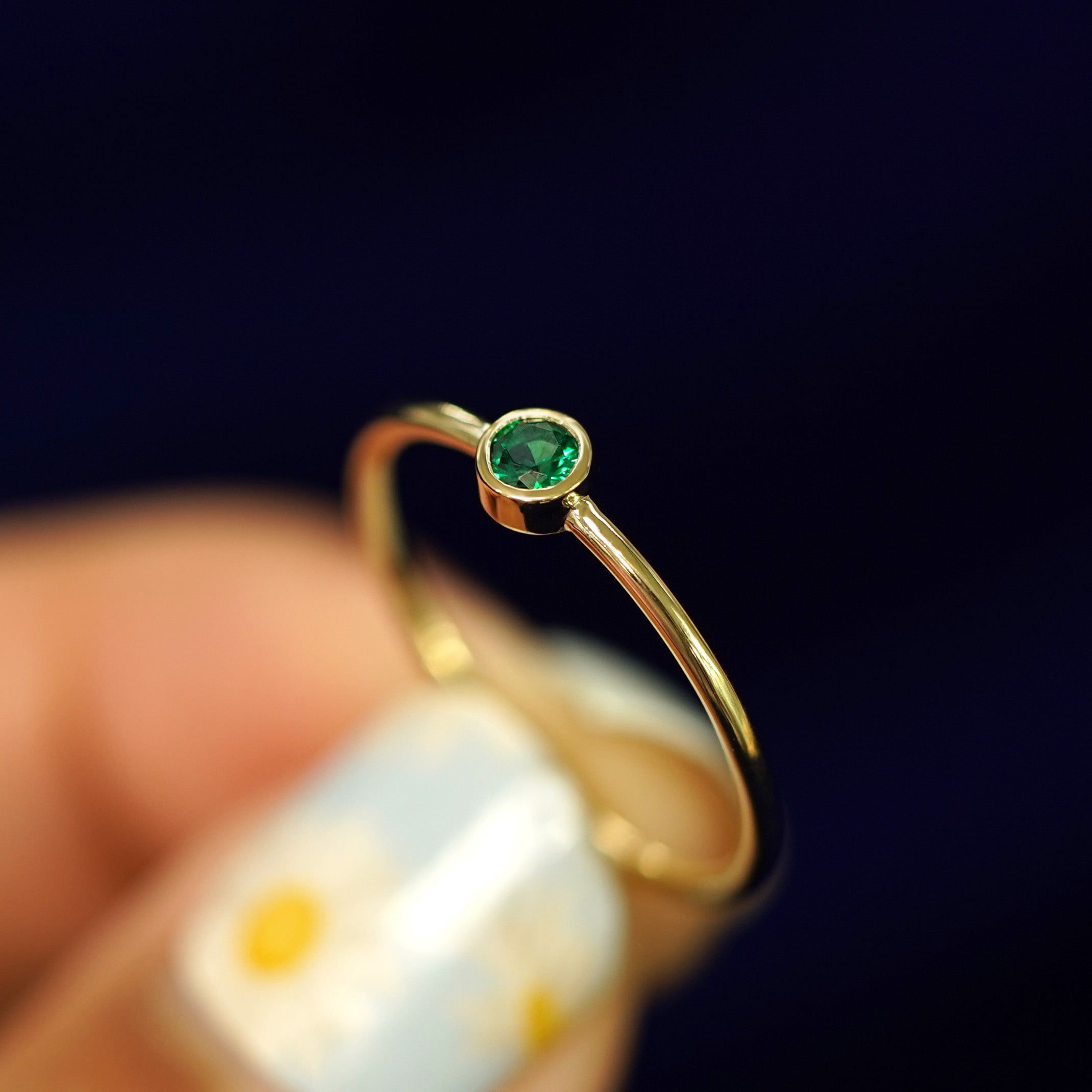 This gorgeous Emerald gemstone ring will make everyone’s favorite color green. With a color so prominent in nature, this May birthstone ring is the perfect embodiment of the spring season. A sustainable gold ring designed to be minimalist style personified. Whether you’re declaring your love with an engagement ring that shares your values, or gifting a little glitter to that special someone just for fun, this ring is a solid gold investment.