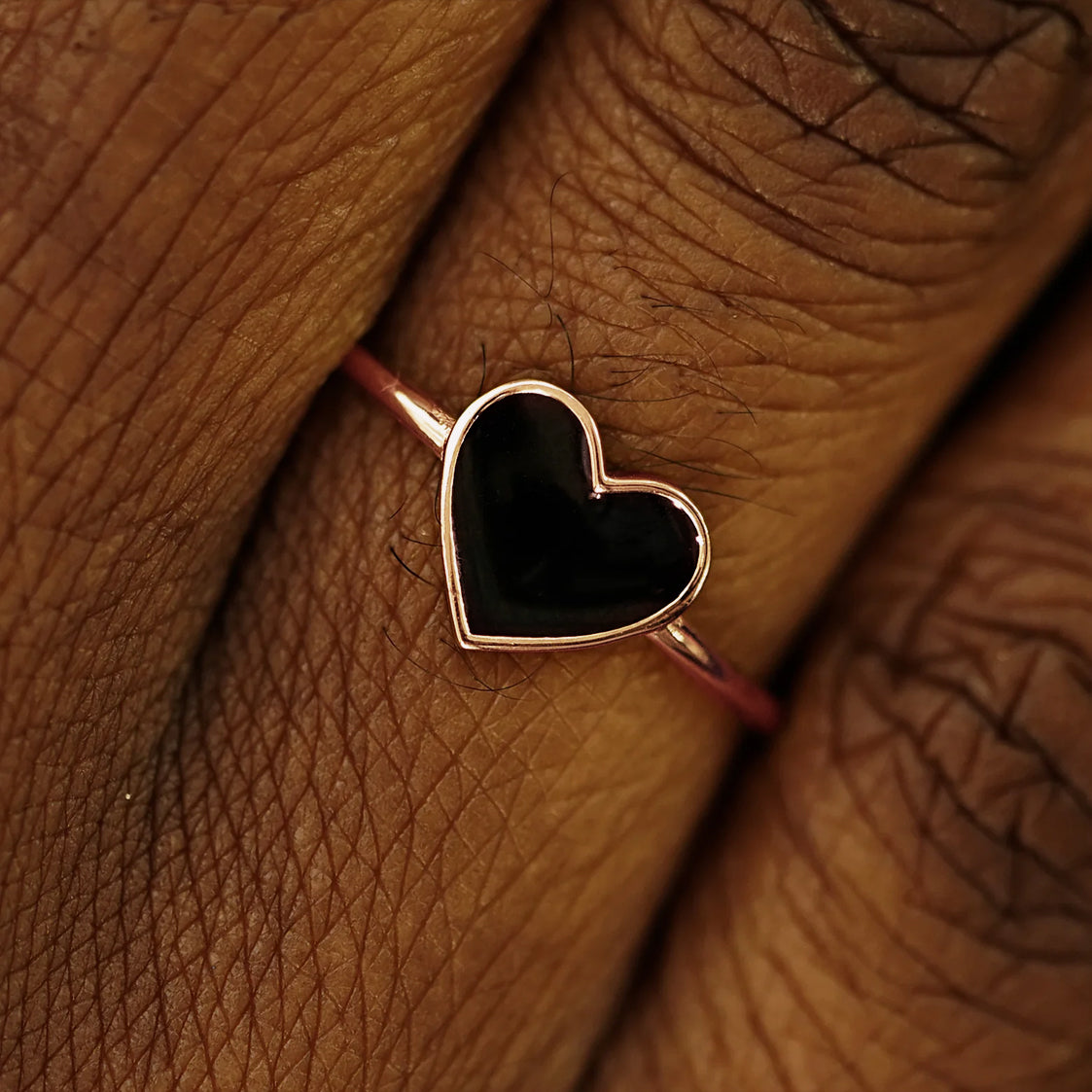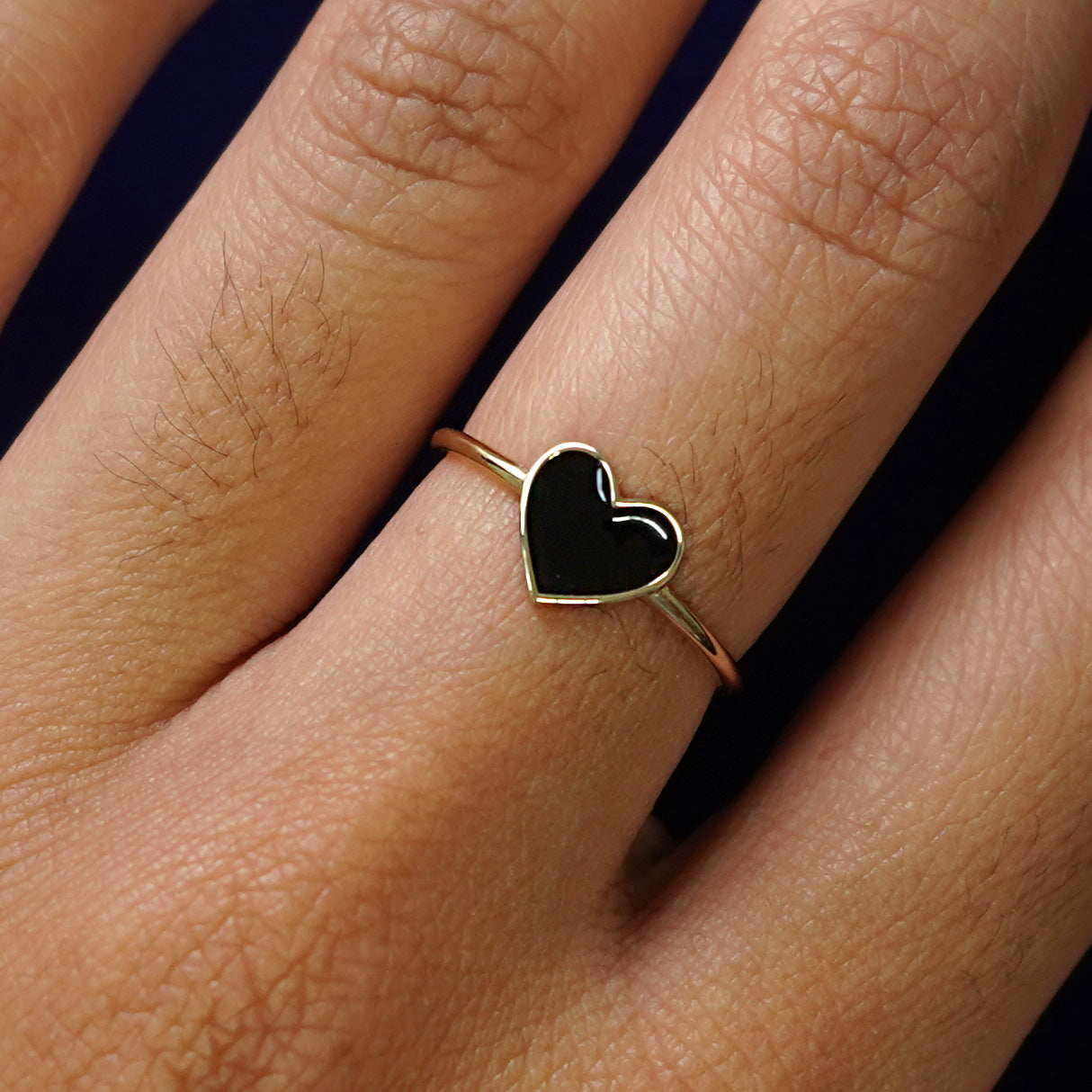 Gorgeous, glossy, and glamorous, our new enamel heart ring is everything you need to elevate your look. This solid 14k gold or 950 platinum ring is perfect alone, or get one in each color for the perfect ring stack. Our enamel hearts are waterproof and scratch resistant, so you can wear this durable beauty all day, every day.