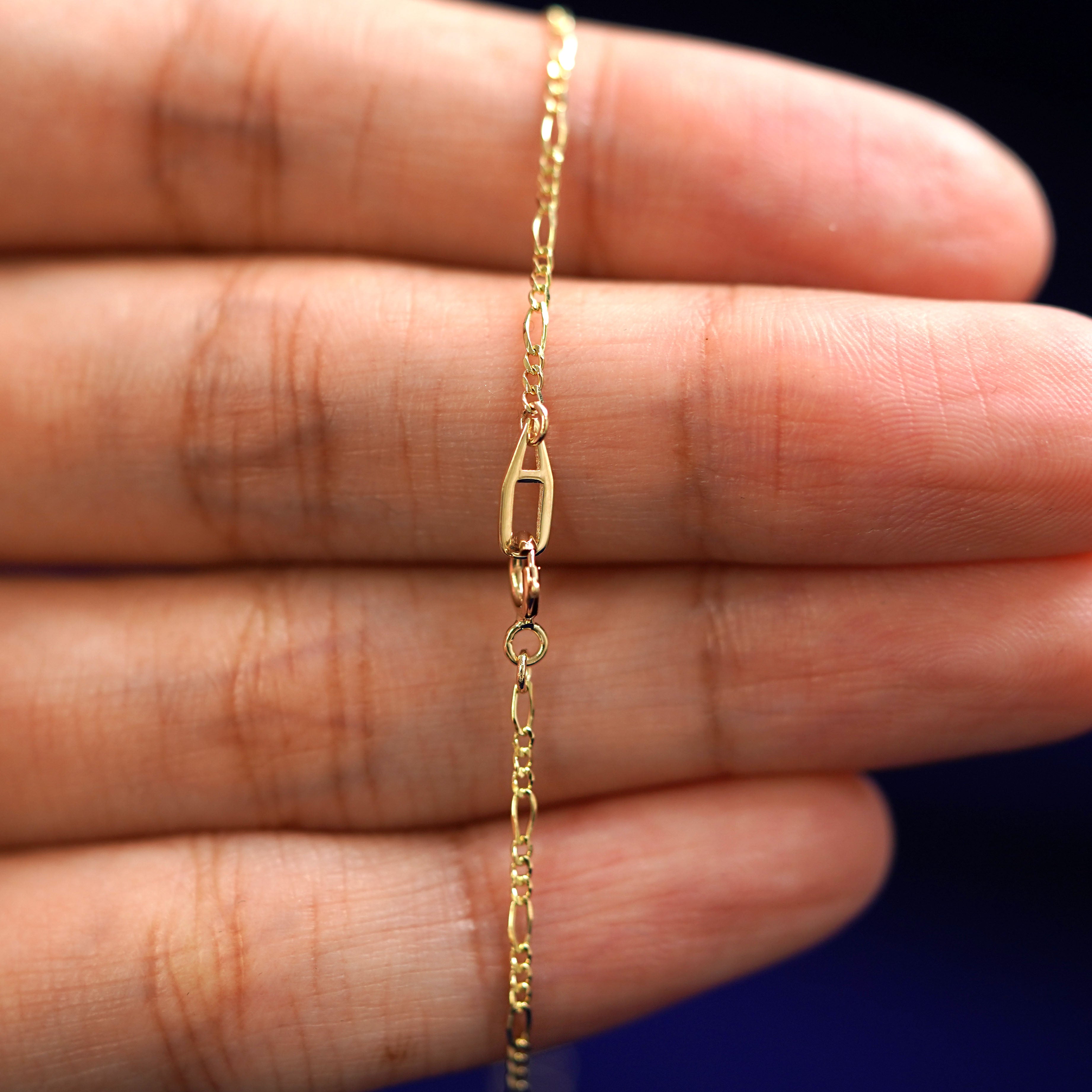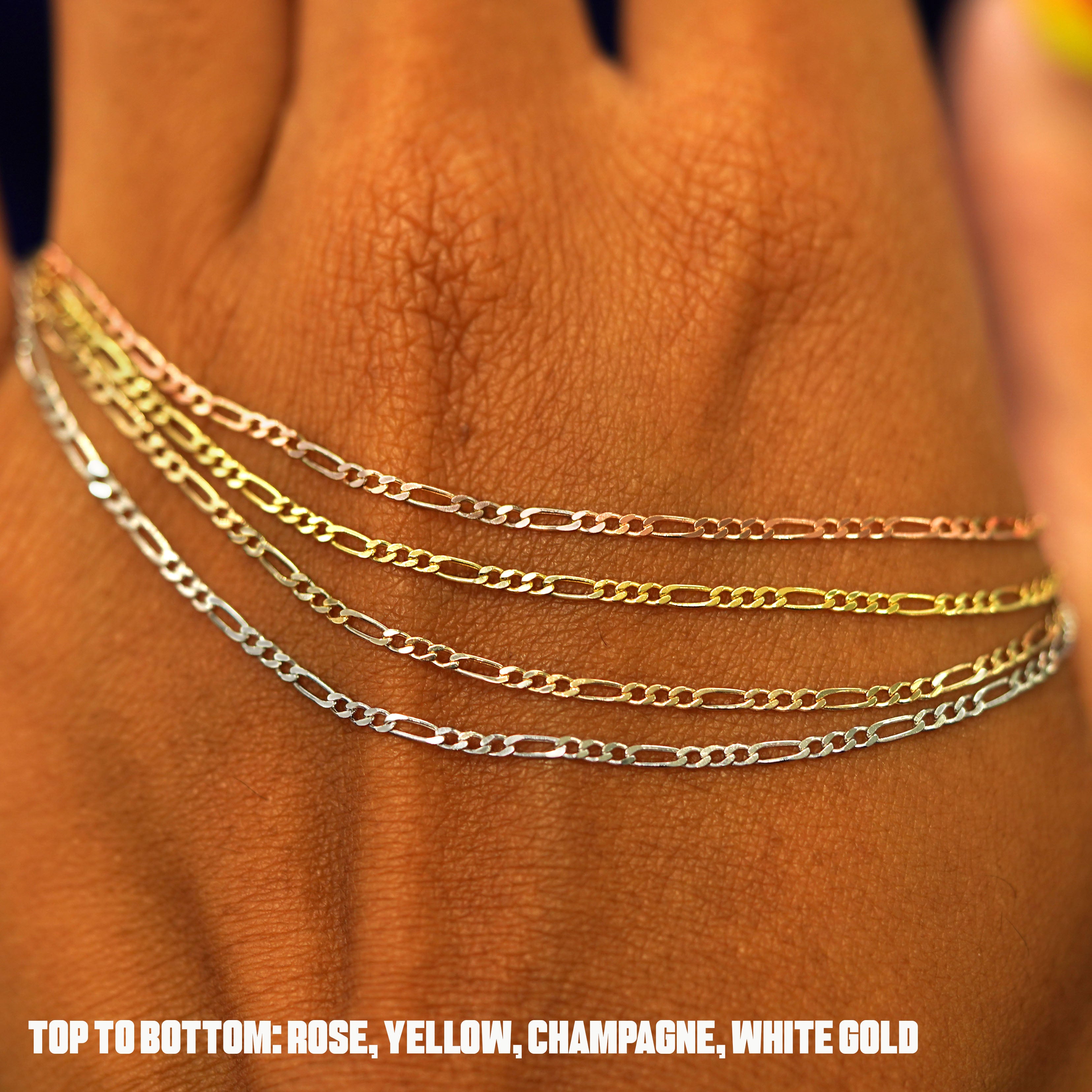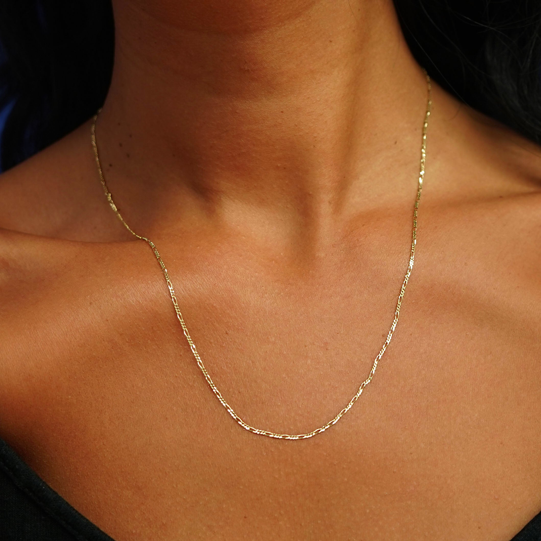 The classic cousin to our One to One chain, our sleek and stylish Figaro chain is an elegant addition to your collection. Wear this solid gold chain alone or layer it with our other gold necklaces for a chic look. Secures with a spring ring clasp and an easy-to-grip Automic Gold AU plate.