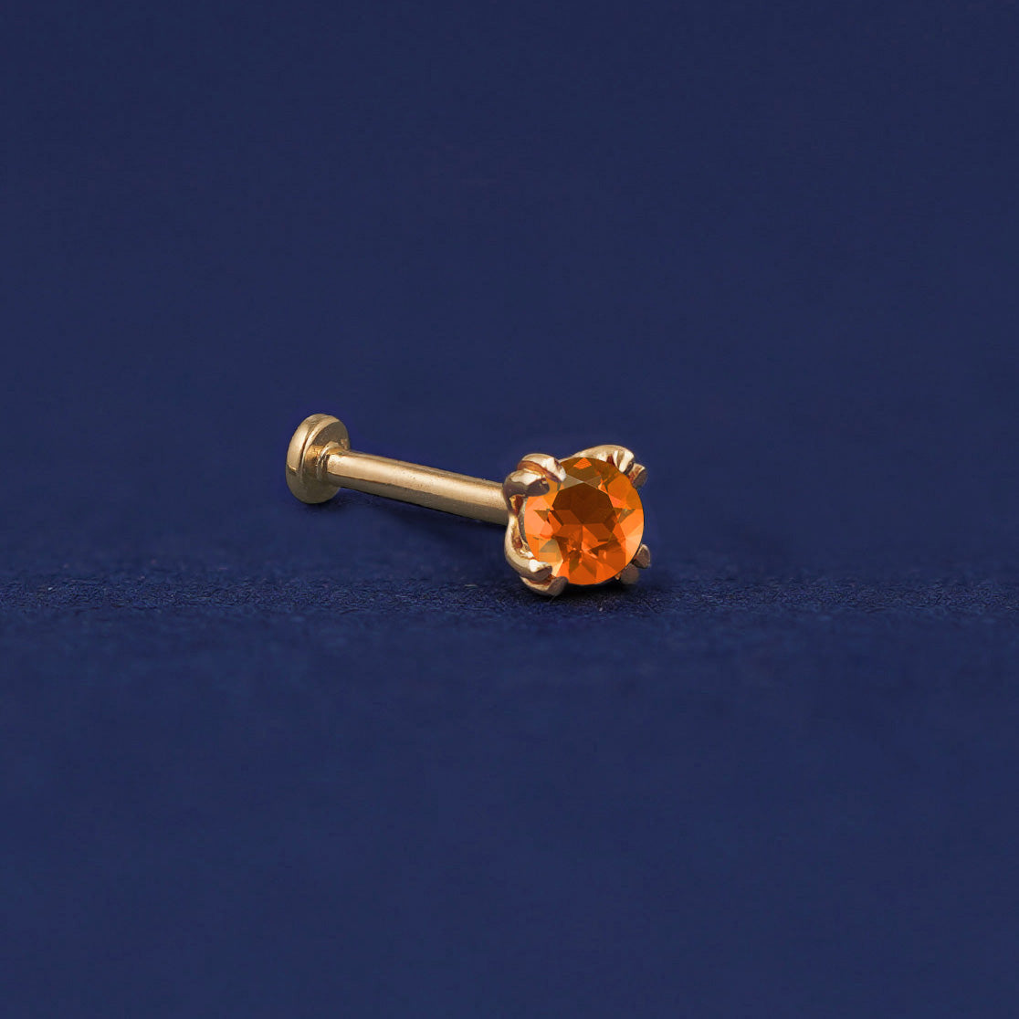 A pop of color that so hot you’ll never want to take it off, this threadless fire opal stud brings the heat. This flatback piercing is made with recycled solid 14k gold and ethically mined opals for a piece that is both strong and sustainable.