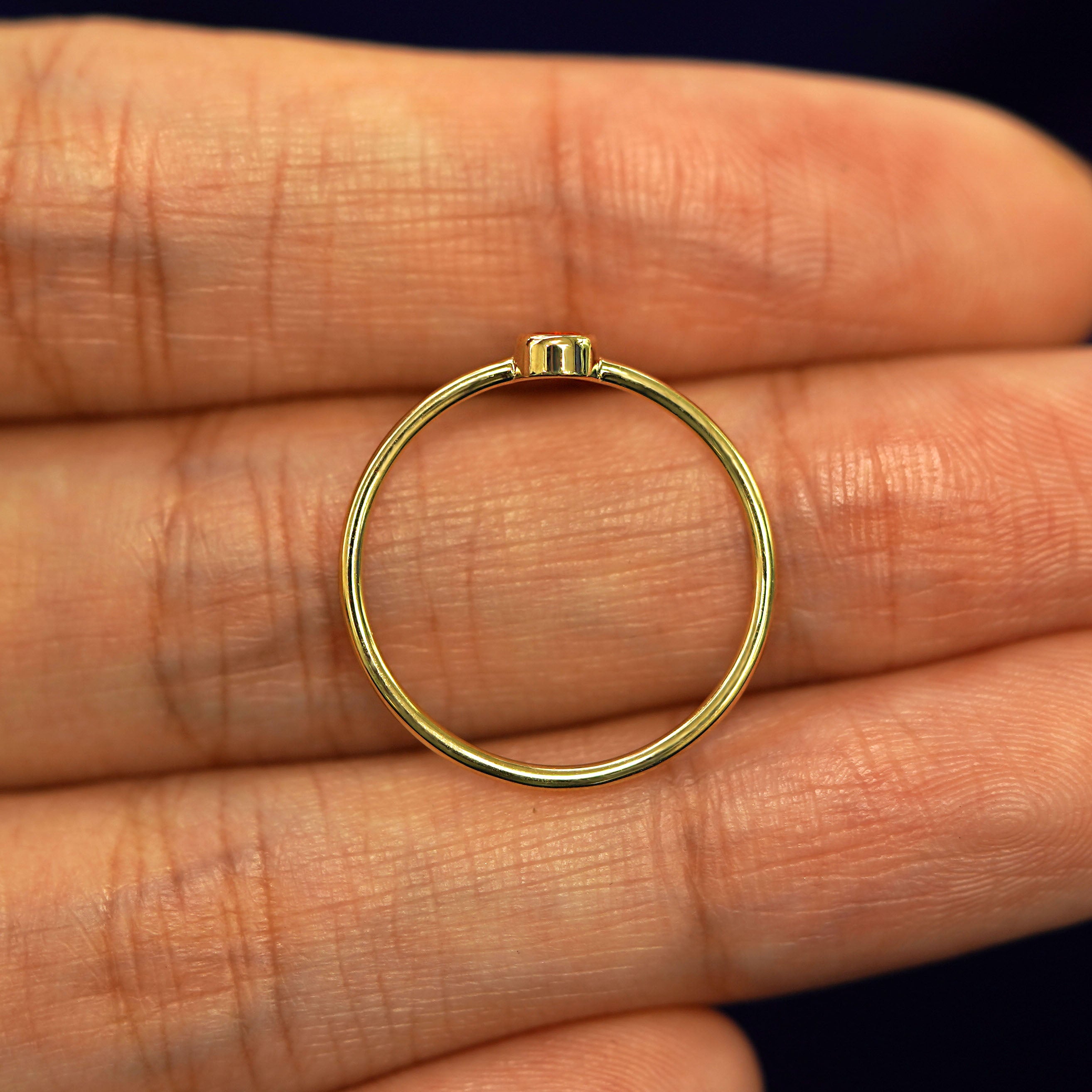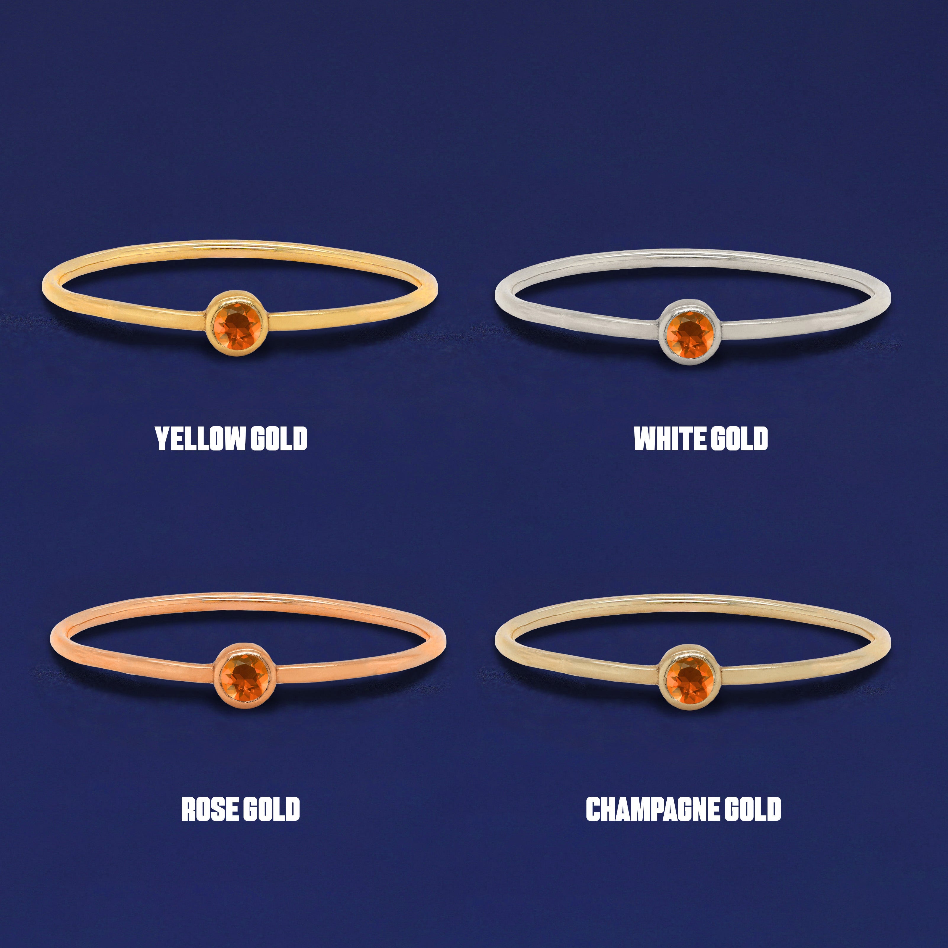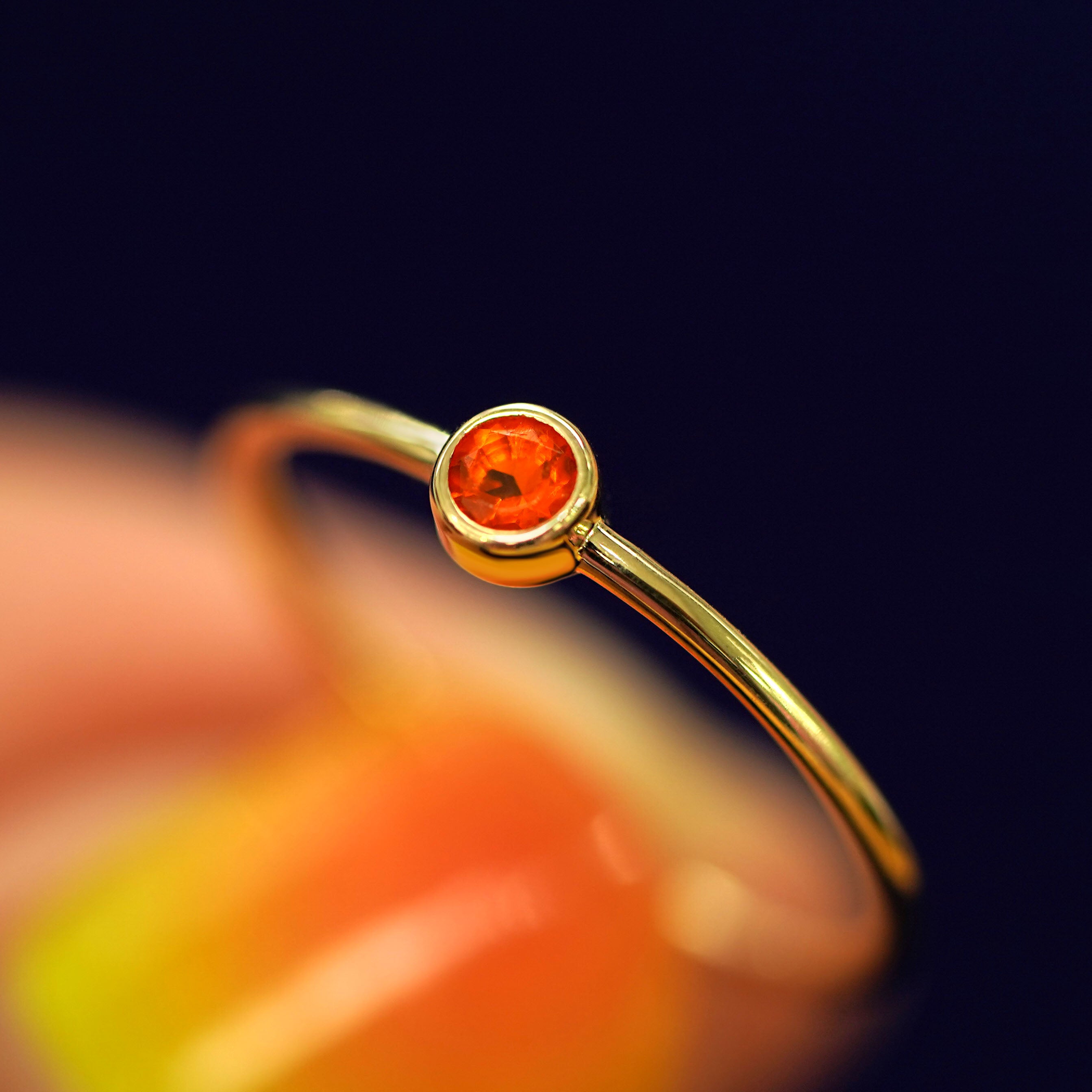 This little gemstone ring has a big impact. Our stunning fire opal ring is made with sustainable, recycled solid gold and ethically sourced opal. Wear it alone or as a stacking ring for an eye-catching look.